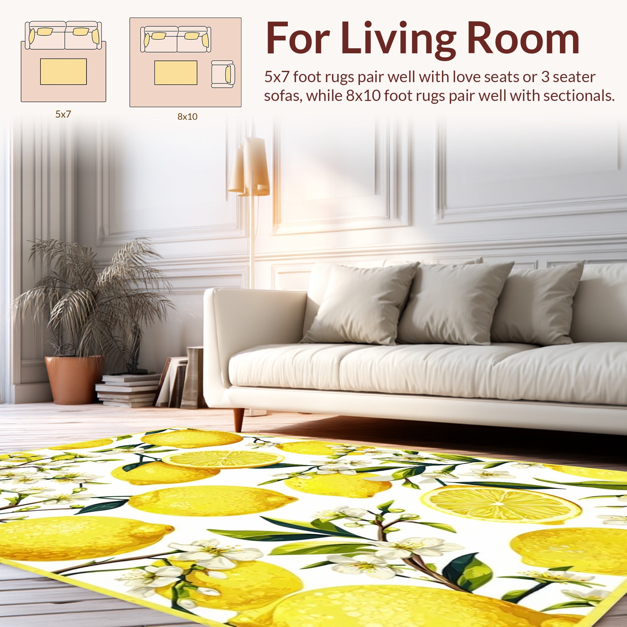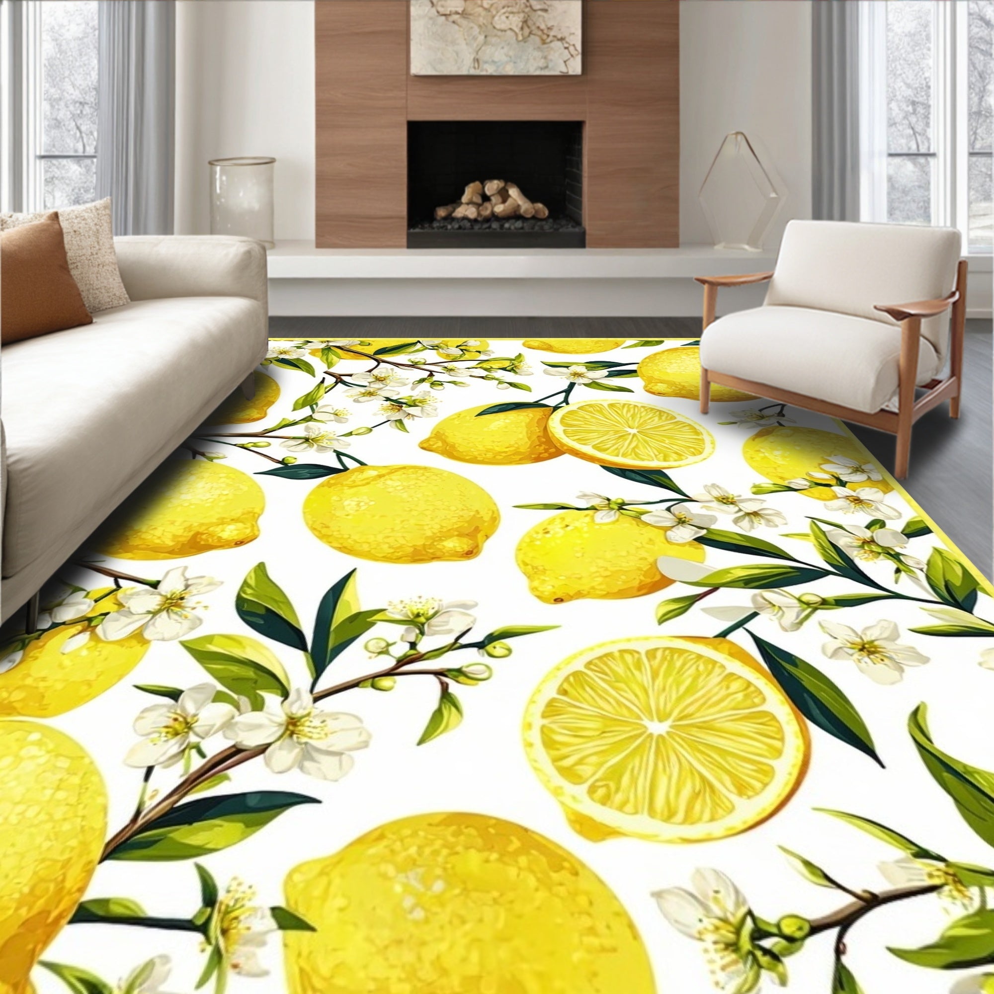 Ultra Soft Area Rug, Non Slip, Stain Resistant, Washable Area Rugs for Living Room, Bedroom, Lemon Grove Round Citrus Burst(Yellow) Overview: