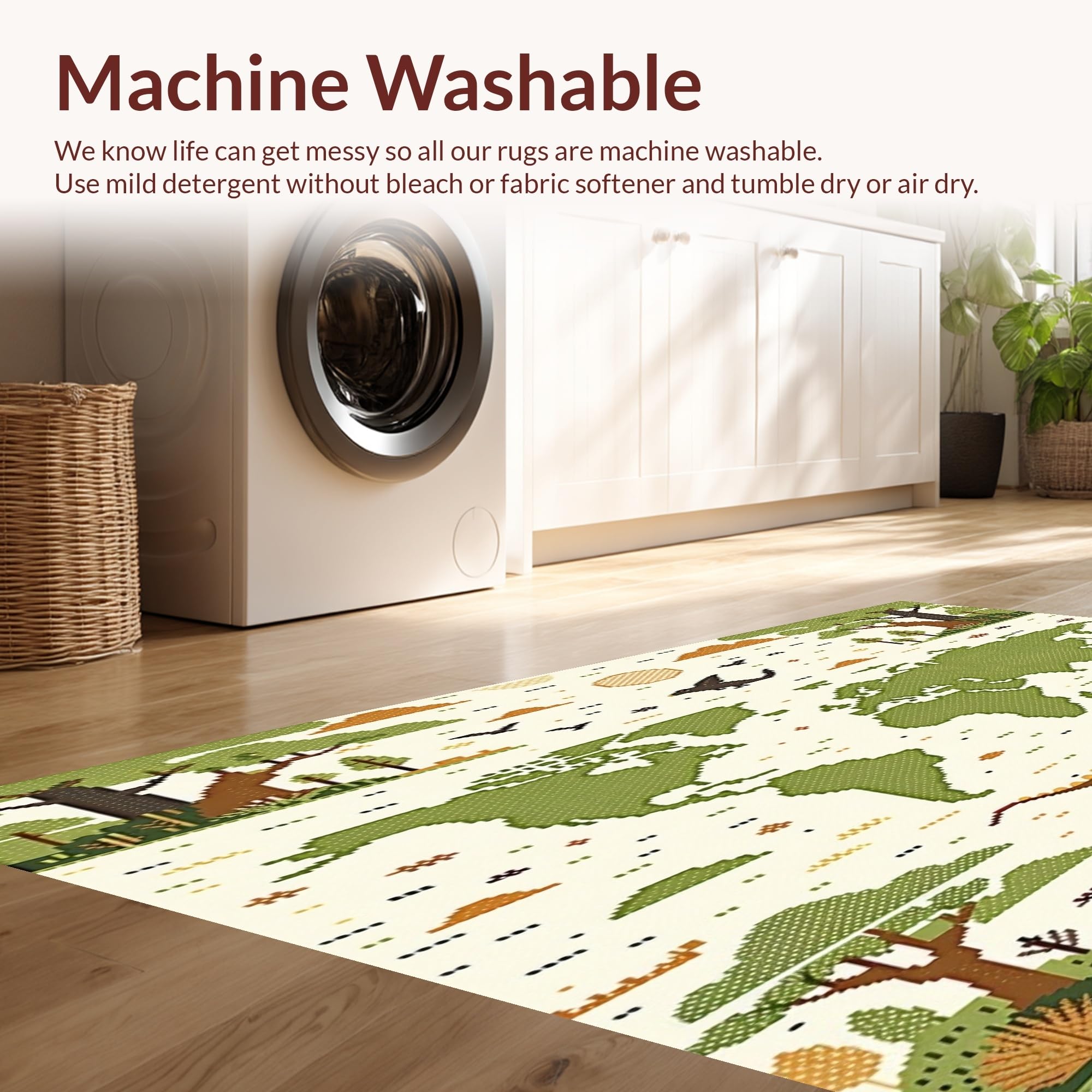 - Machine Washable: Our rugs can be easily thrown in the wash machine.