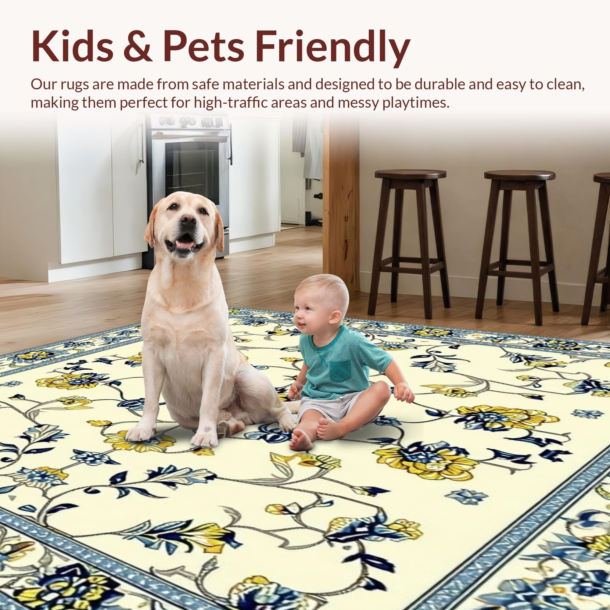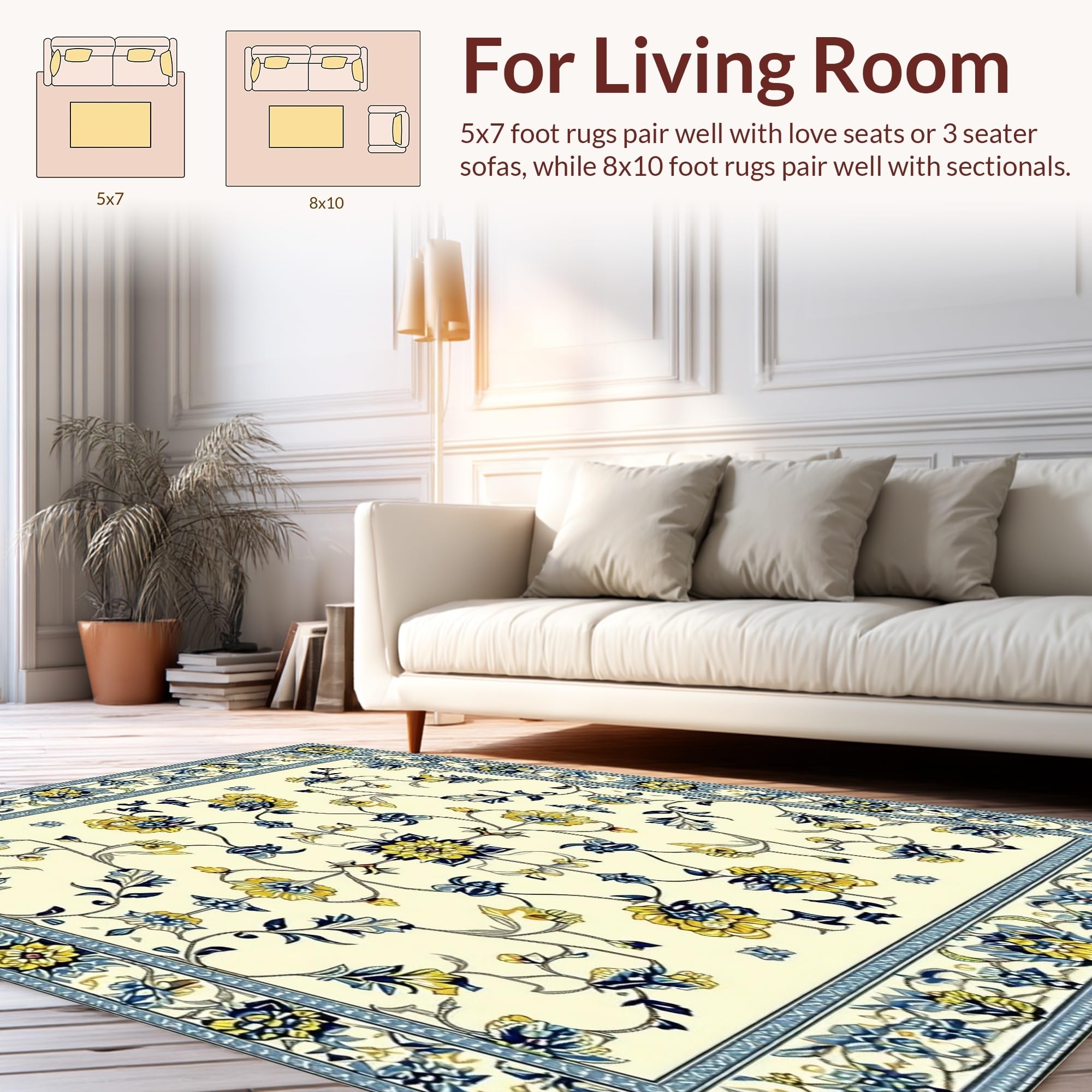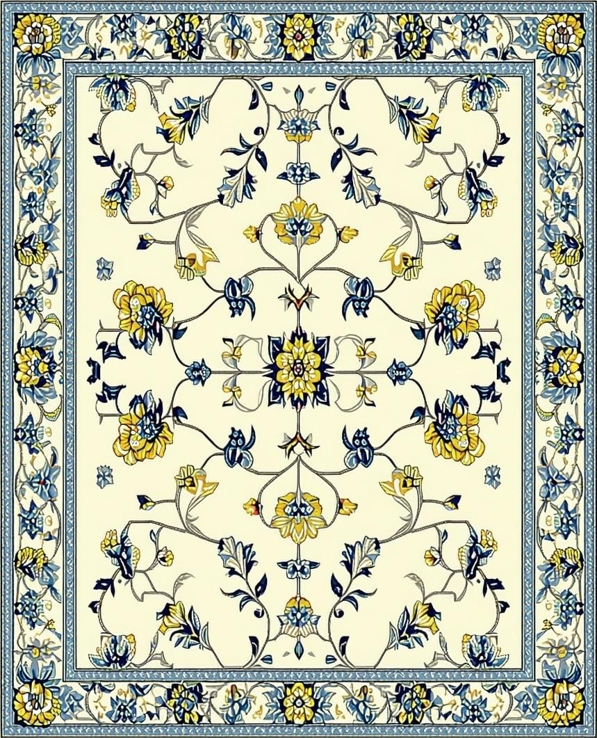 Ultra Soft Area Rug, Non Slip, Stain Resistant, Washable Area Rugs for Living Room, Bedroom, Lightweight Area Non Slip Low Pile Vintage Flower Design(Beige) Overview: