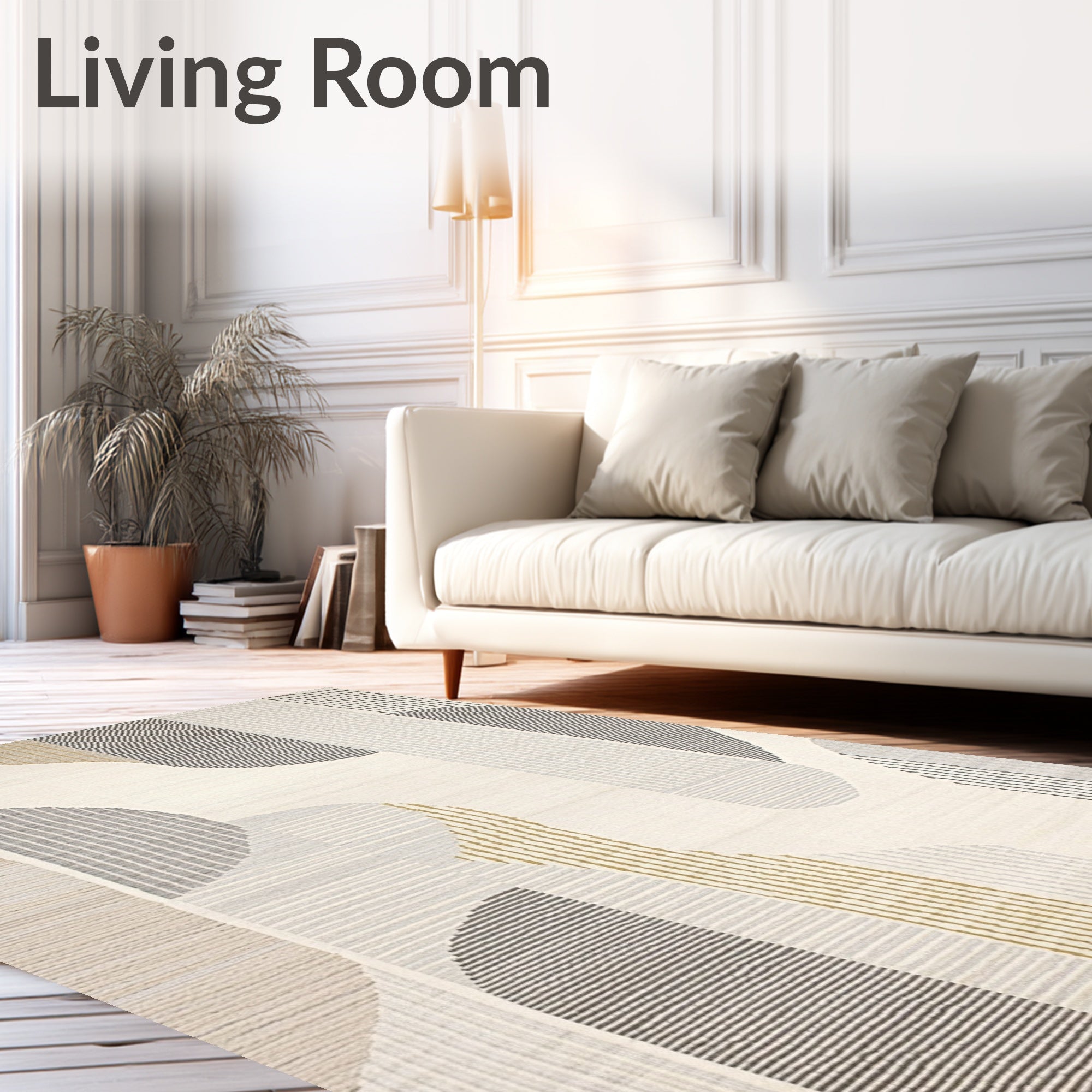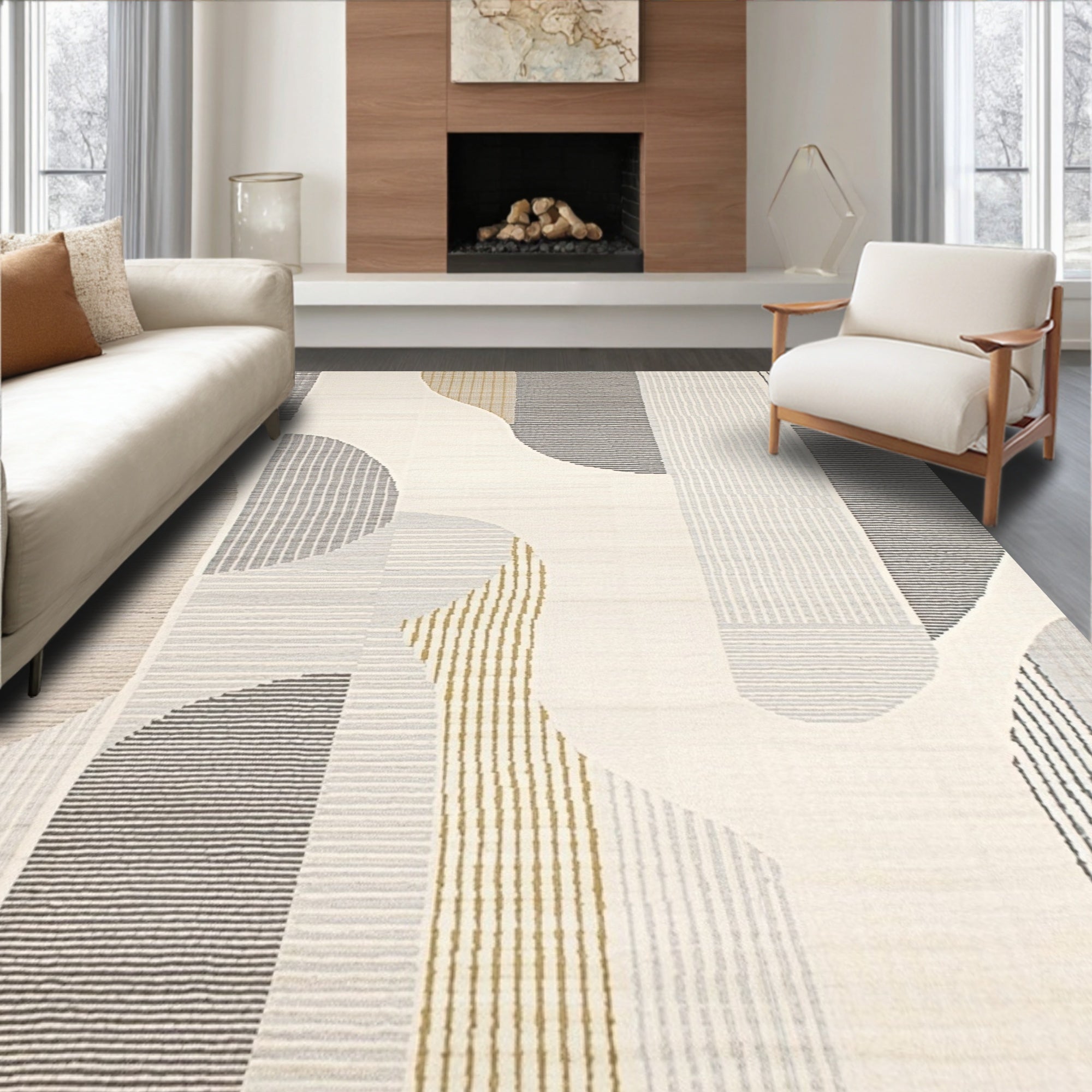 Ultra Soft Area Rug, Non Slip, Stain Resistant, Washable Area Rugs for Living Room, Bedroom, Linear Ripple Beige Grey Runner Area Modern Wavy Striped(Beige) Overview: