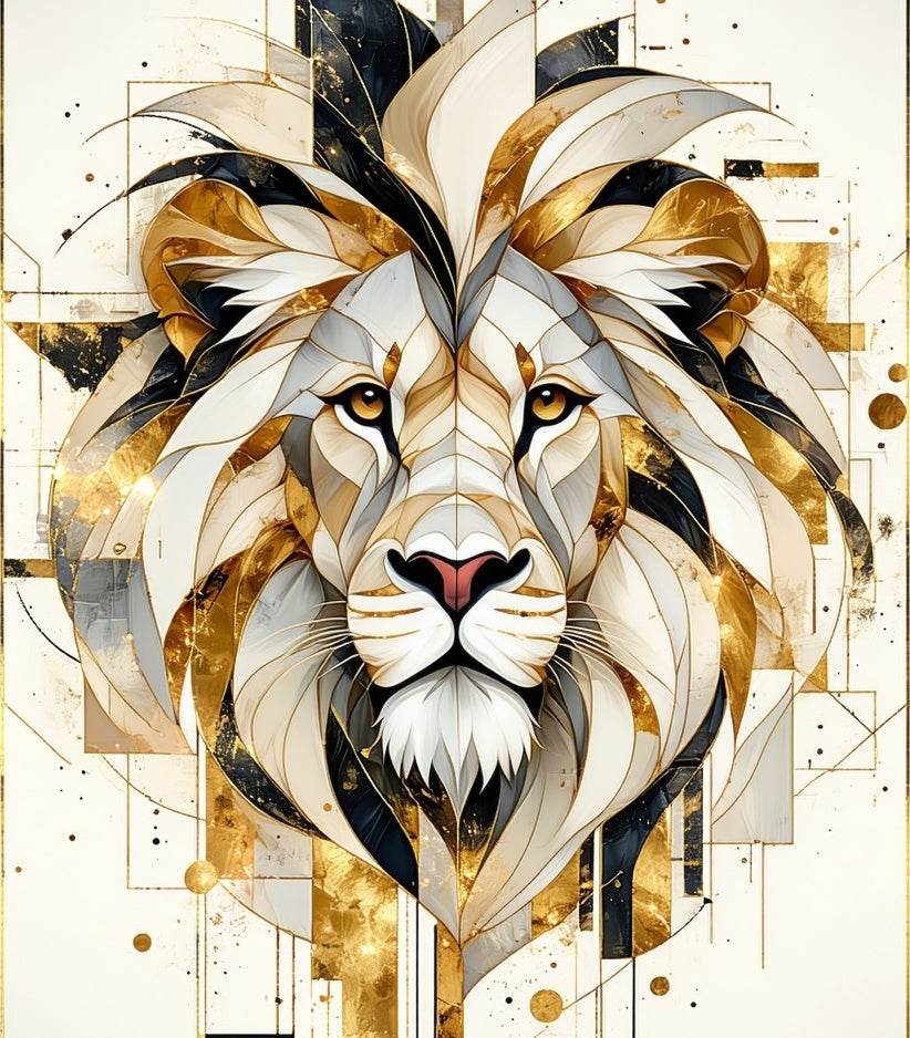 Lion Strength Beige Abstract Area Positive Quotes Wild Animal Decor(White)