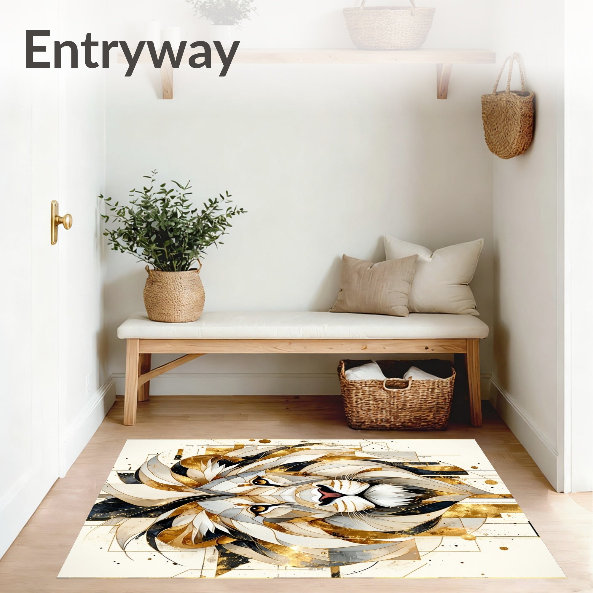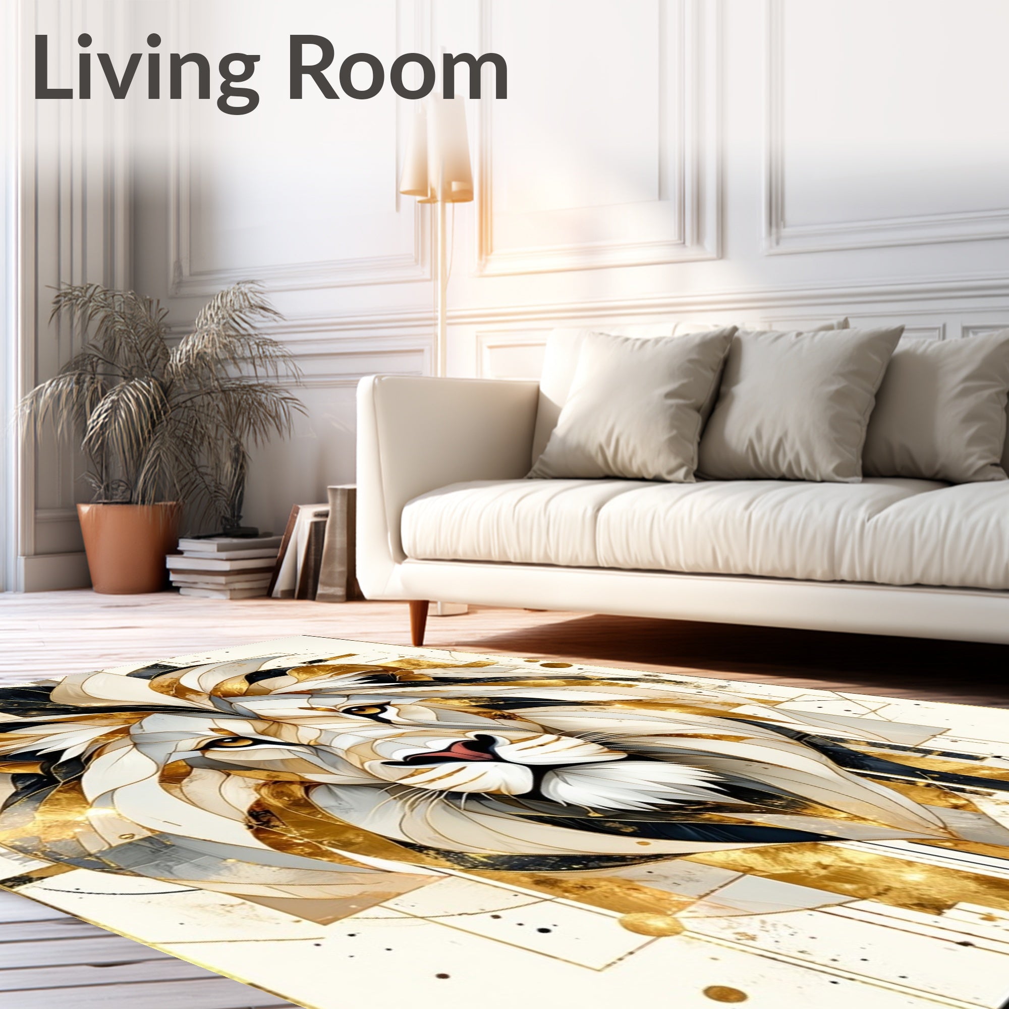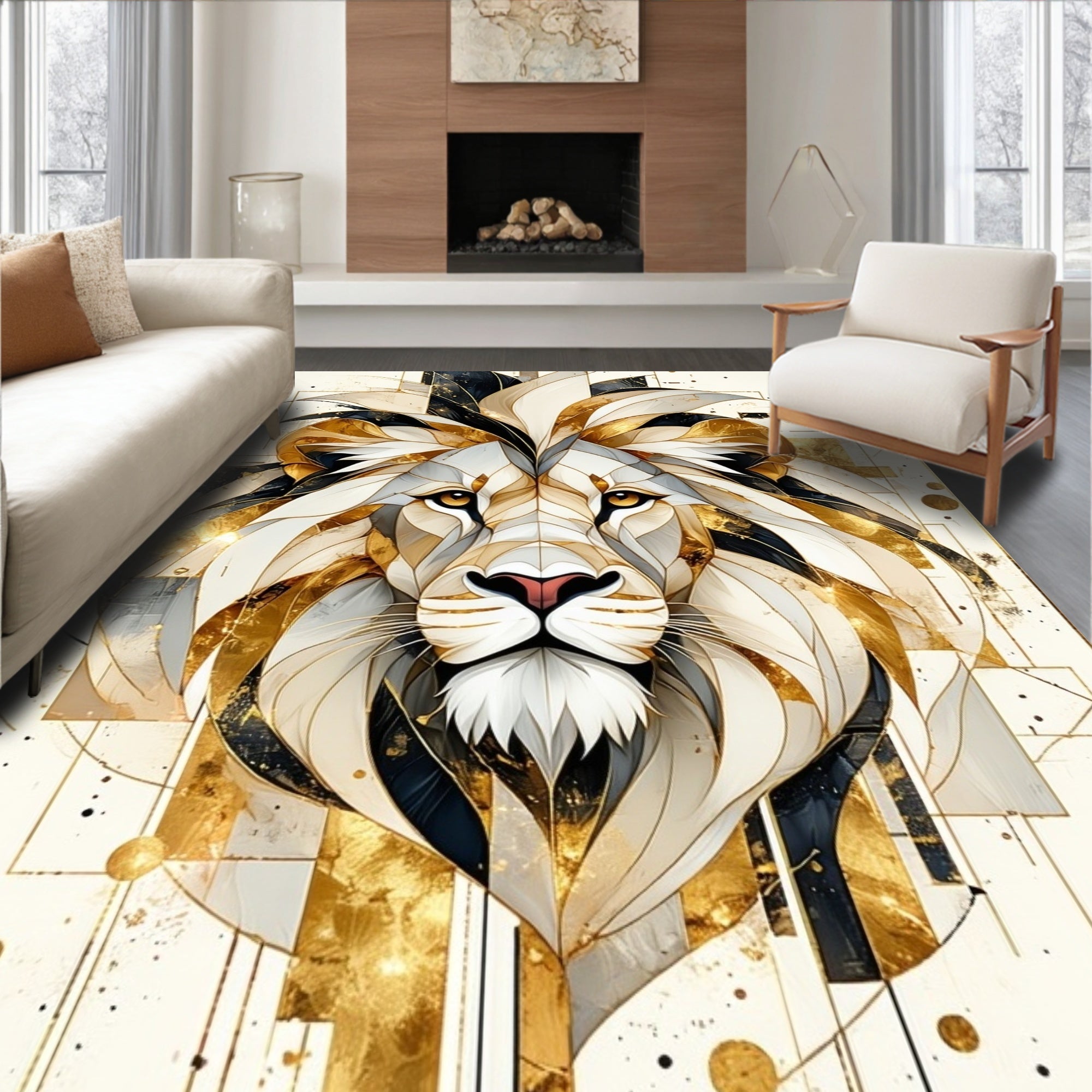 Ultra Soft Area Rug, Non Slip, Stain Resistant, Washable Area Rugs for Living Room, Bedroom, Lion Strength Beige Abstract Area Positive Quotes Wild Animal Decor(White) Overview: