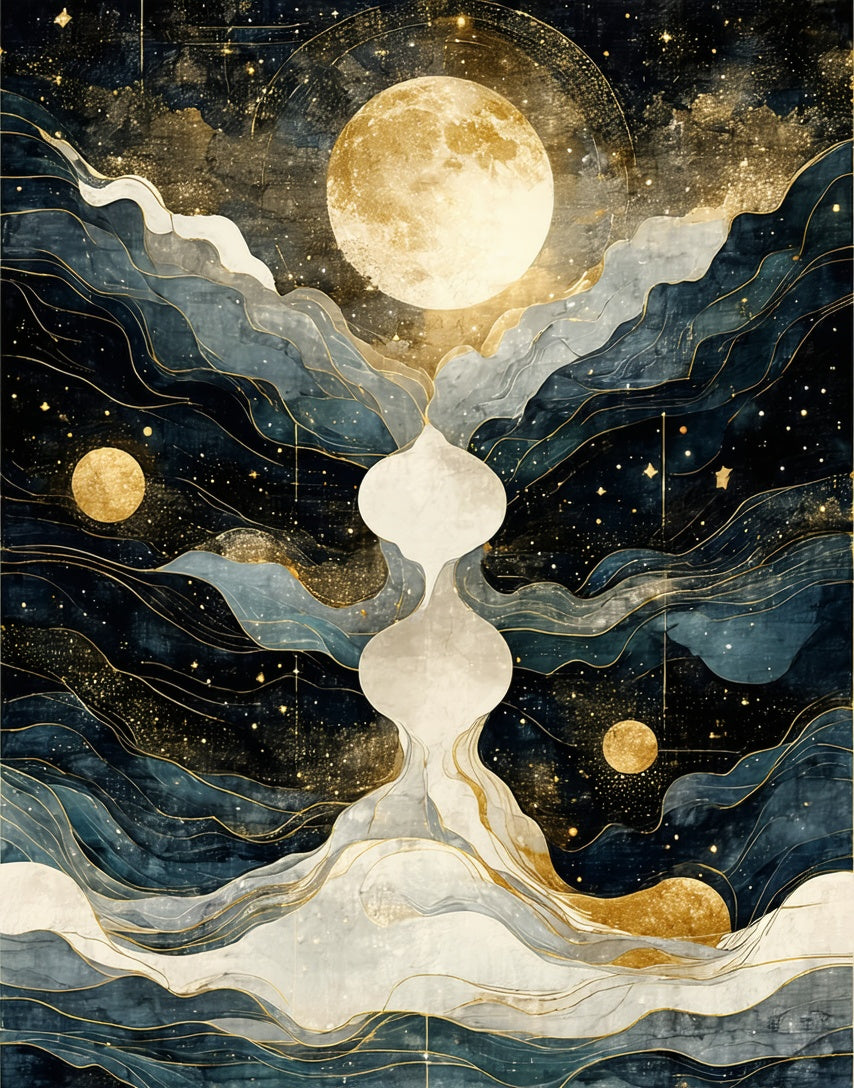 Liquid Celestial Waves Abstract Sun Moon Phases with Flowing Star Trails(Blue)