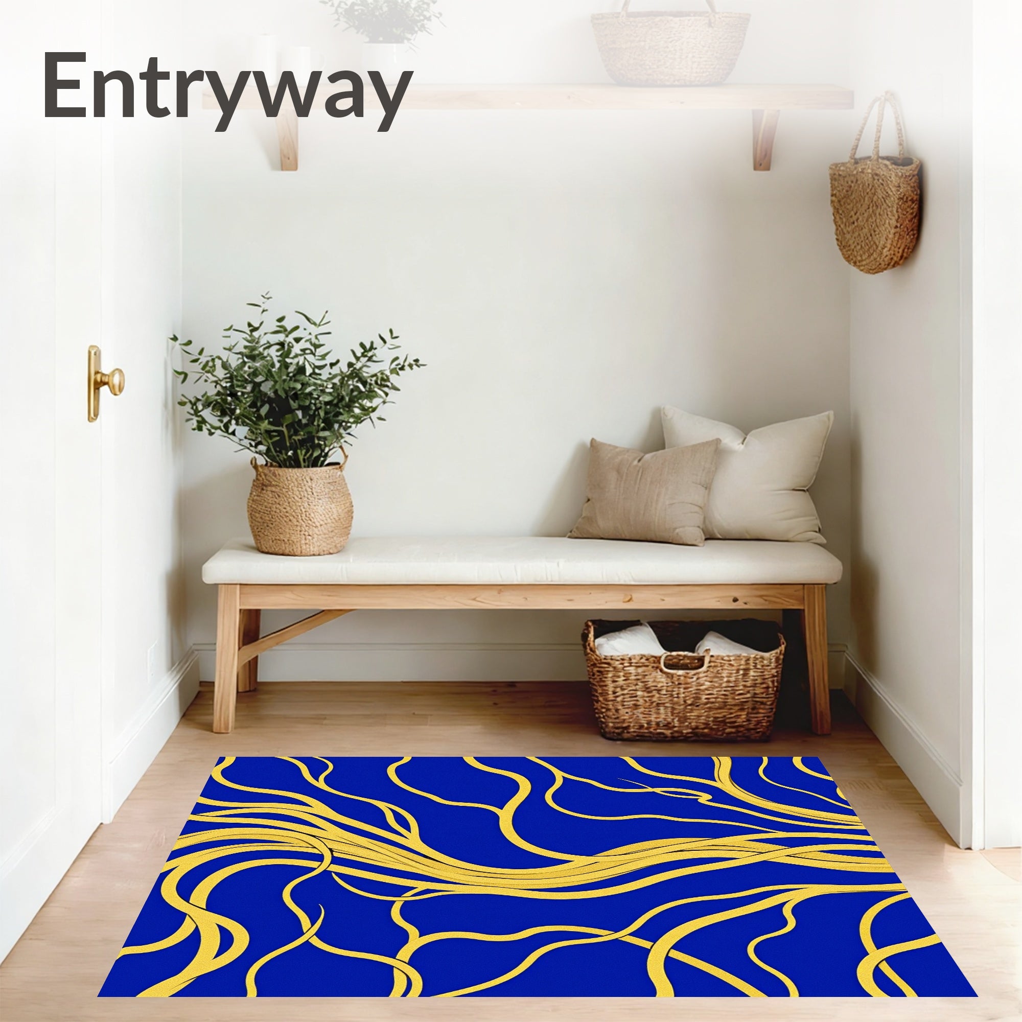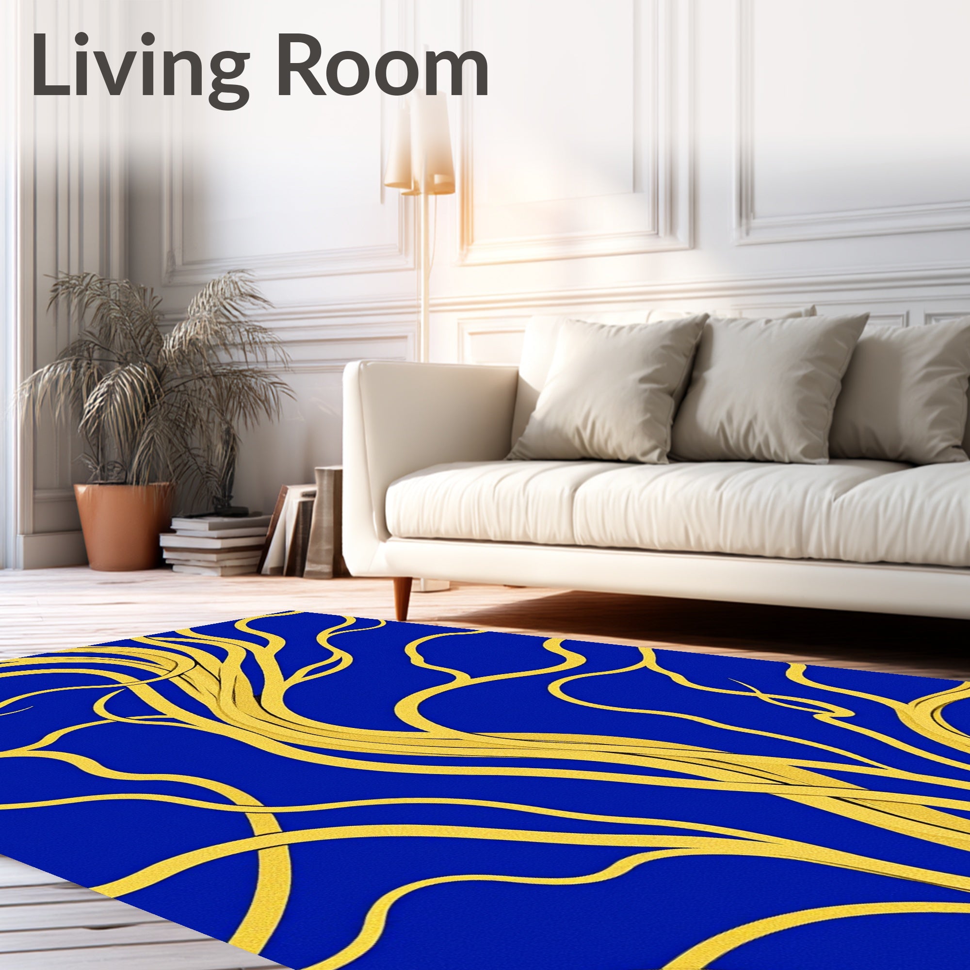 Ultra Soft Area Rug, Non Slip, Stain Resistant, Washable Area Rugs for Living Room, Bedroom, Liquid Metal Flow Abstract Contemporary Canvas Design(Gold) Overview: