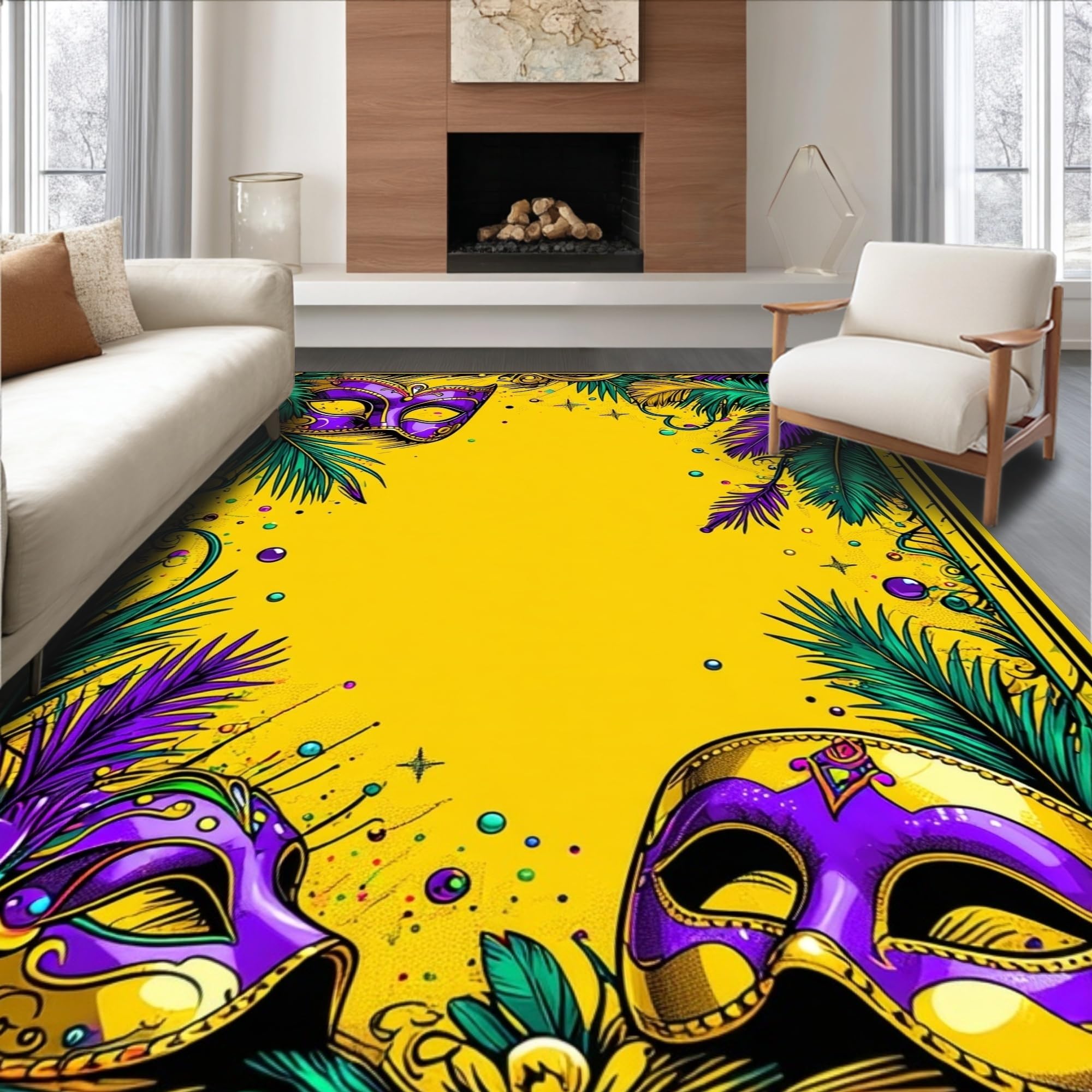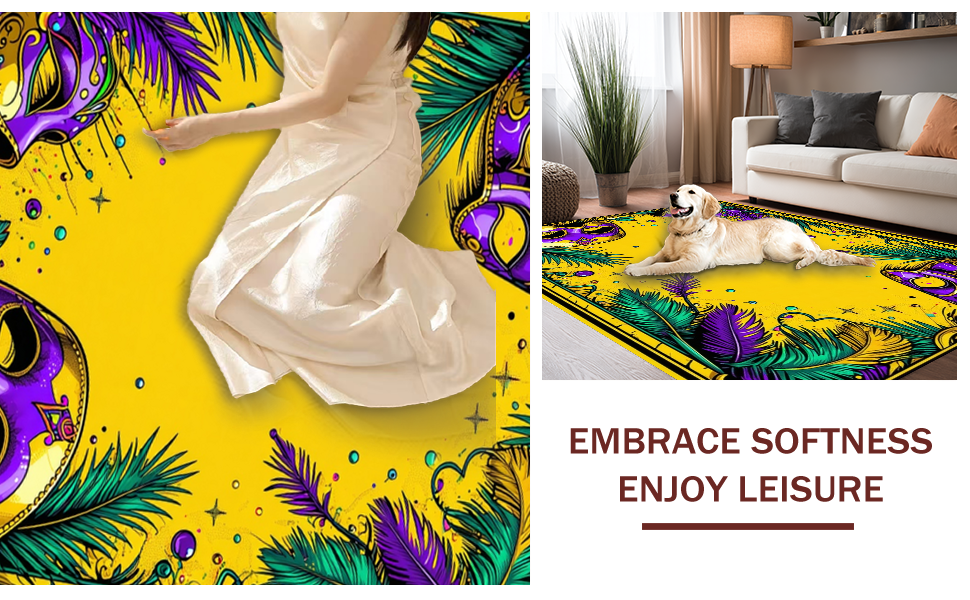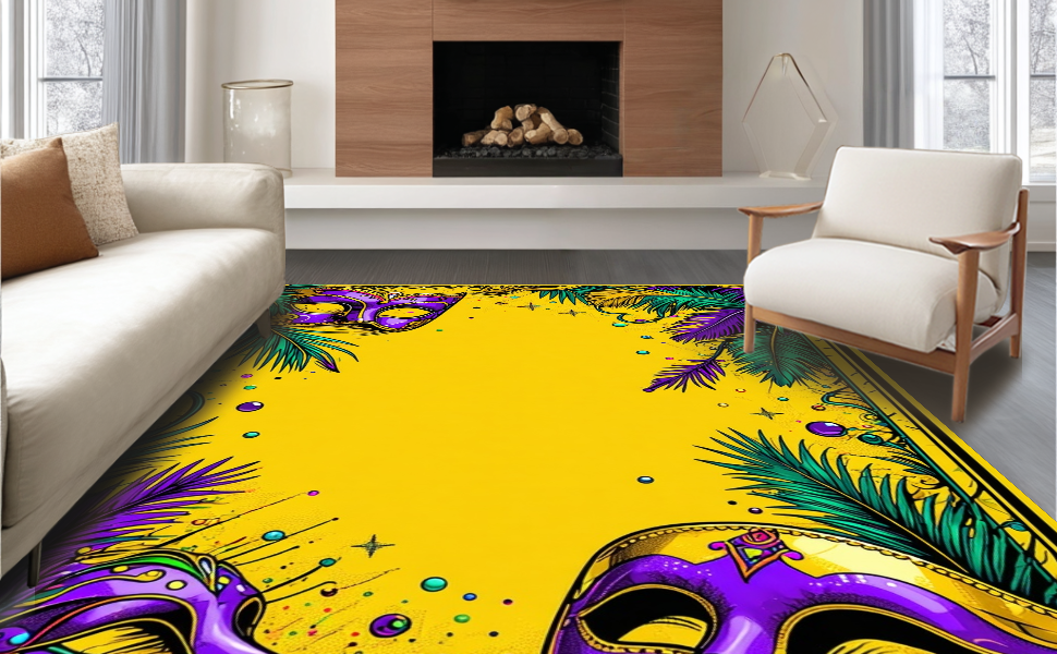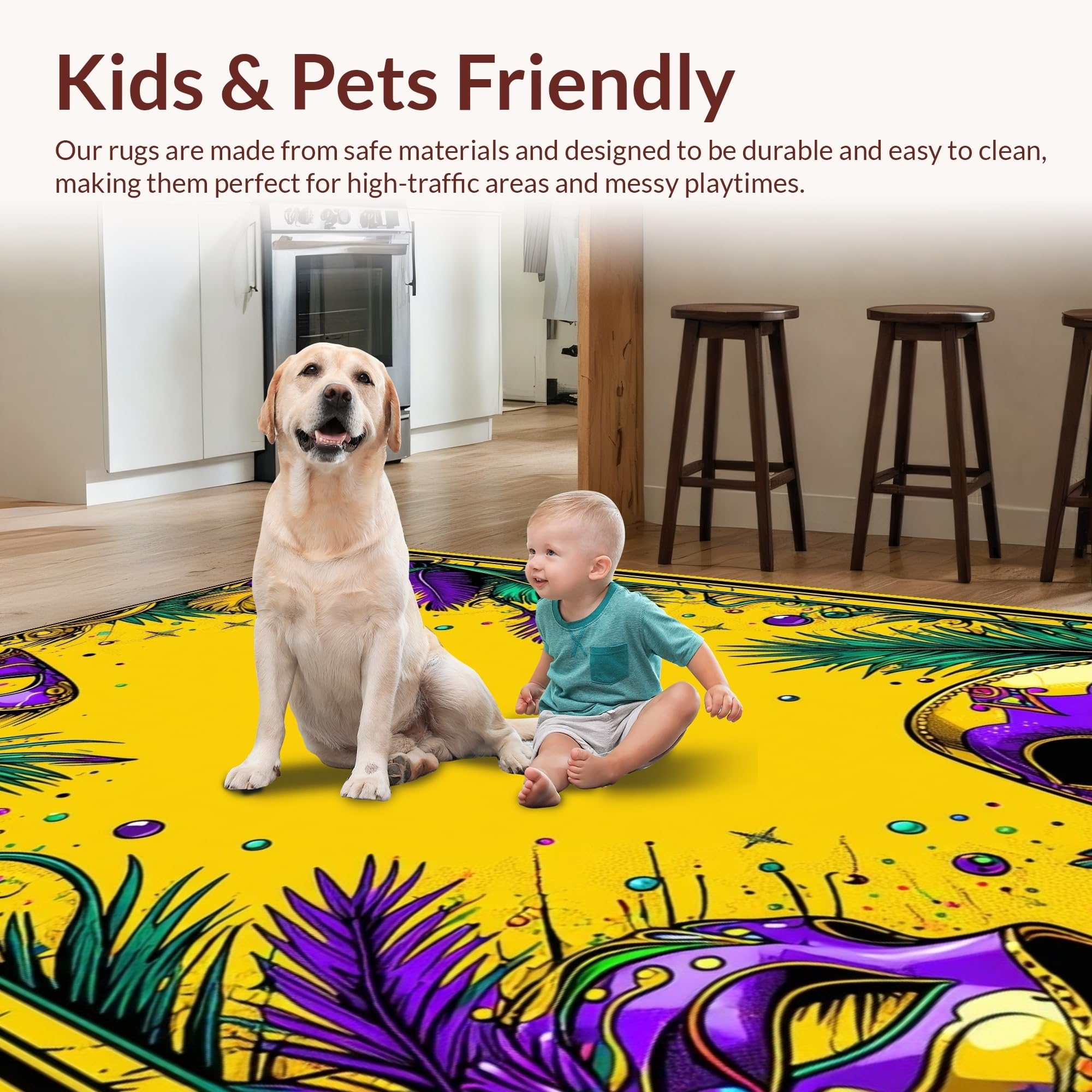 Ultra Soft Area Rug, Non Slip, Stain Resistant, Washable Area Rugs for Living Room, Bedroom, Lively Abstract Celebration Motif(Gold) Overview: