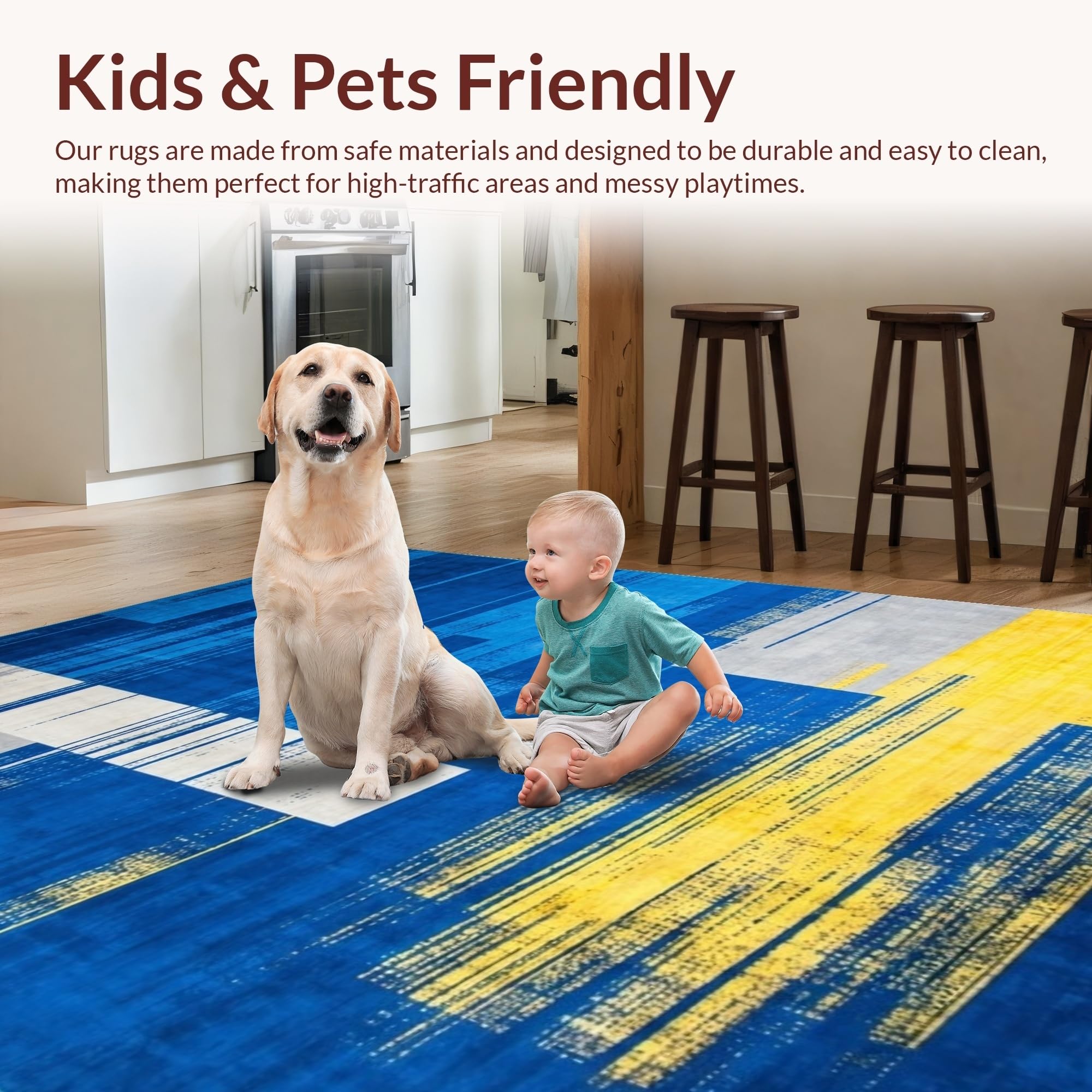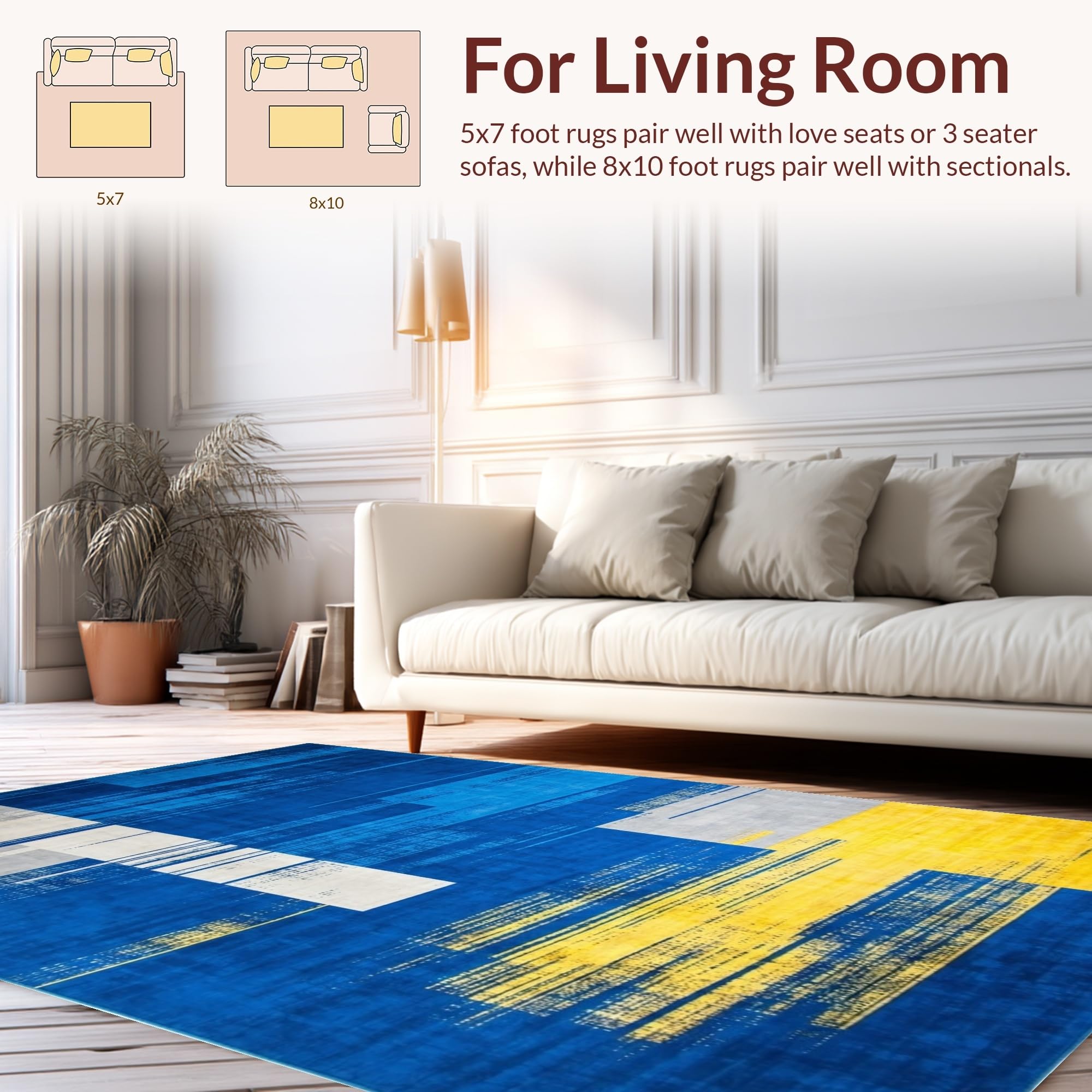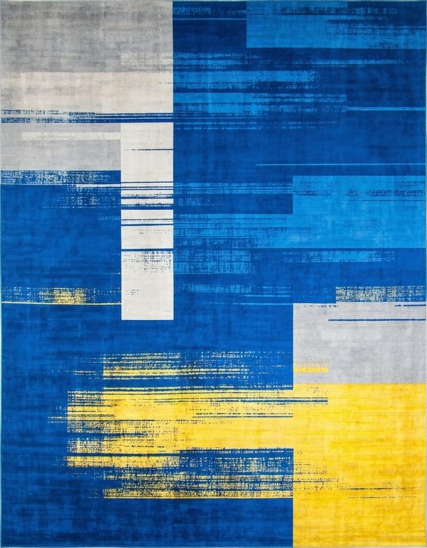 Ultra Soft Area Rug, Non Slip, Stain Resistant, Washable Area Rugs for Living Room, Bedroom, Lively Abstract Color Splash(Blue) Overview: