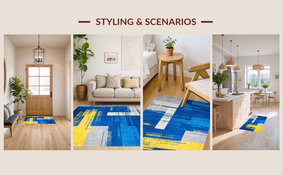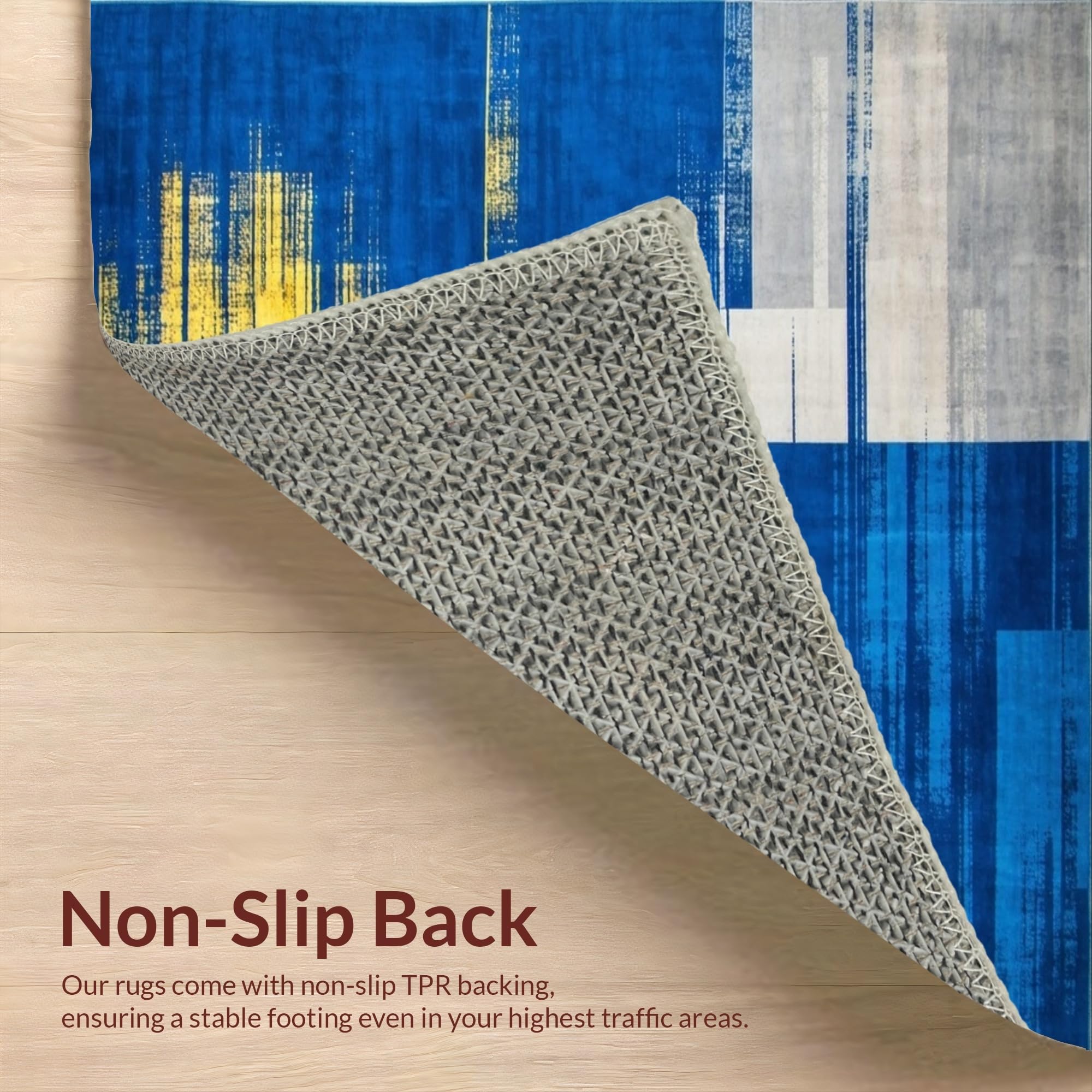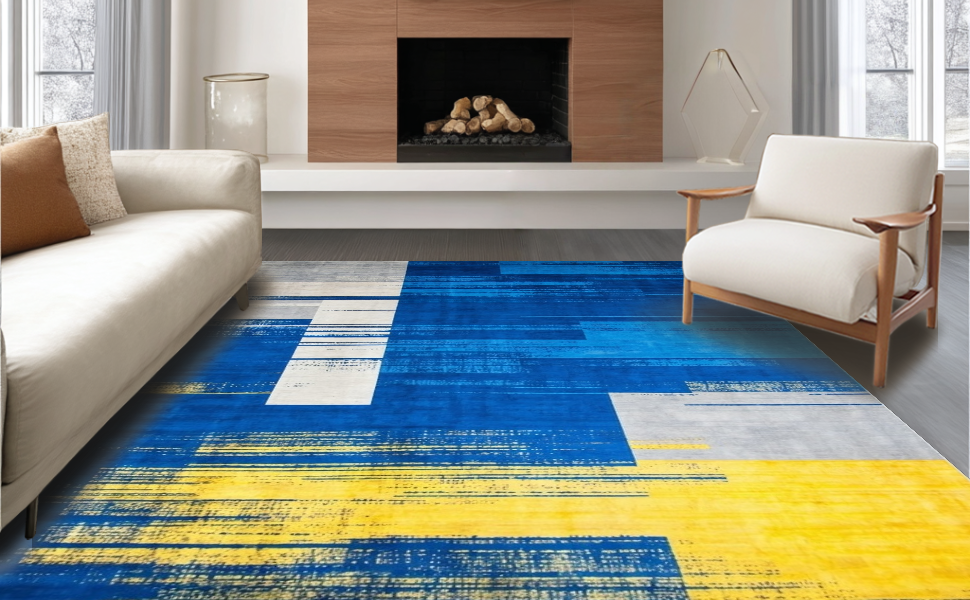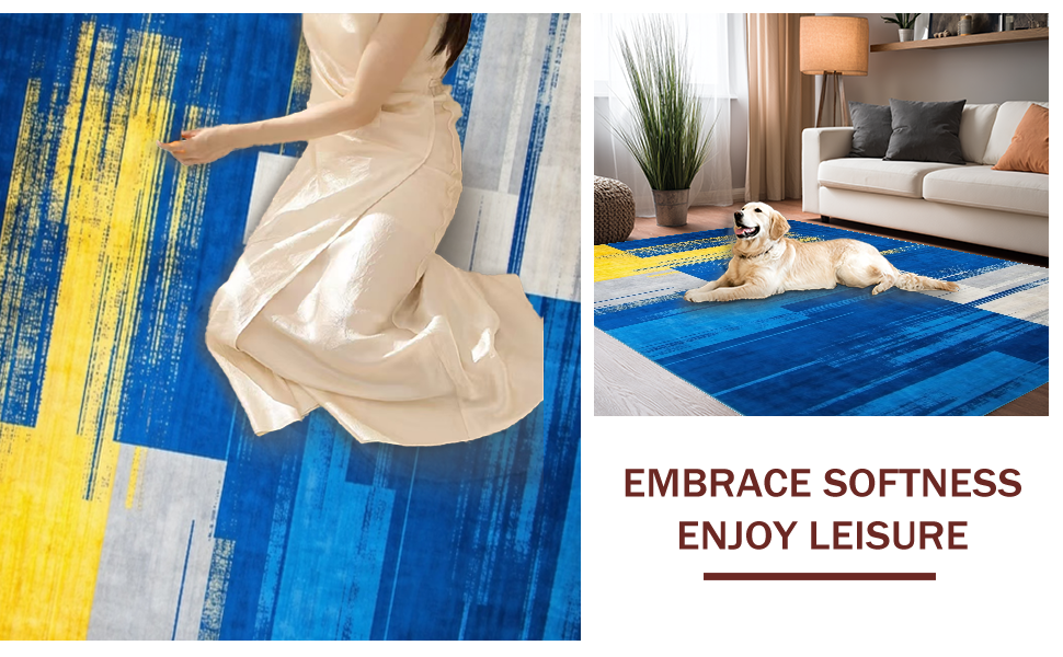 Ultra Soft Area Rug, Non Slip, Stain Resistant, Washable Area Rugs for Living Room, Bedroom, Lively Abstract Color Splash(Blue) Overview: