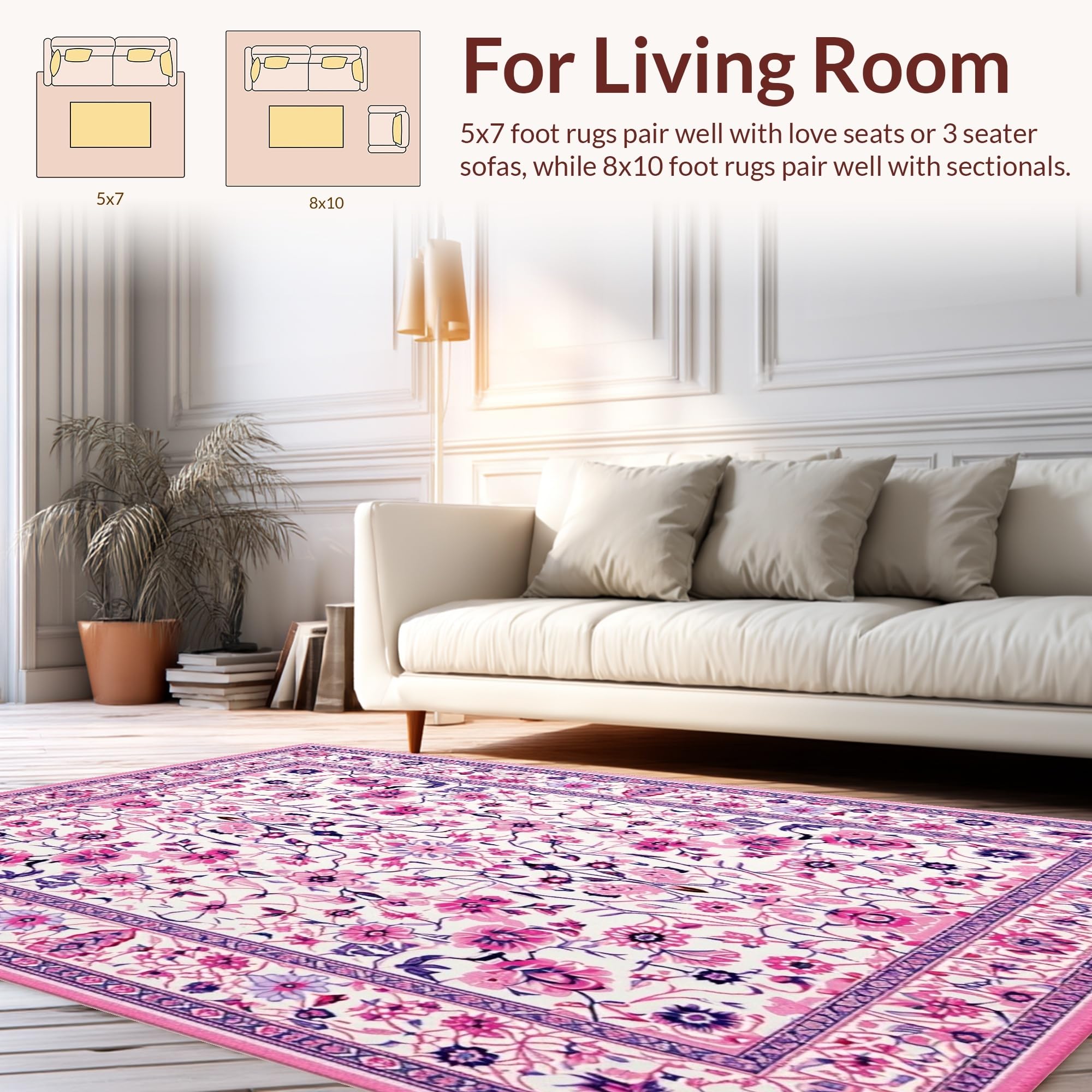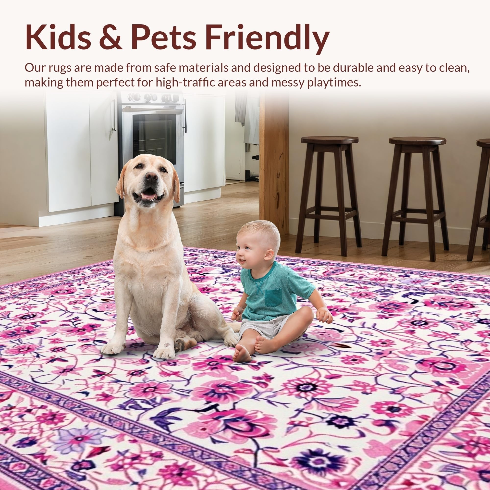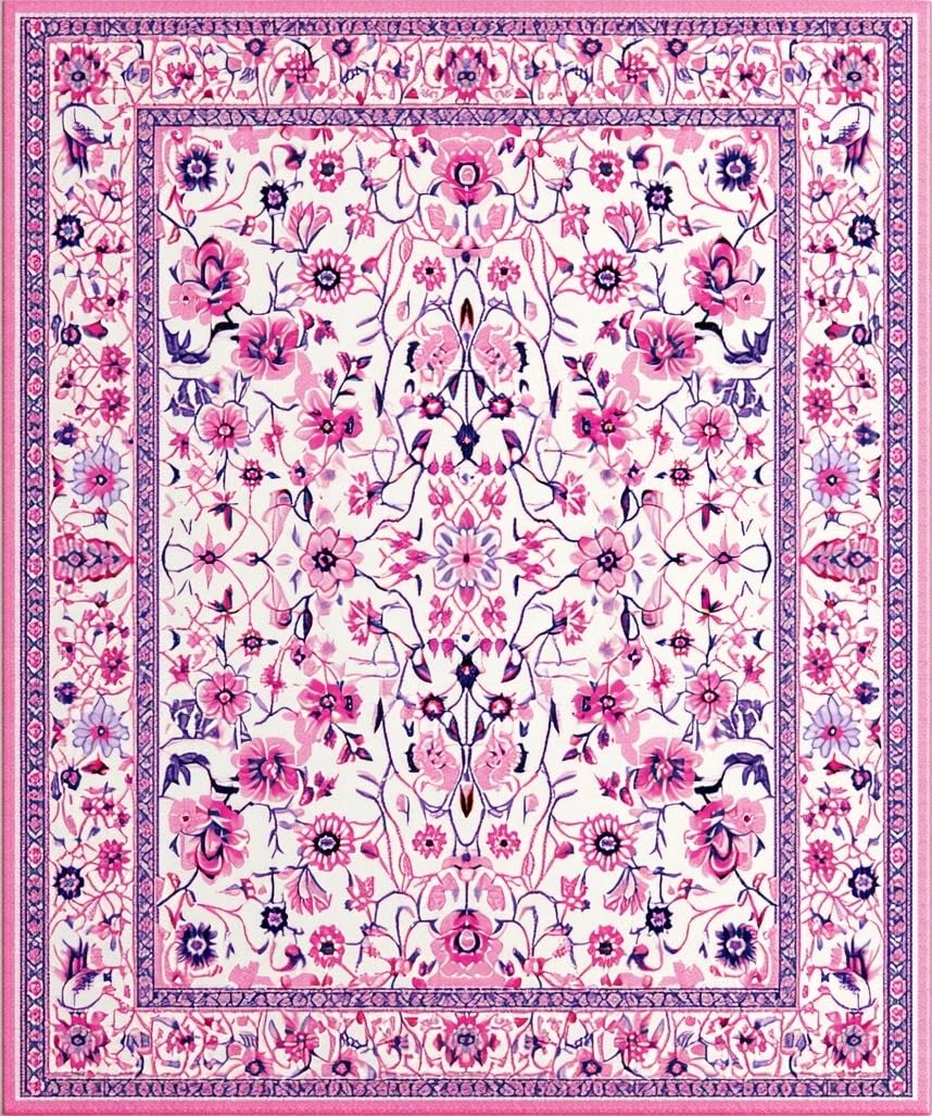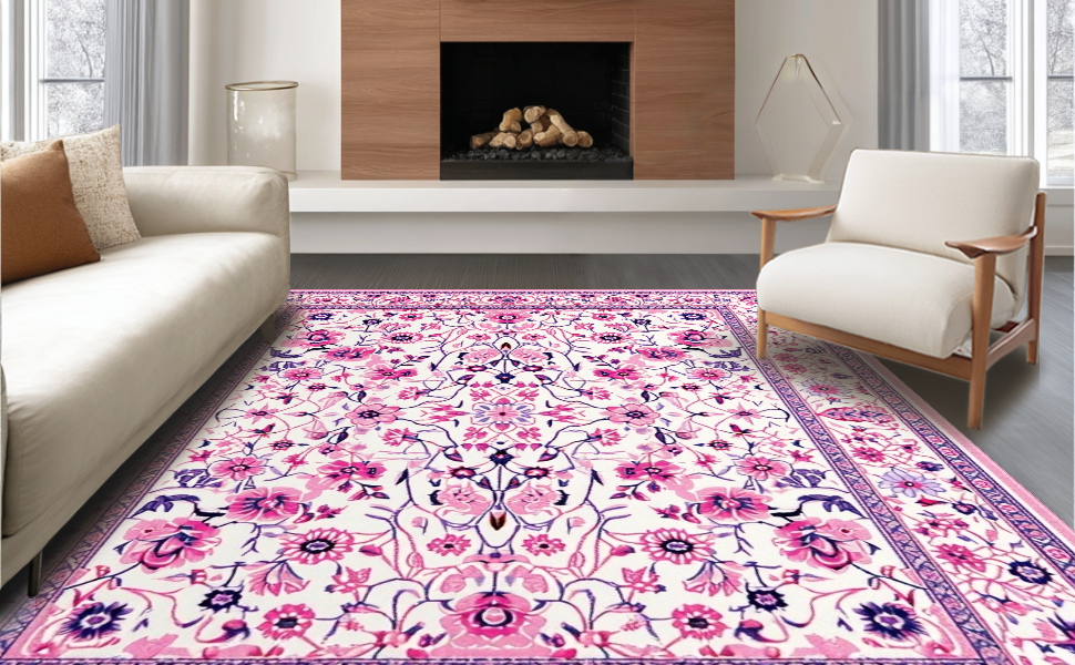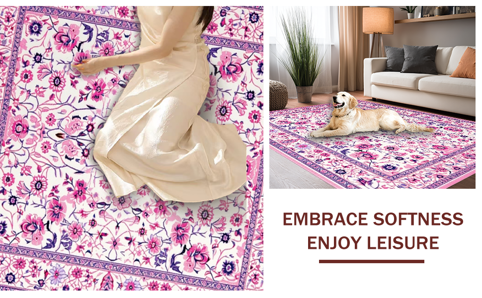 Ultra Soft Area Rug, Non Slip, Stain Resistant, Washable Area Rugs for Living Room, Bedroom, Lively Abstract Petal Composition(Pink) Overview: