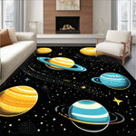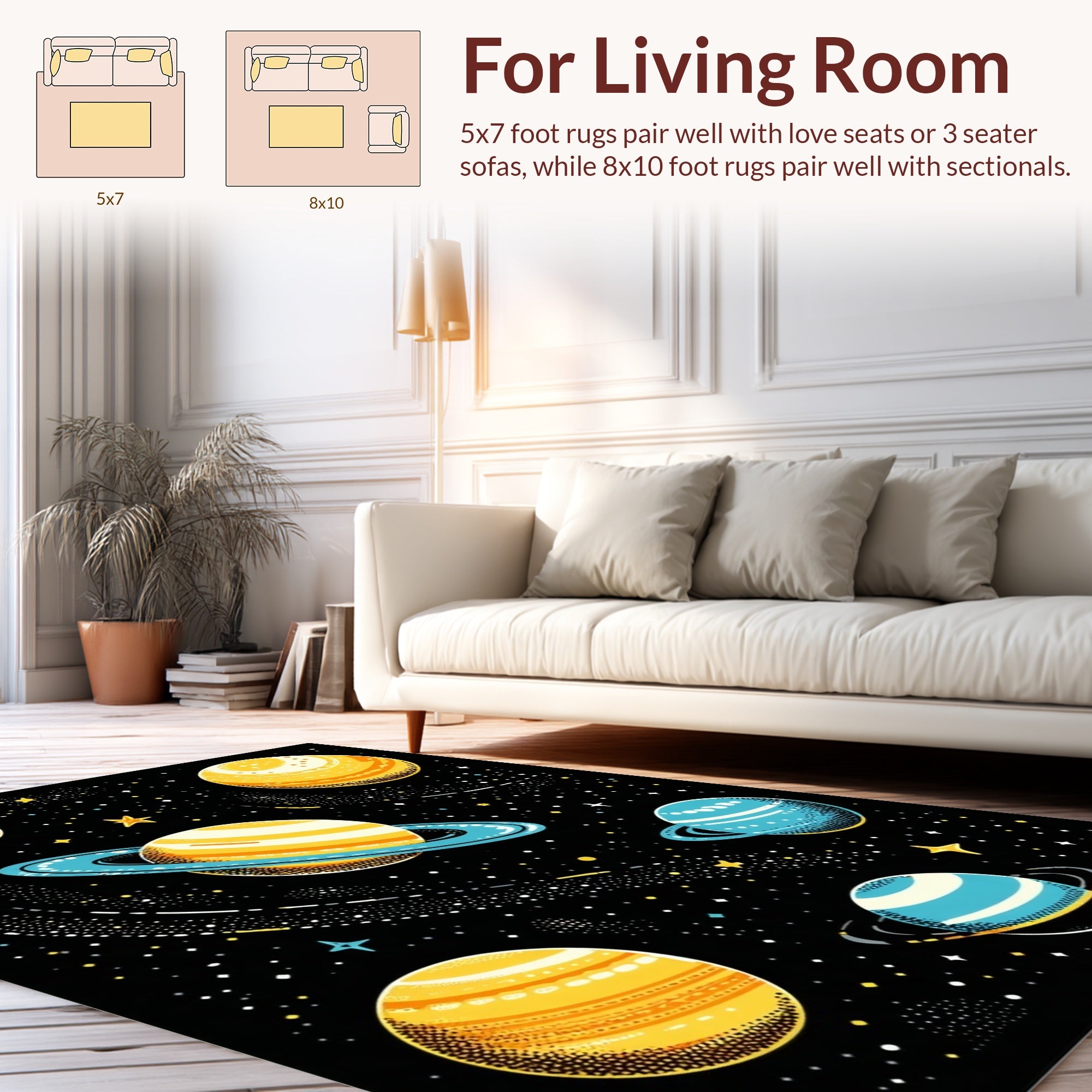 Flatwoven High Traffic Area Rug, Lively Astronauts and Planets Concept, Non Slip, Stain Resistant, Washable Area Rugs for Living Room, Bedroom (Orange) Overview: