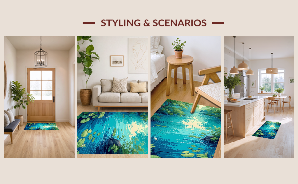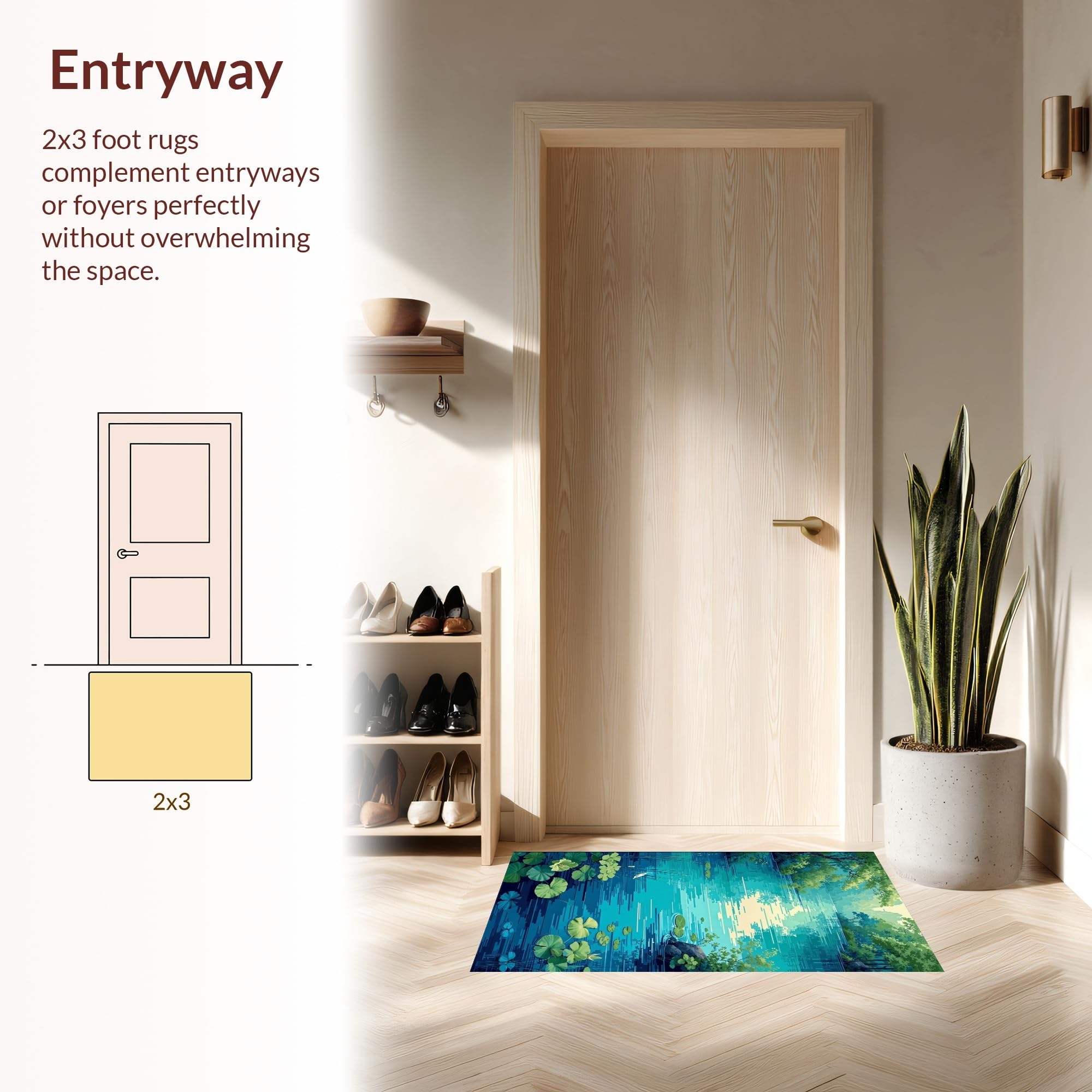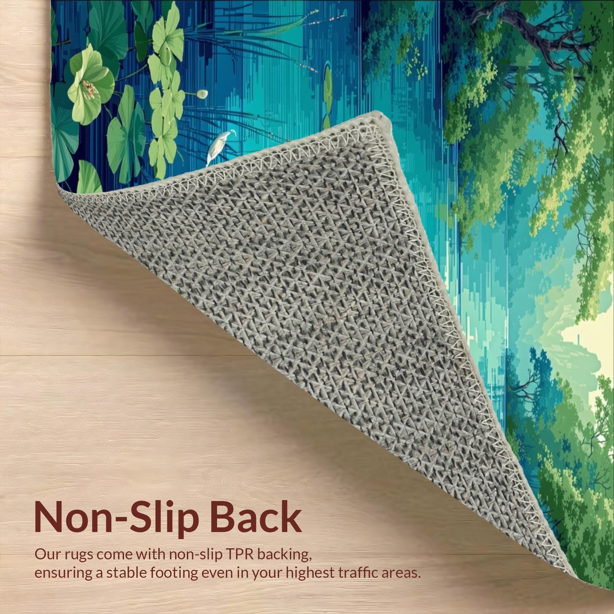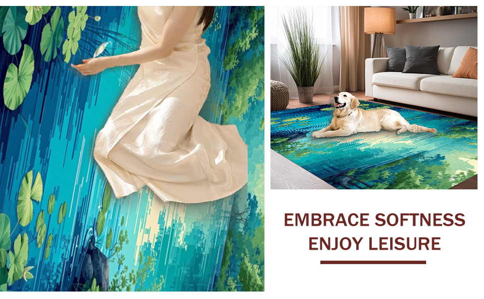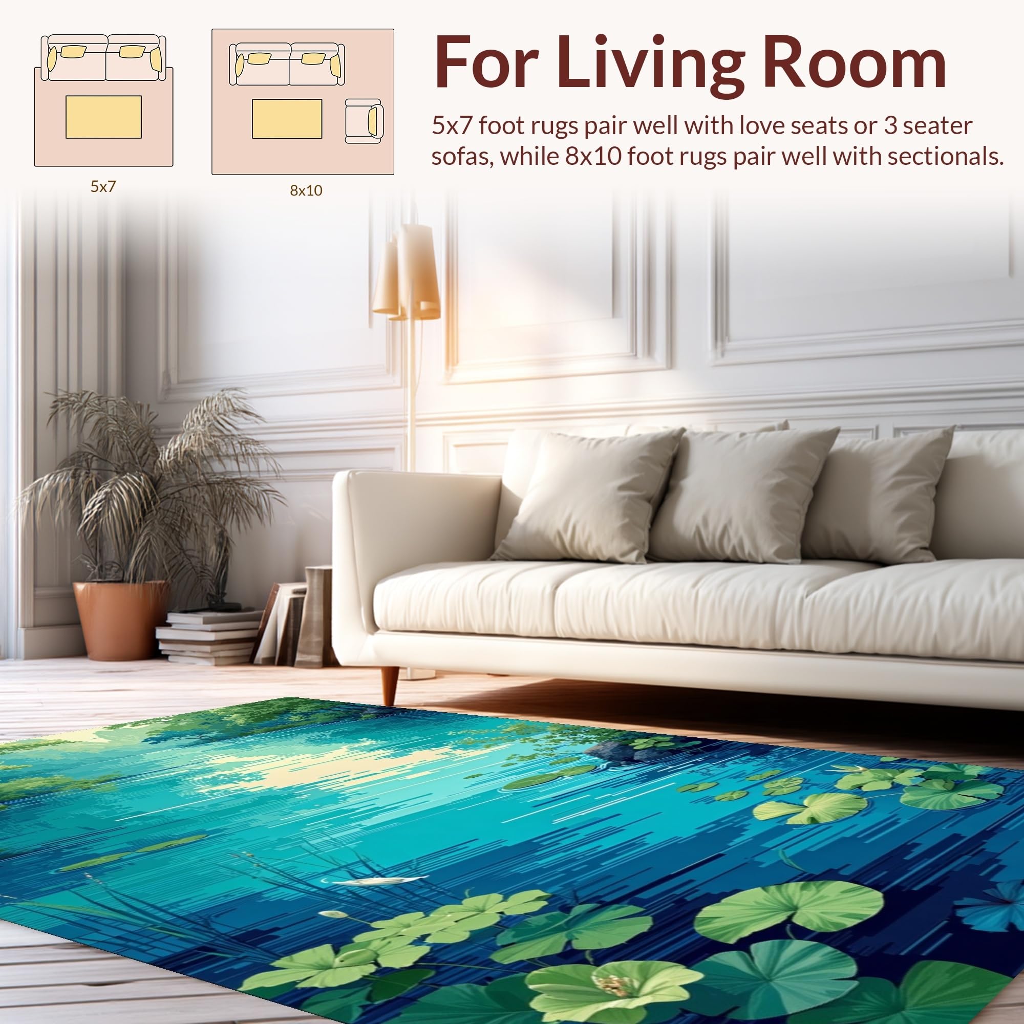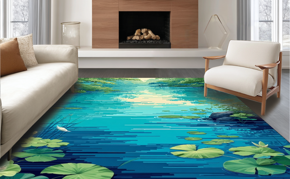 Ultra Soft Area Rug, Non Slip, Stain Resistant, Washable Area Rugs for Living Room, Bedroom, Lively Blue-Green Fantasy Landscape(Blue) Overview:
