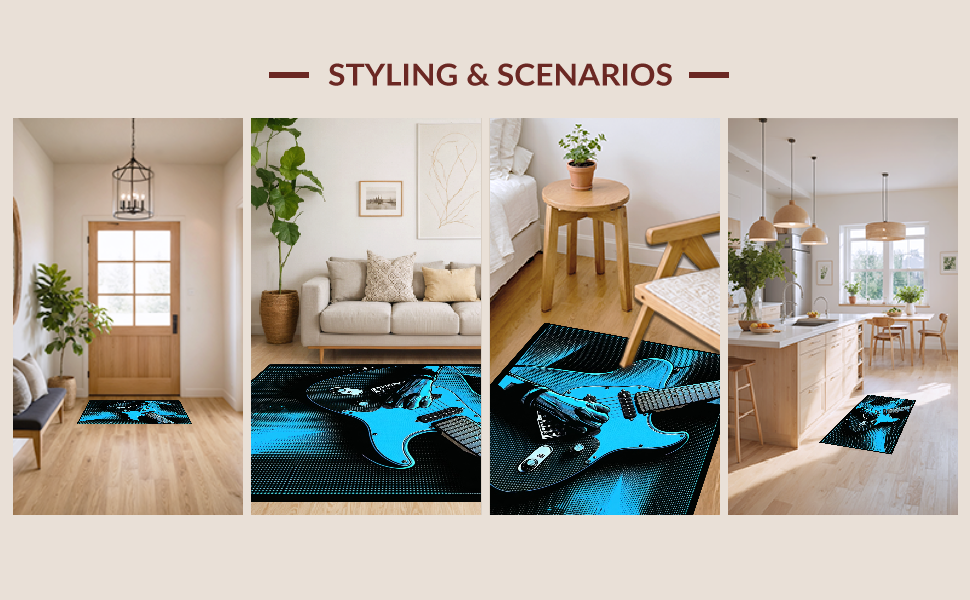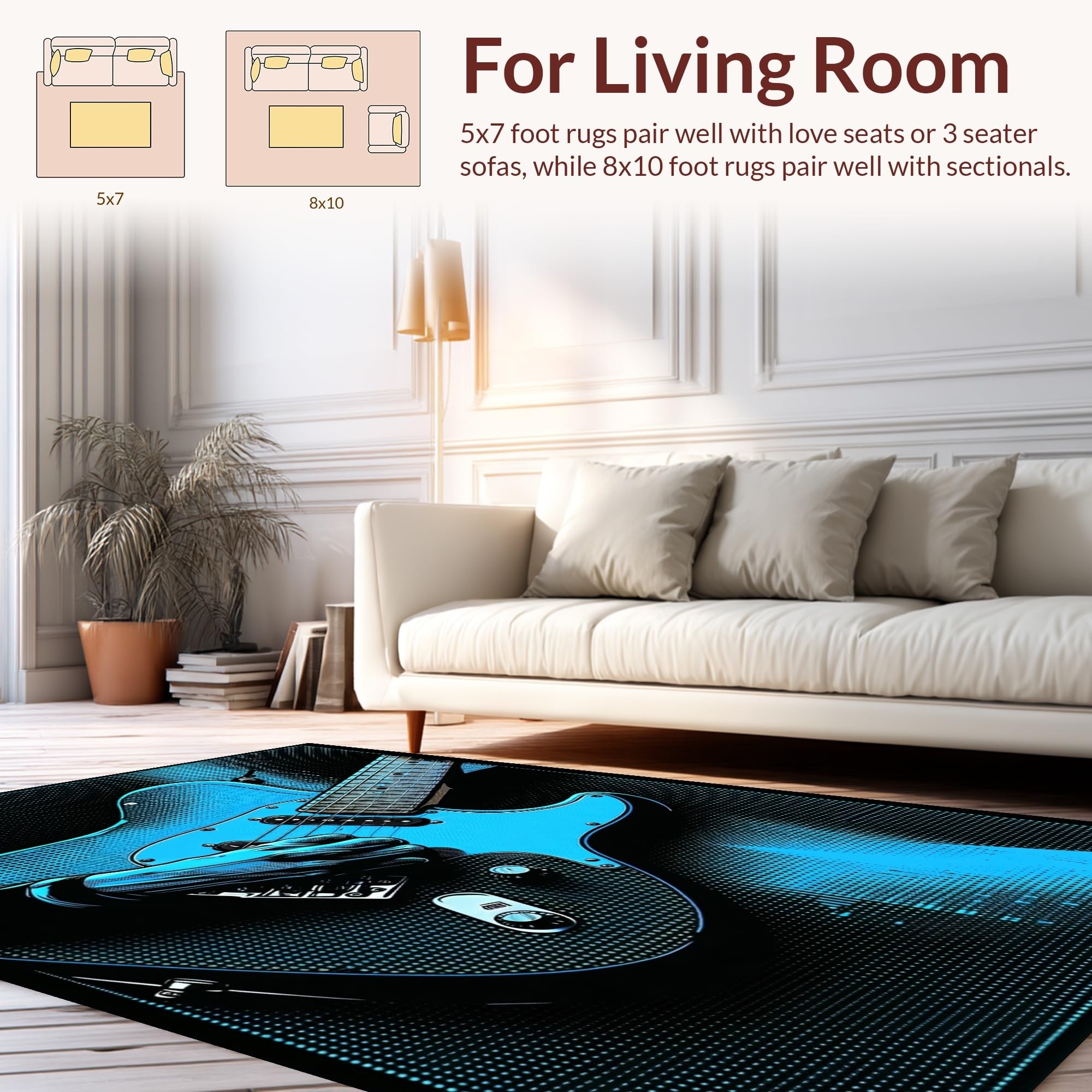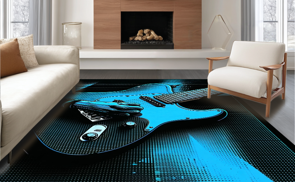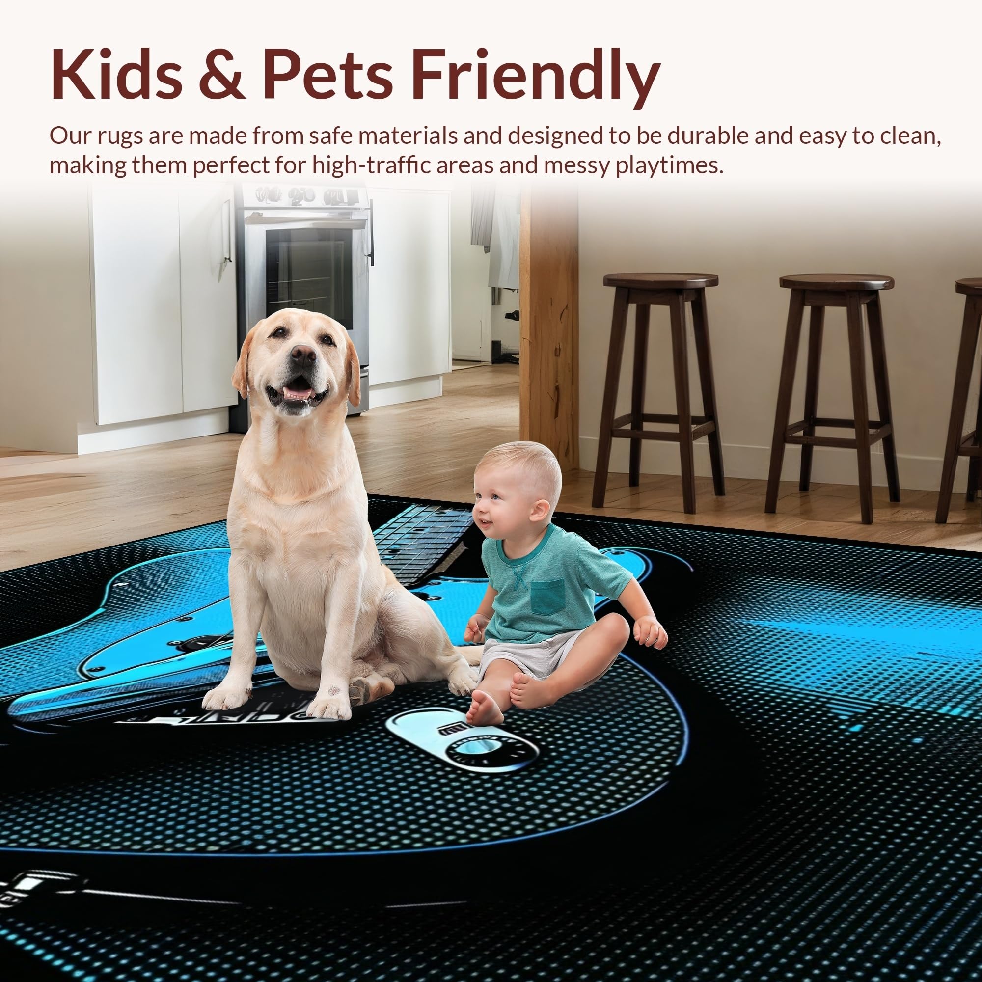 Ultra Soft Area Rug, Non Slip, Stain Resistant, Washable Area Rugs for Living Room, Bedroom, Lively Blue Tones Design(Blue) Overview:
