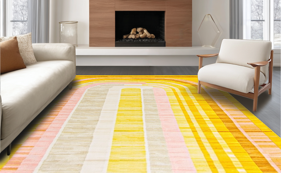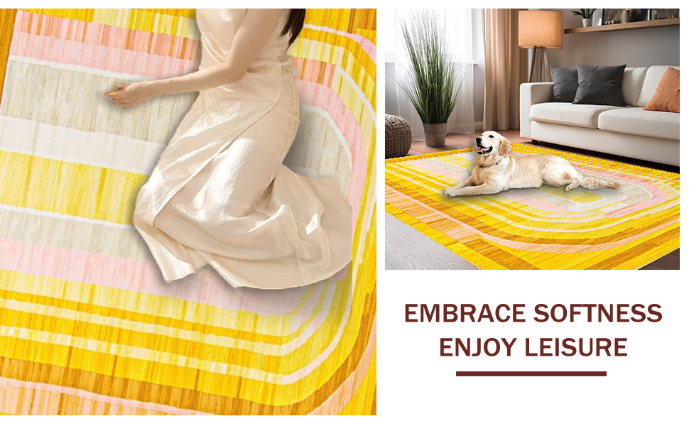 Ultra Soft Area Rug, Non Slip, Stain Resistant, Washable Area Rugs for Living Room, Bedroom, Lively Cheerful Round Decor Element(Yellow) Overview:
