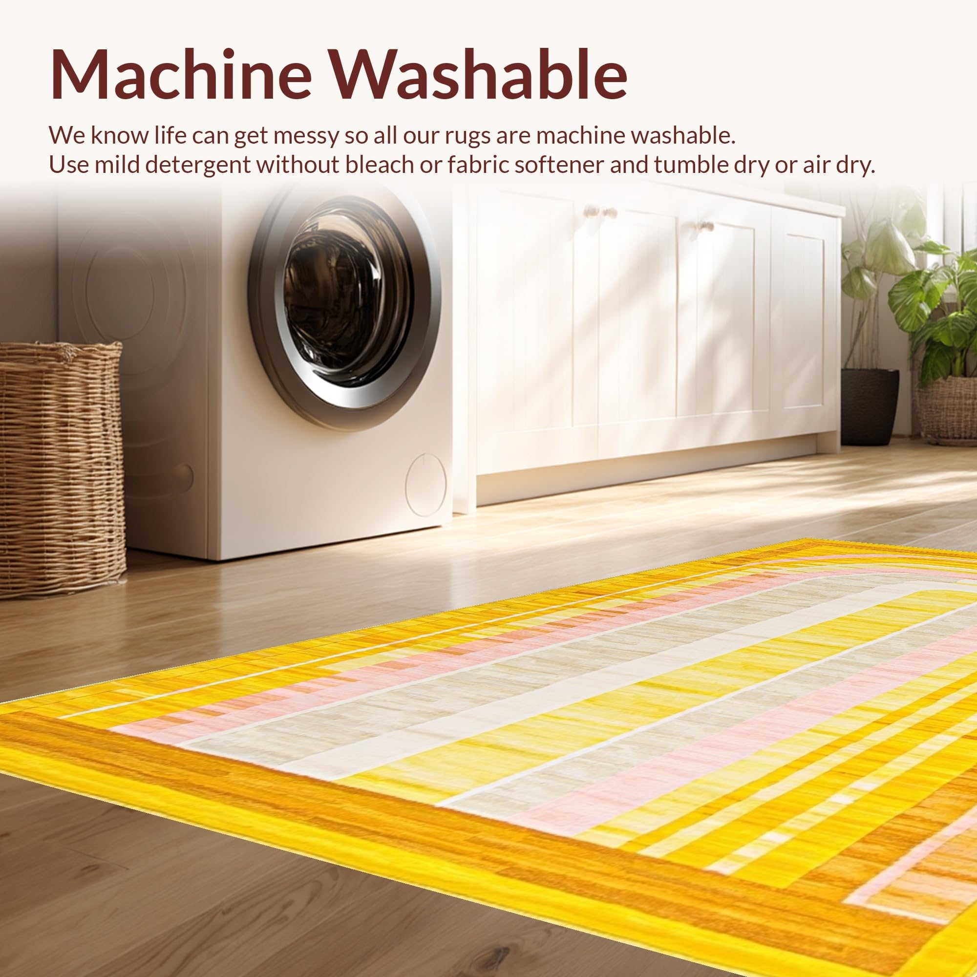 - Machine Washable: Our rugs can be easily thrown in the wash machine.
