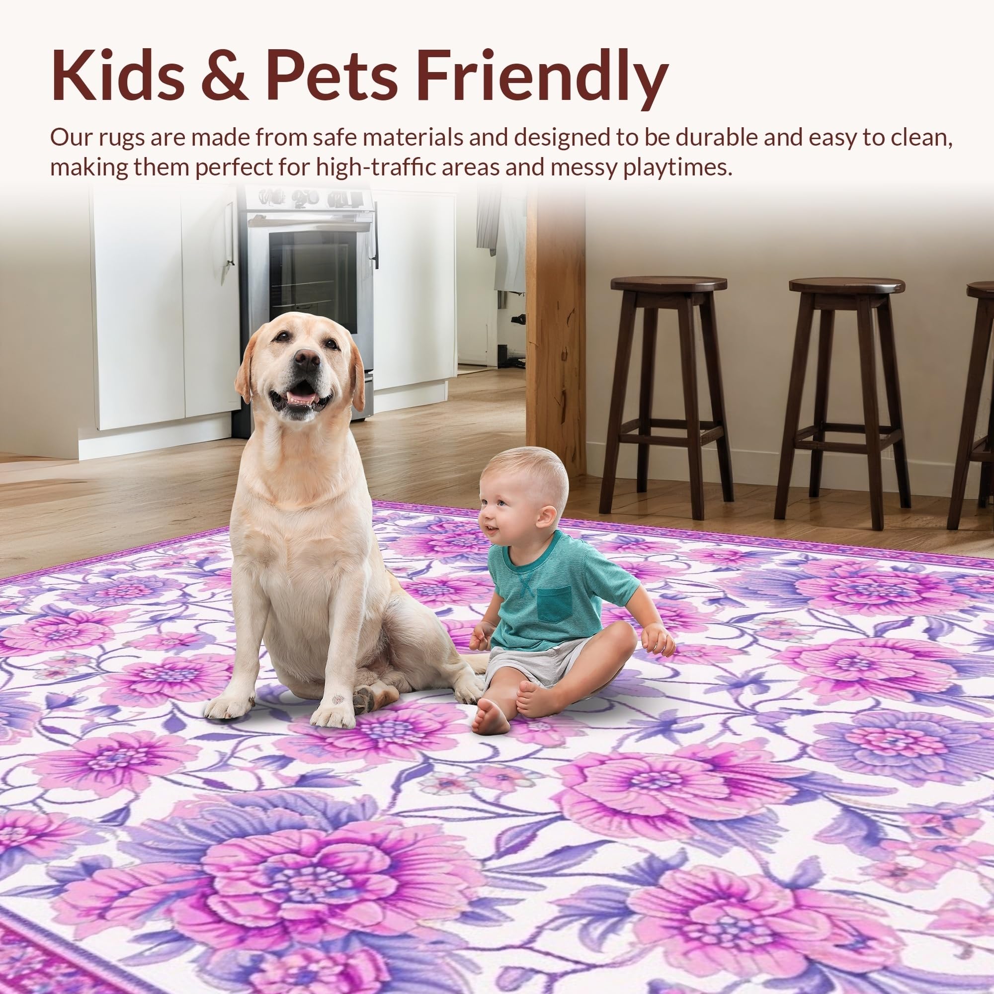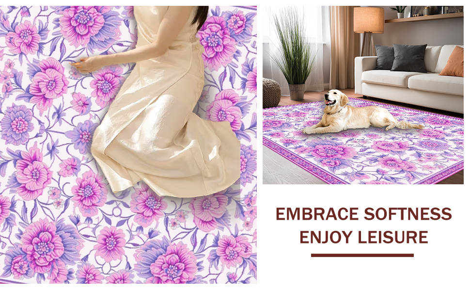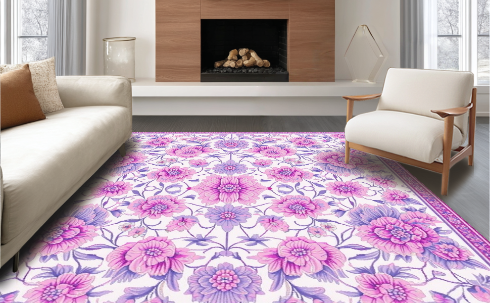 Ultra Soft Area Rug, Non Slip, Stain Resistant, Washable Area Rugs for Living Room, Bedroom, Lively Colorful Nature Inspiration(White) Overview: