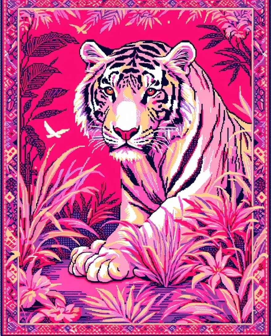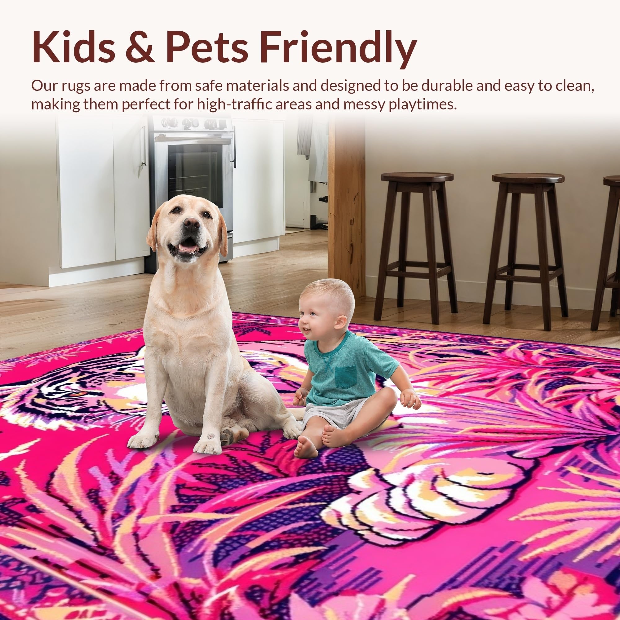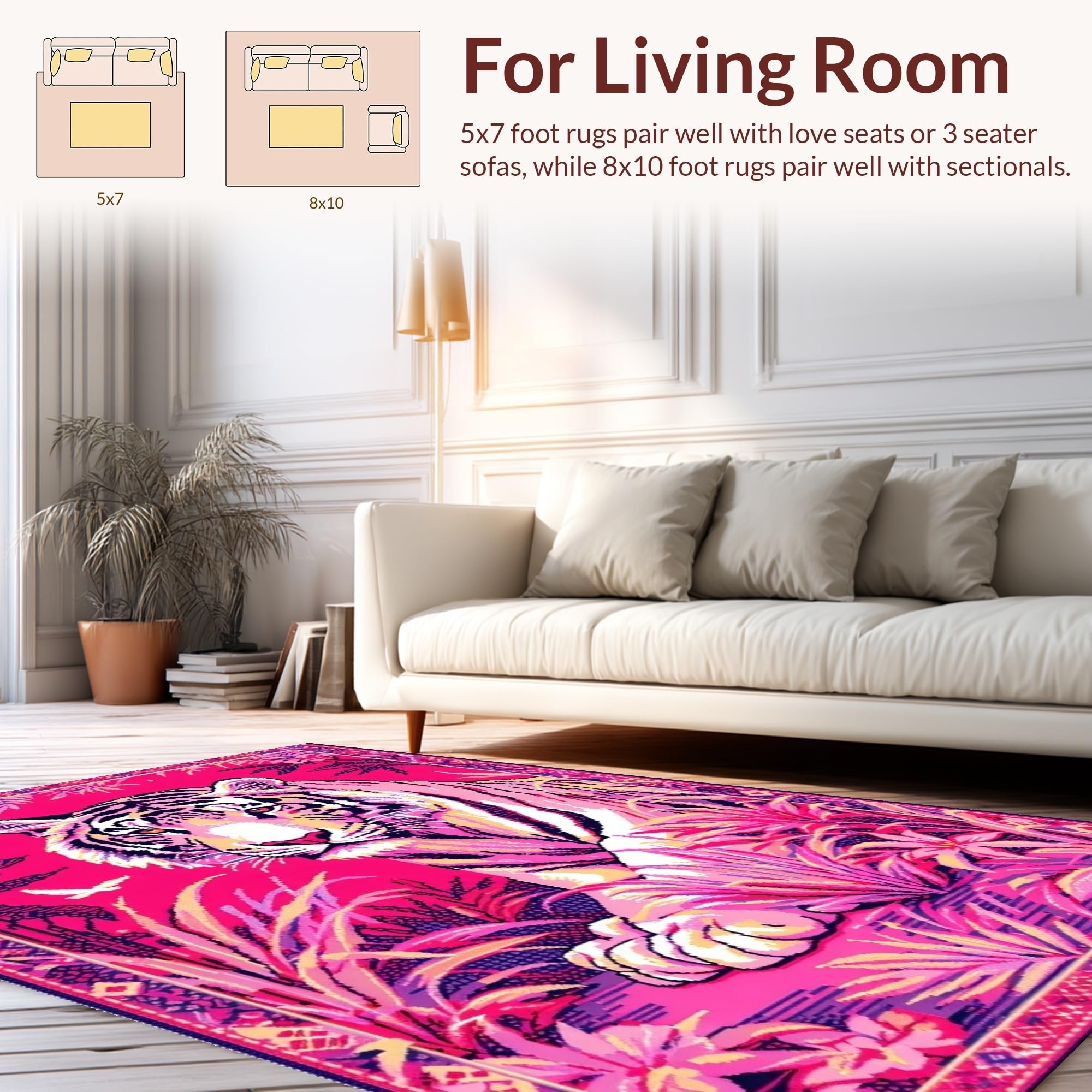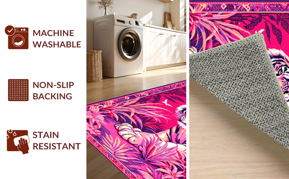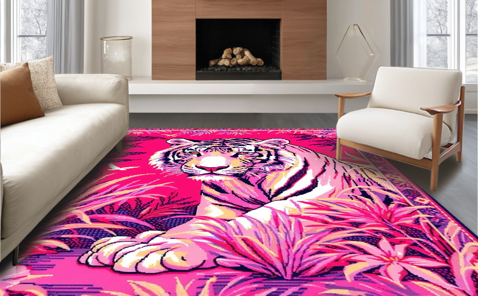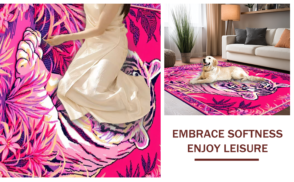 Ultra Soft Area Rug, Non Slip, Stain Resistant, Washable Area Rugs for Living Room, Bedroom, Lively Colorful Tiger Motif(Pink) Overview: