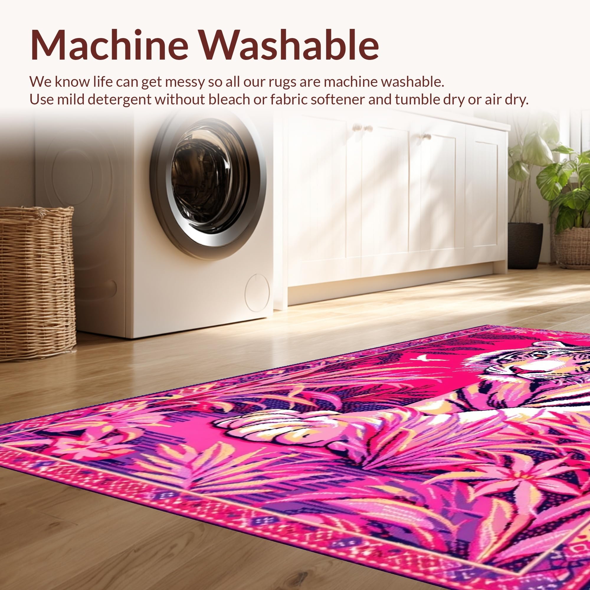 - Machine Washable: Our rugs can be easily thrown in the wash machine.