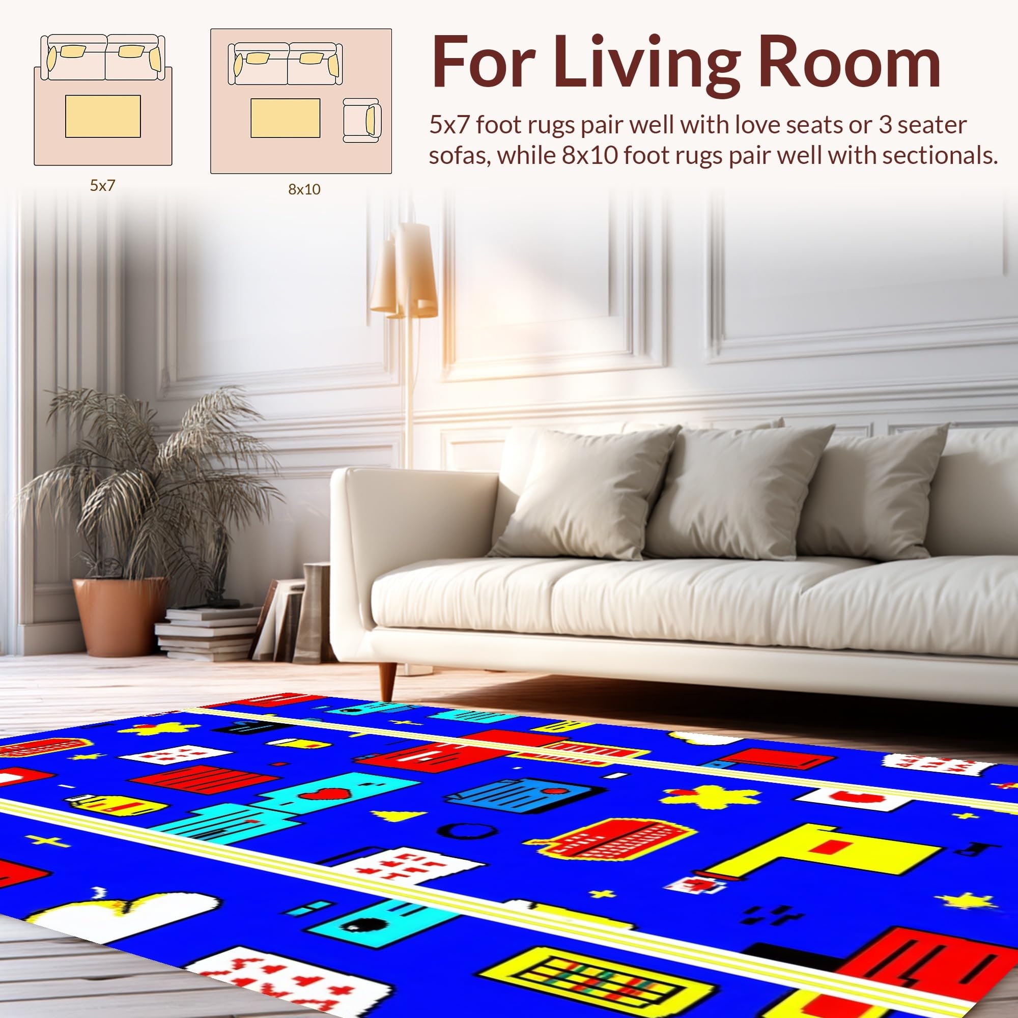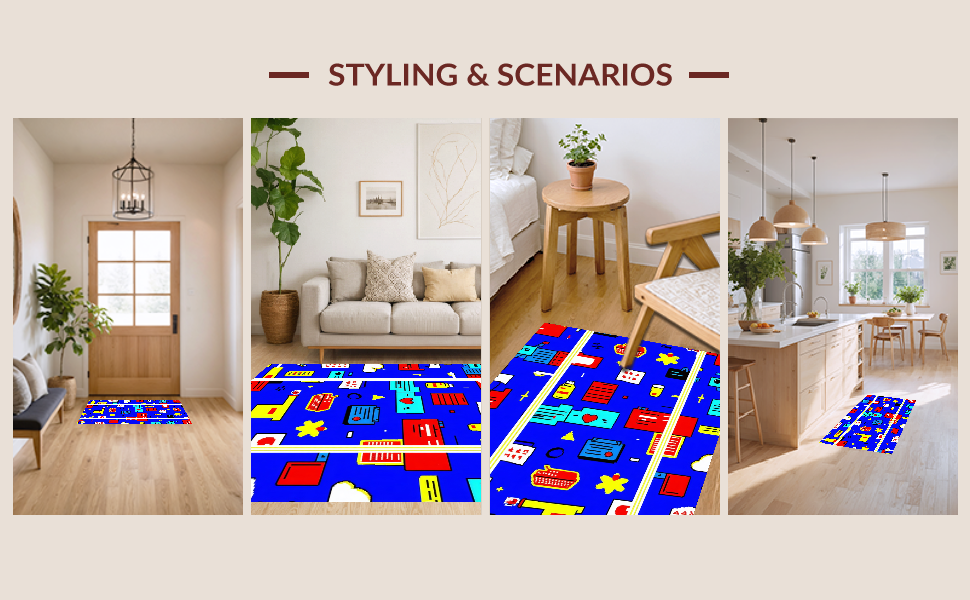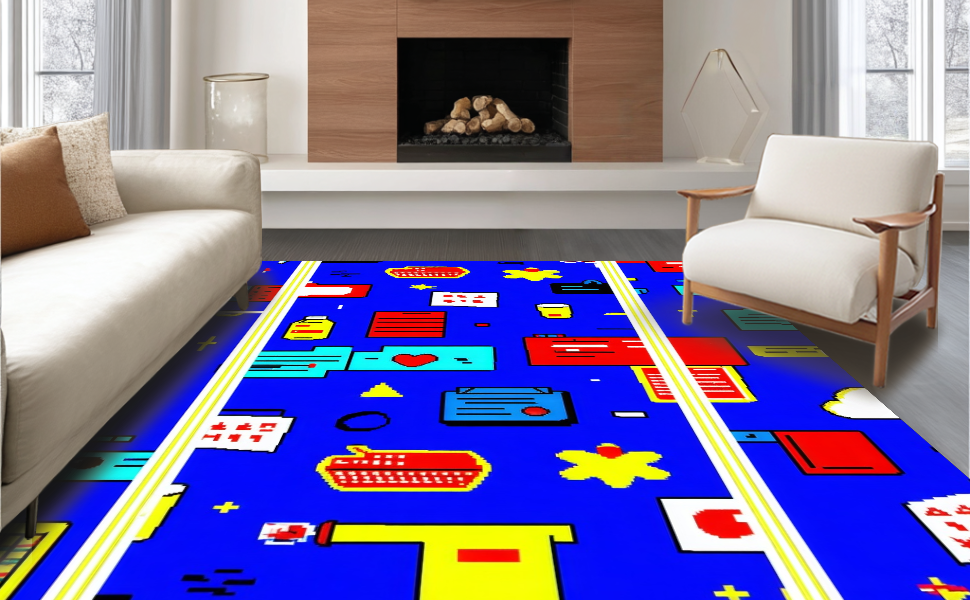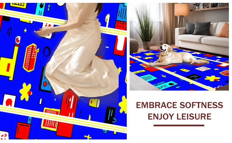 Ultra Soft Area Rug, Non Slip, Stain Resistant, Washable Area Rugs for Living Room, Bedroom, Lively Contemporary Fantasy Imagery(Blue) Overview: