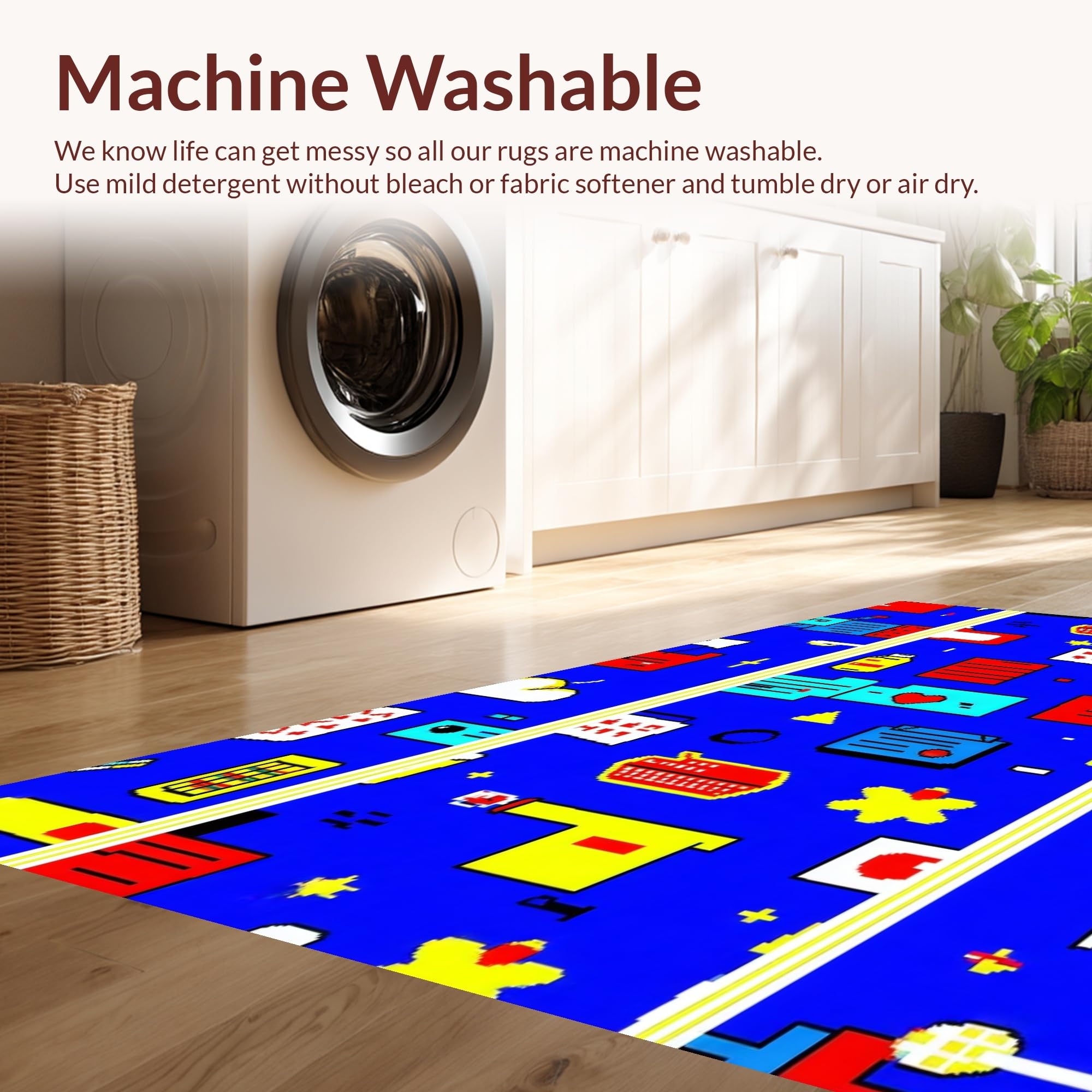 - Machine Washable: Our rugs can be easily thrown in the wash machine.