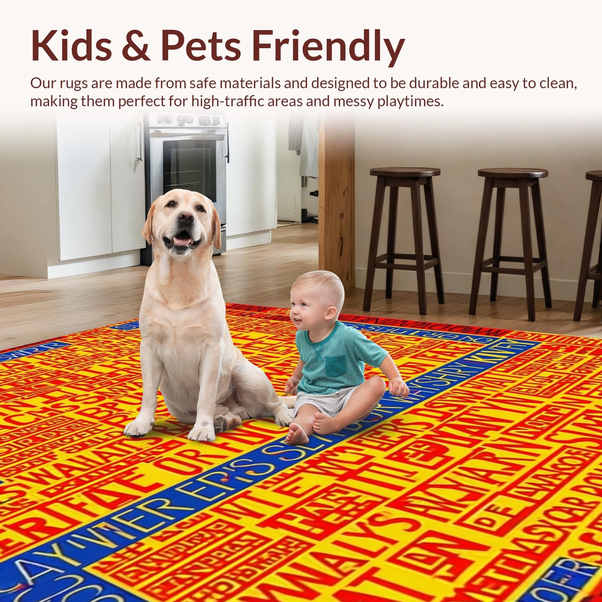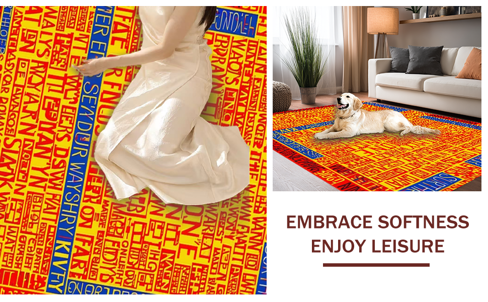 Ultra Soft Area Rug, Non Slip, Stain Resistant, Washable Area Rugs for Living Room, Bedroom, Lively Contemporary Humor Theme(Black) Overview: