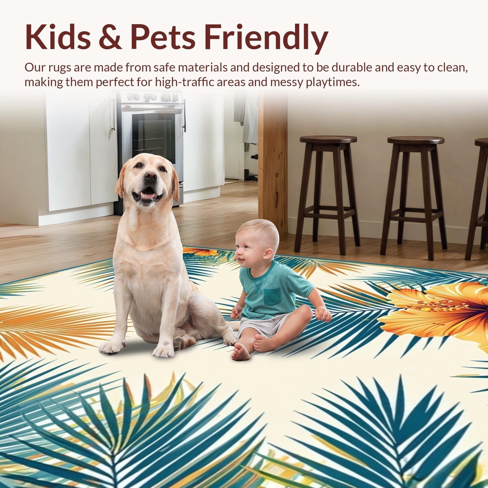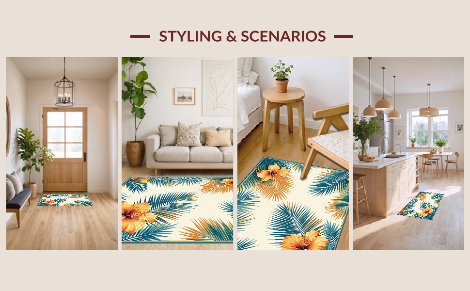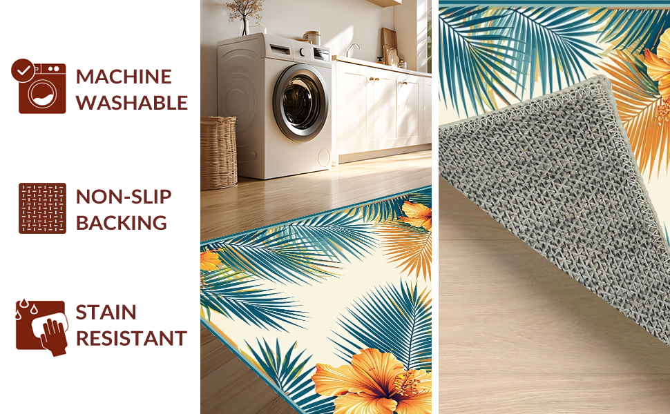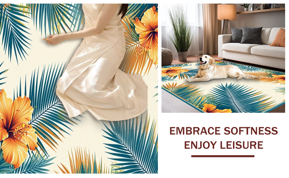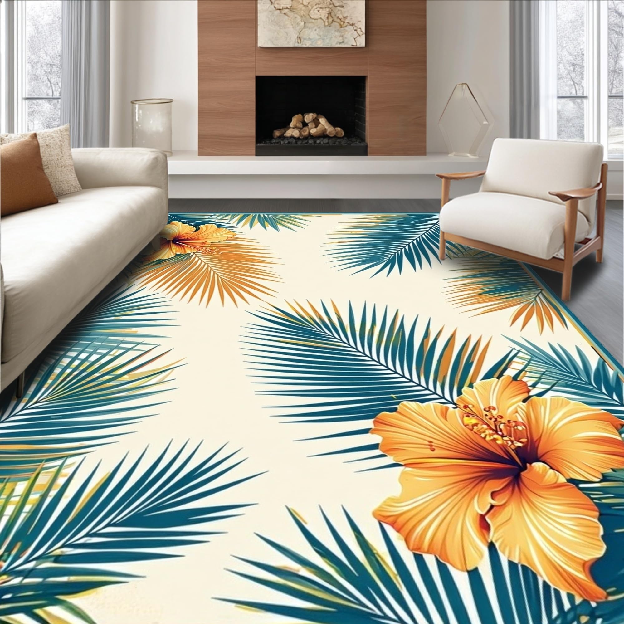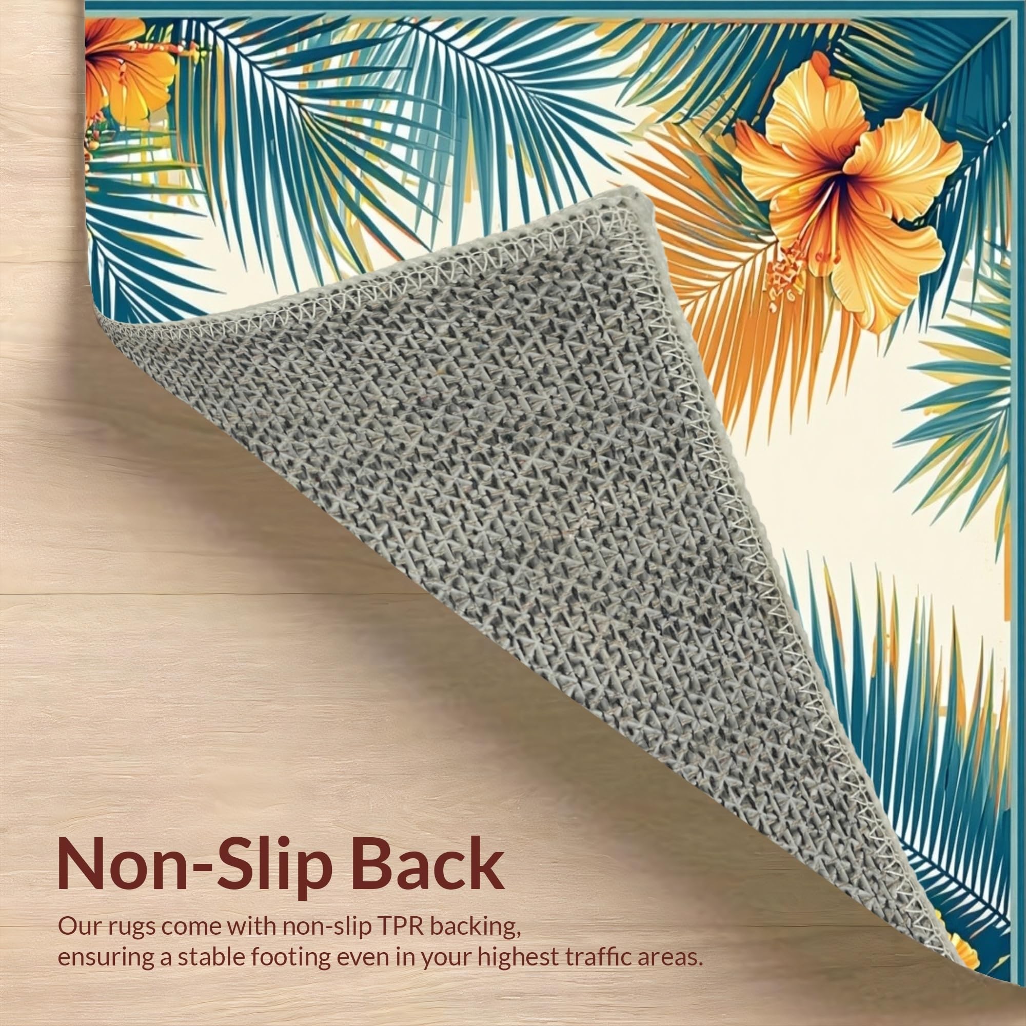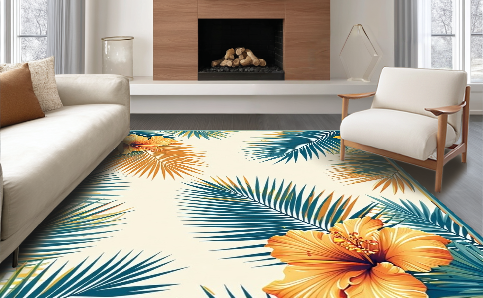 Ultra Soft Area Rug, Non Slip, Stain Resistant, Washable Area Rugs for Living Room, Bedroom, Lively Cream Orange Botanical Design(Orange) Overview:
