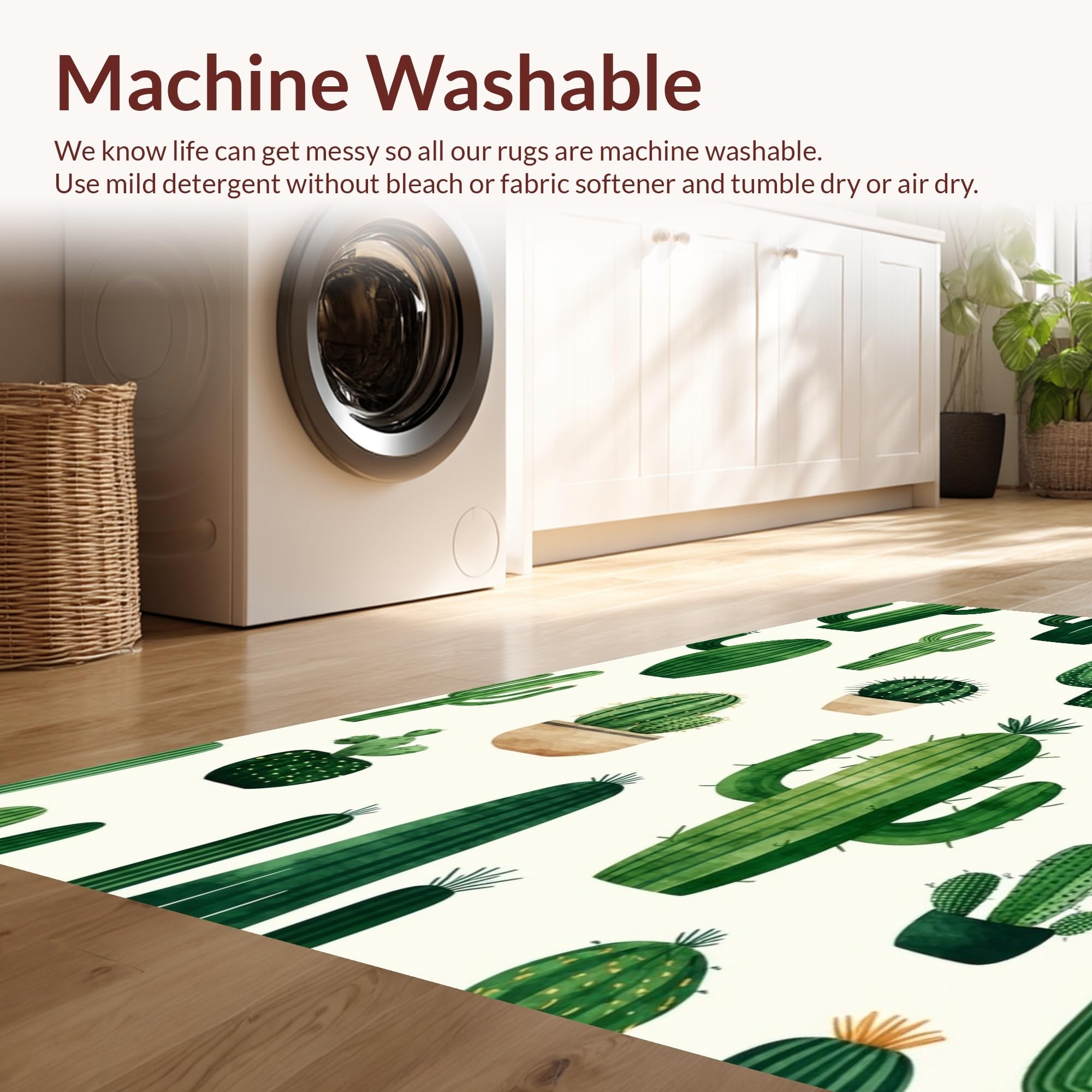 - Machine Washable: Our rugs can be easily thrown in the wash machine.