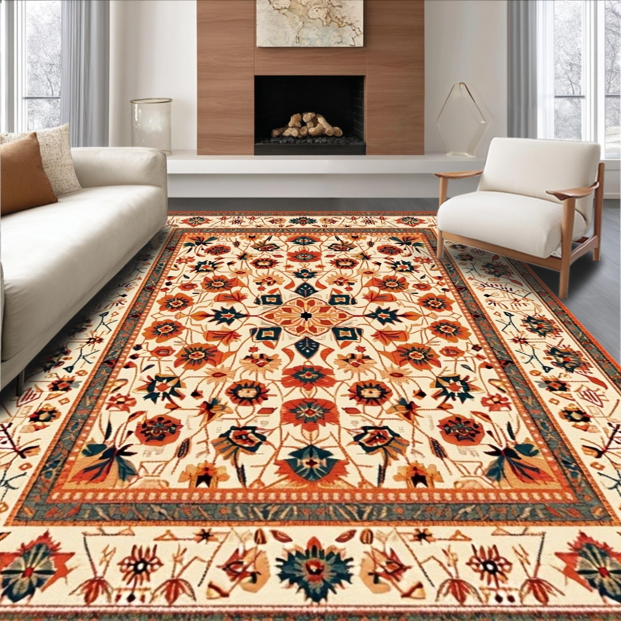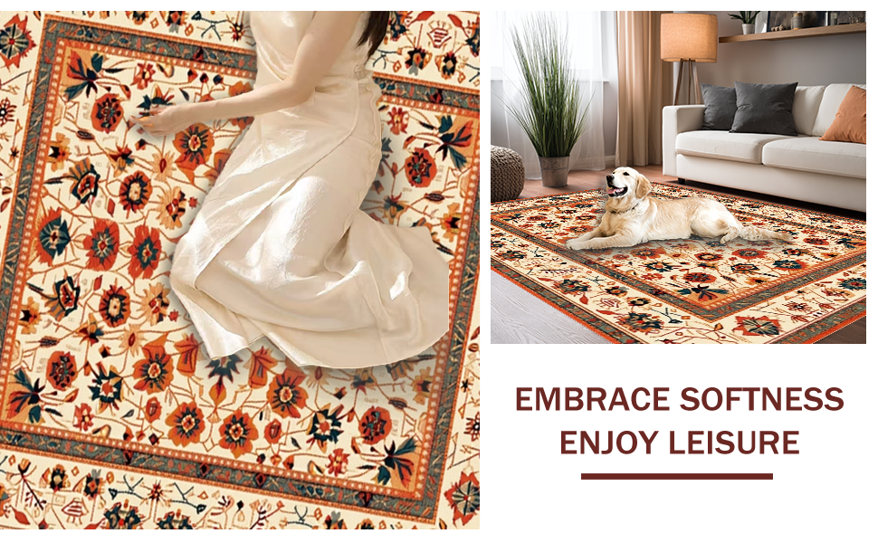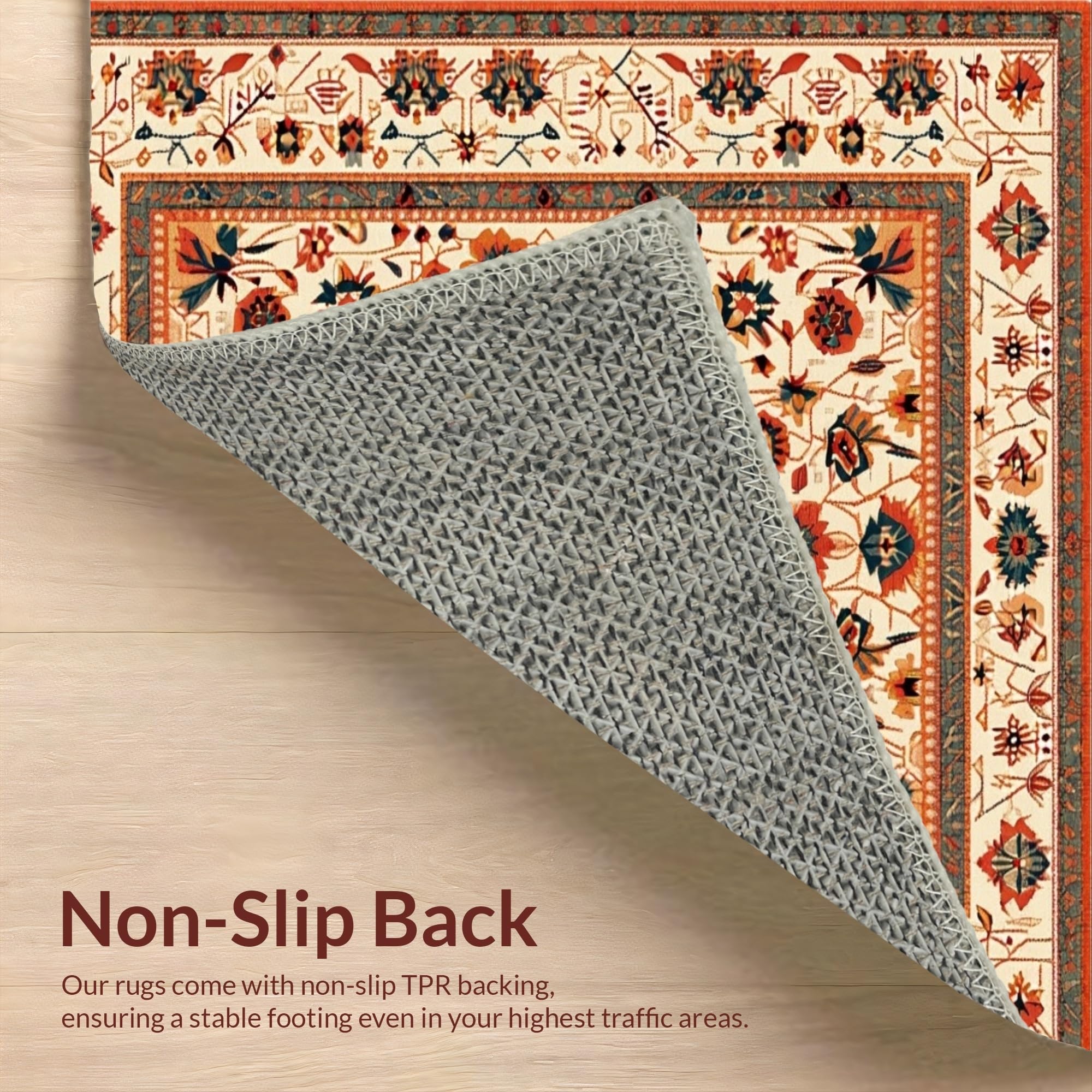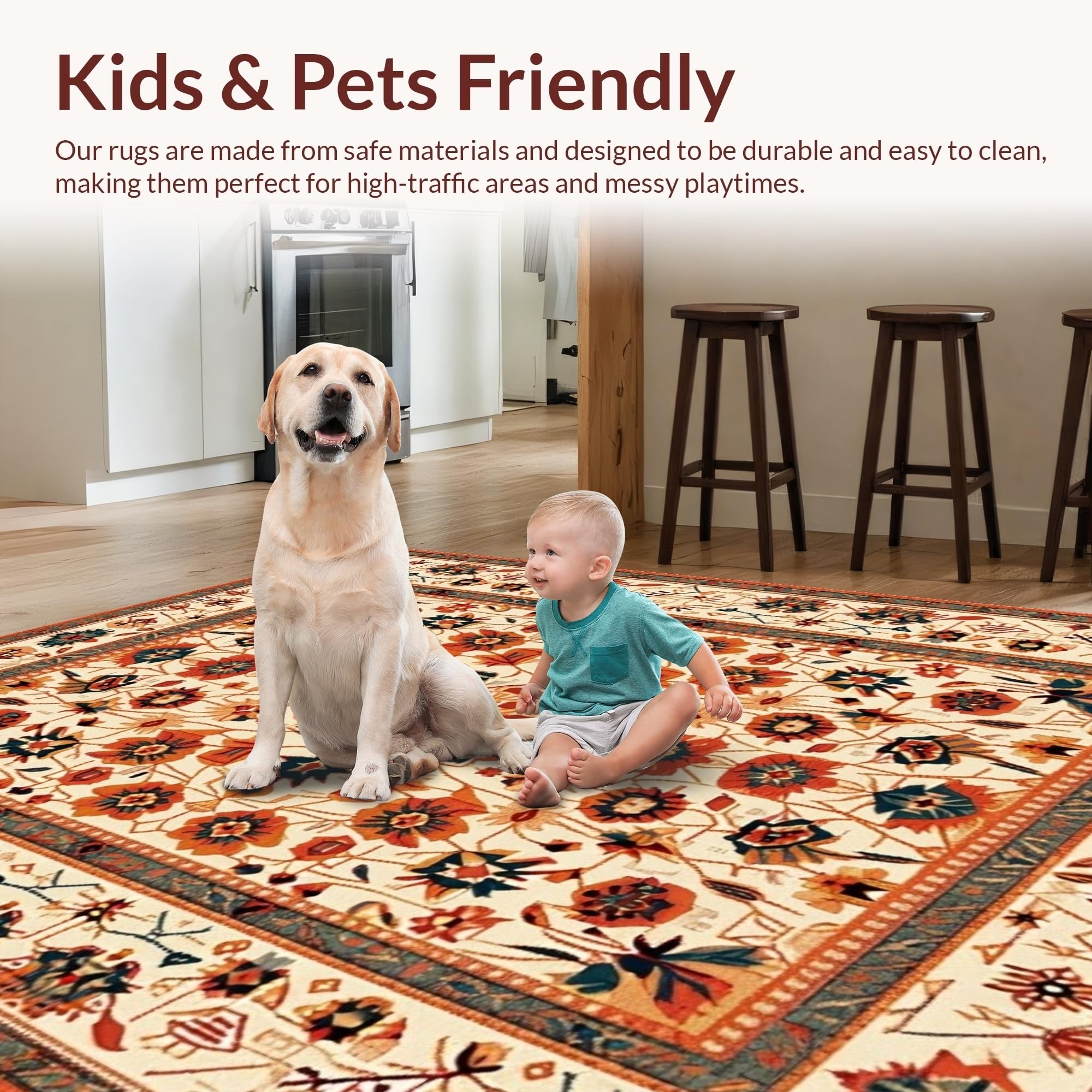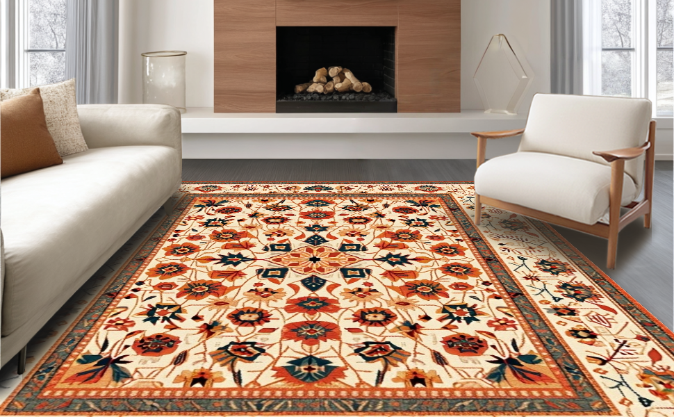 Ultra Soft Area Rug, Non Slip, Stain Resistant, Washable Area Rugs for Living Room, Bedroom, Lively Earthy Trellis Composition(Beige) Overview: