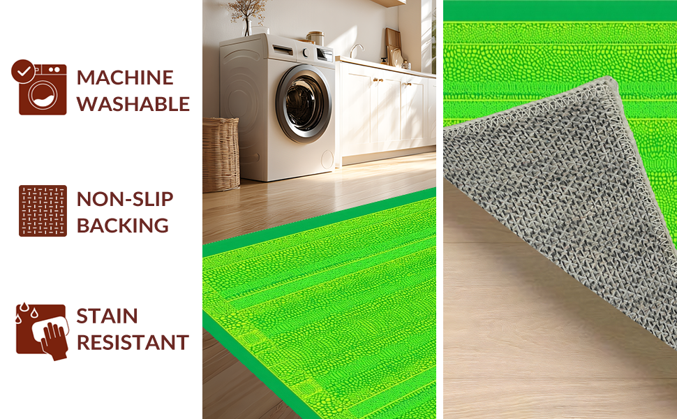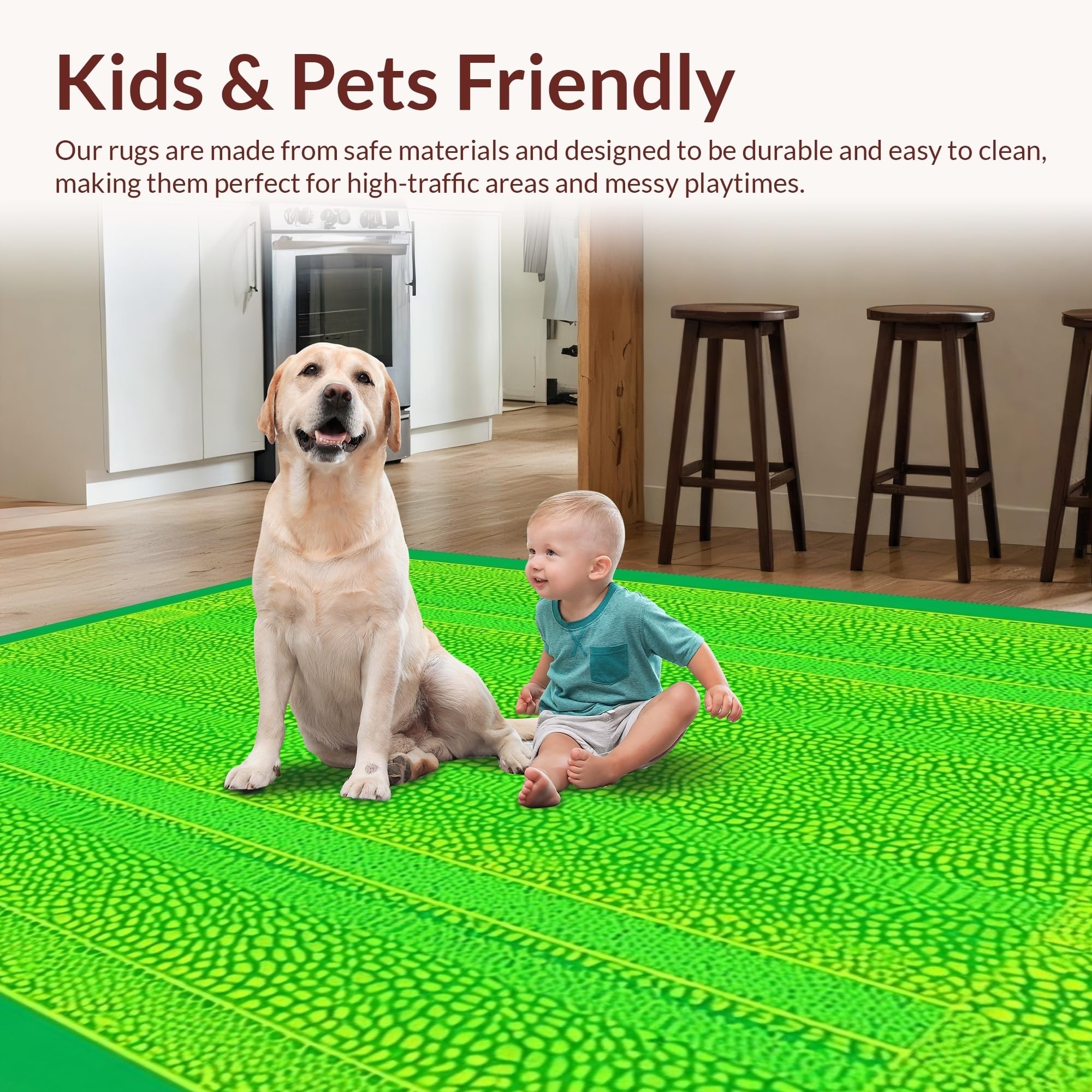 Ultra Soft Area Rug, Non Slip, Stain Resistant, Washable Area Rugs for Living Room, Bedroom, Lively Eclectic Jungle Vibe(Green) Overview: