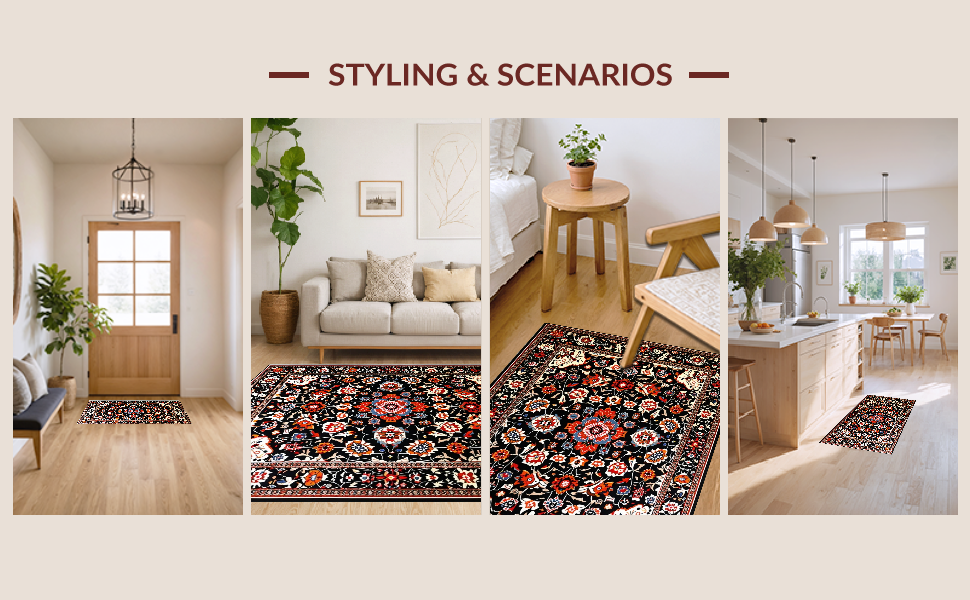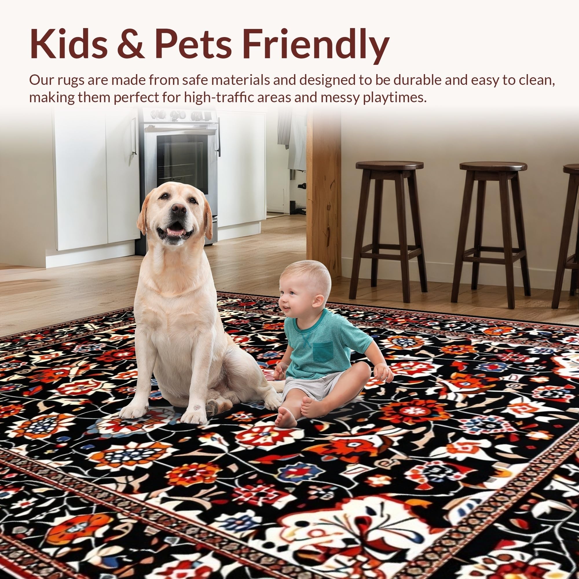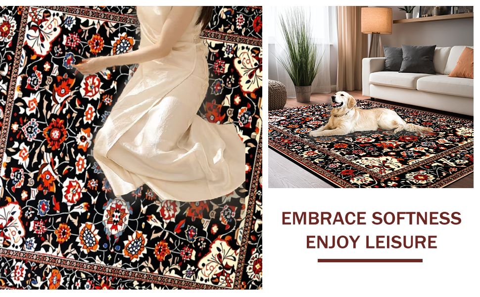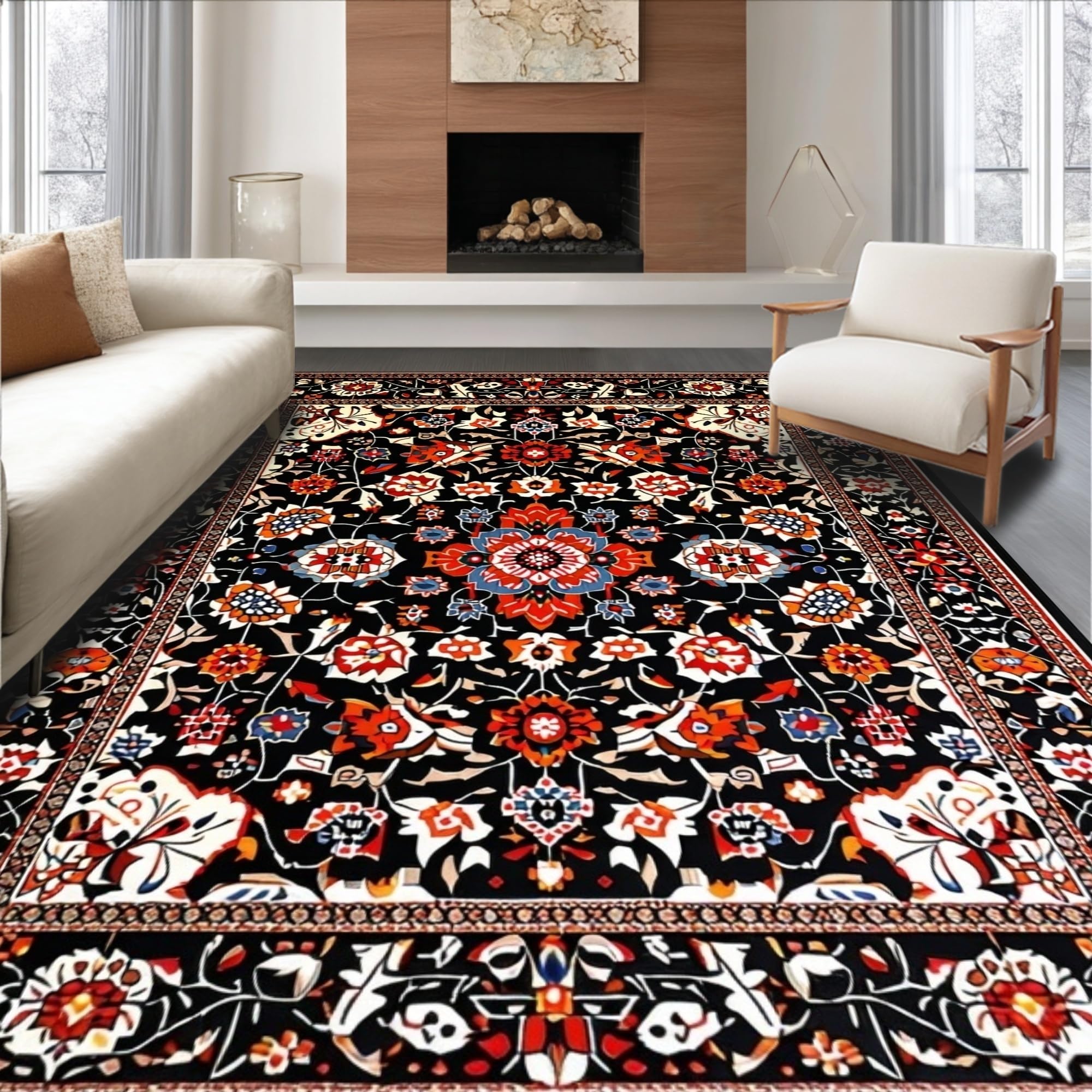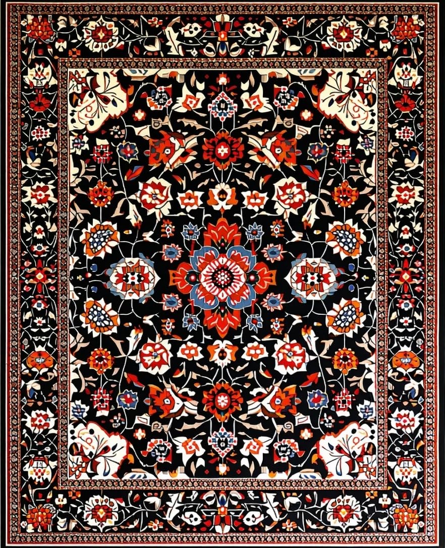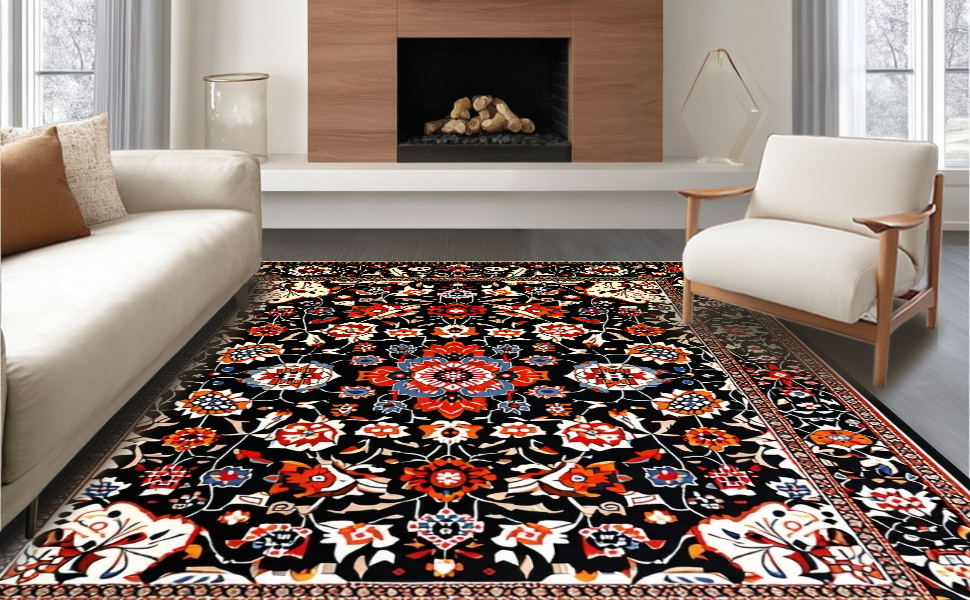Ultra Soft Area Rug, Non Slip, Stain Resistant, Washable Area Rugs for Living Room, Bedroom, Lively Eclectic Tiled Motif(Black) Overview: