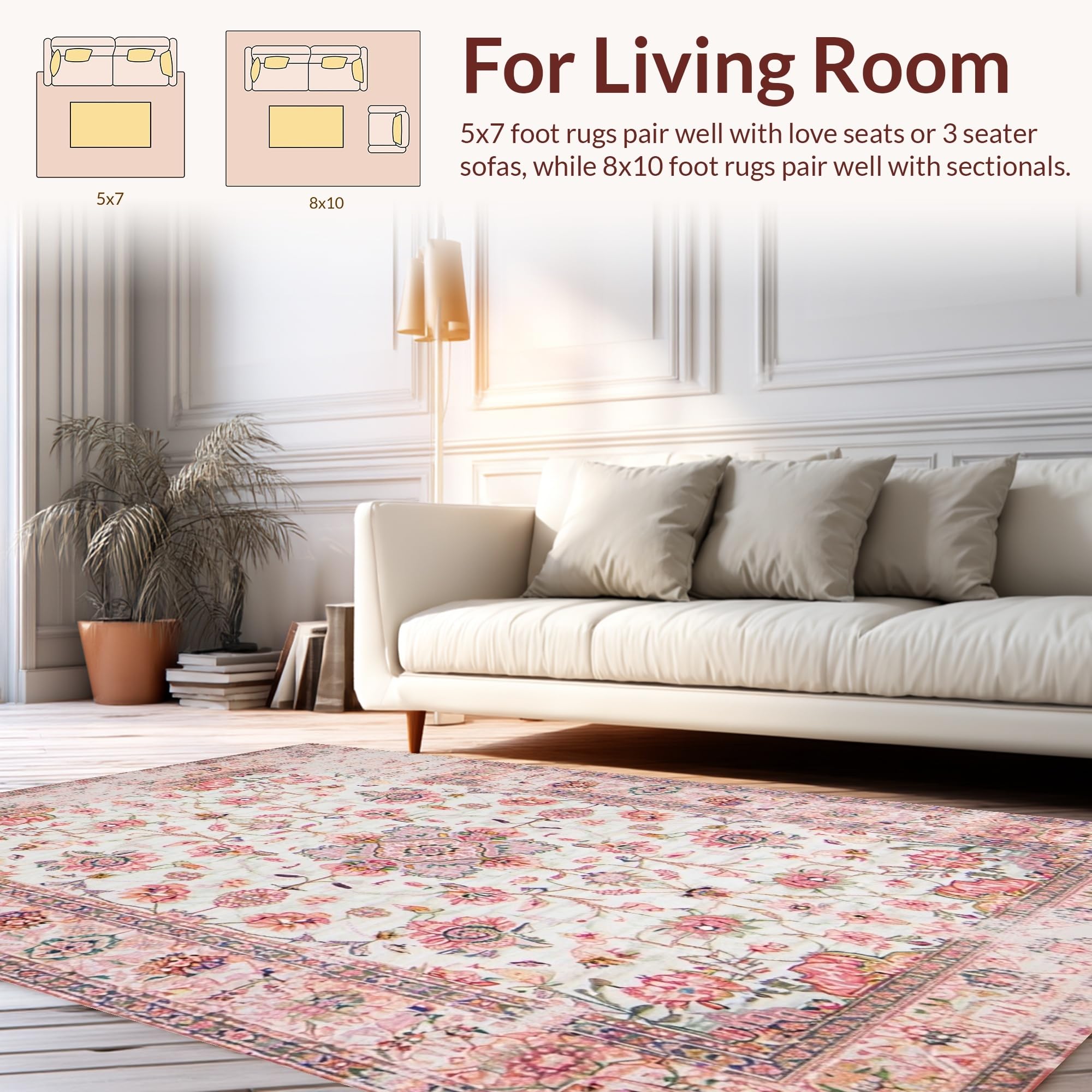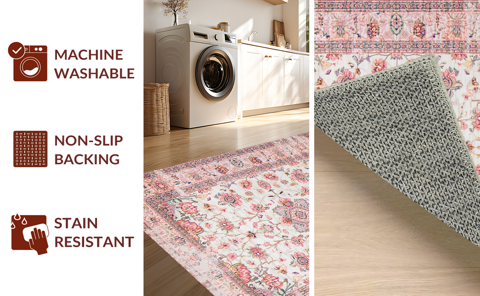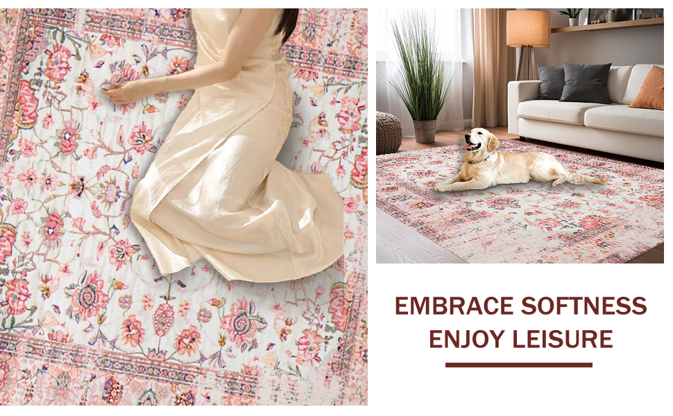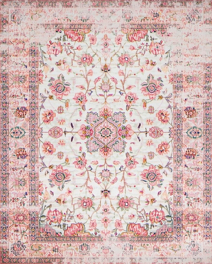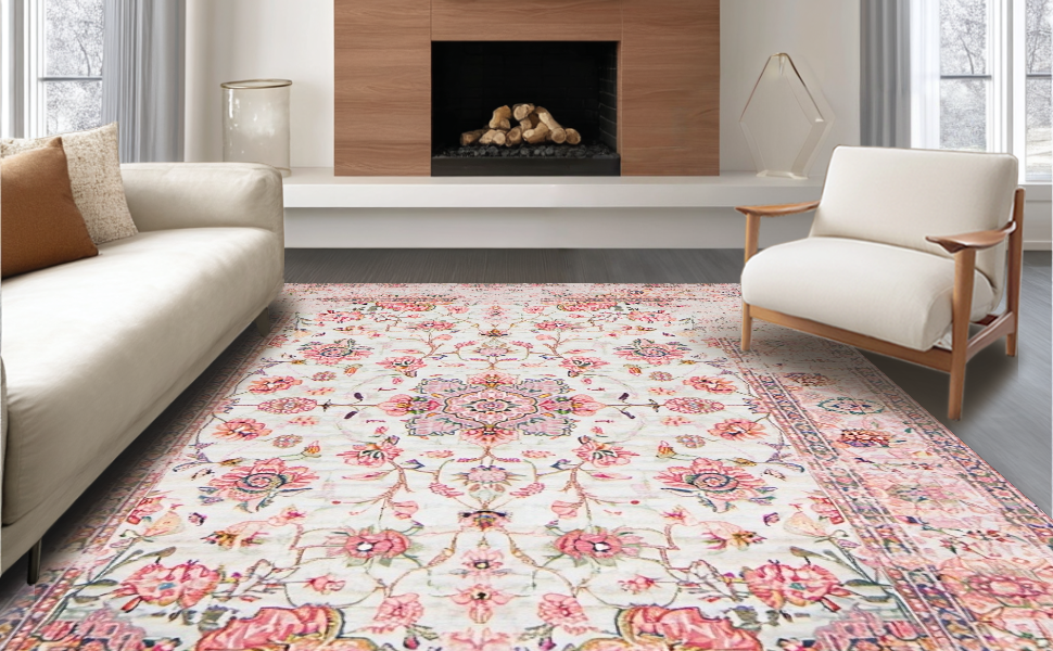 Ultra Soft Area Rug, Non Slip, Stain Resistant, Washable Area Rugs for Living Room, Bedroom, Lively Eco-Friendly Floral Palette(Pink) Overview: