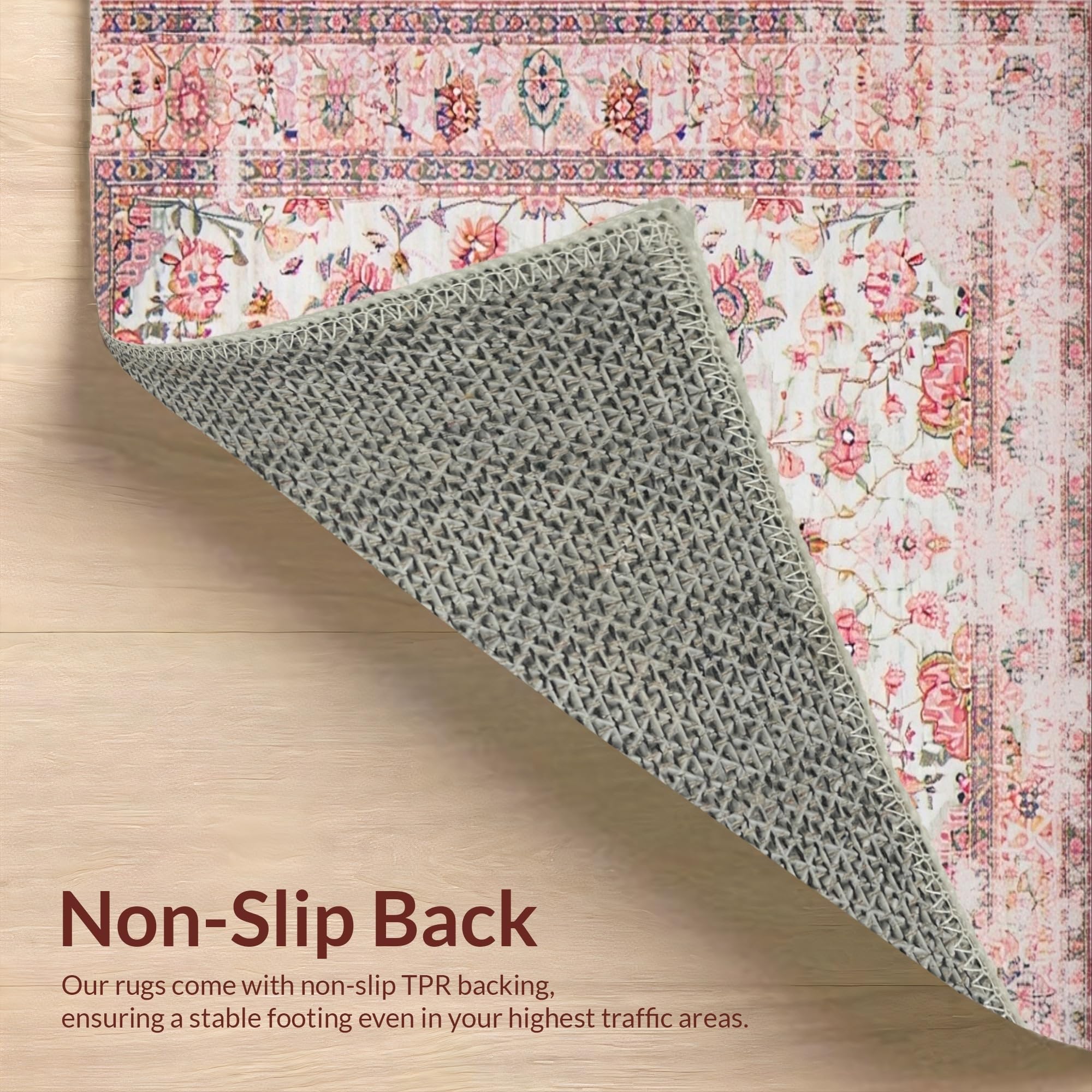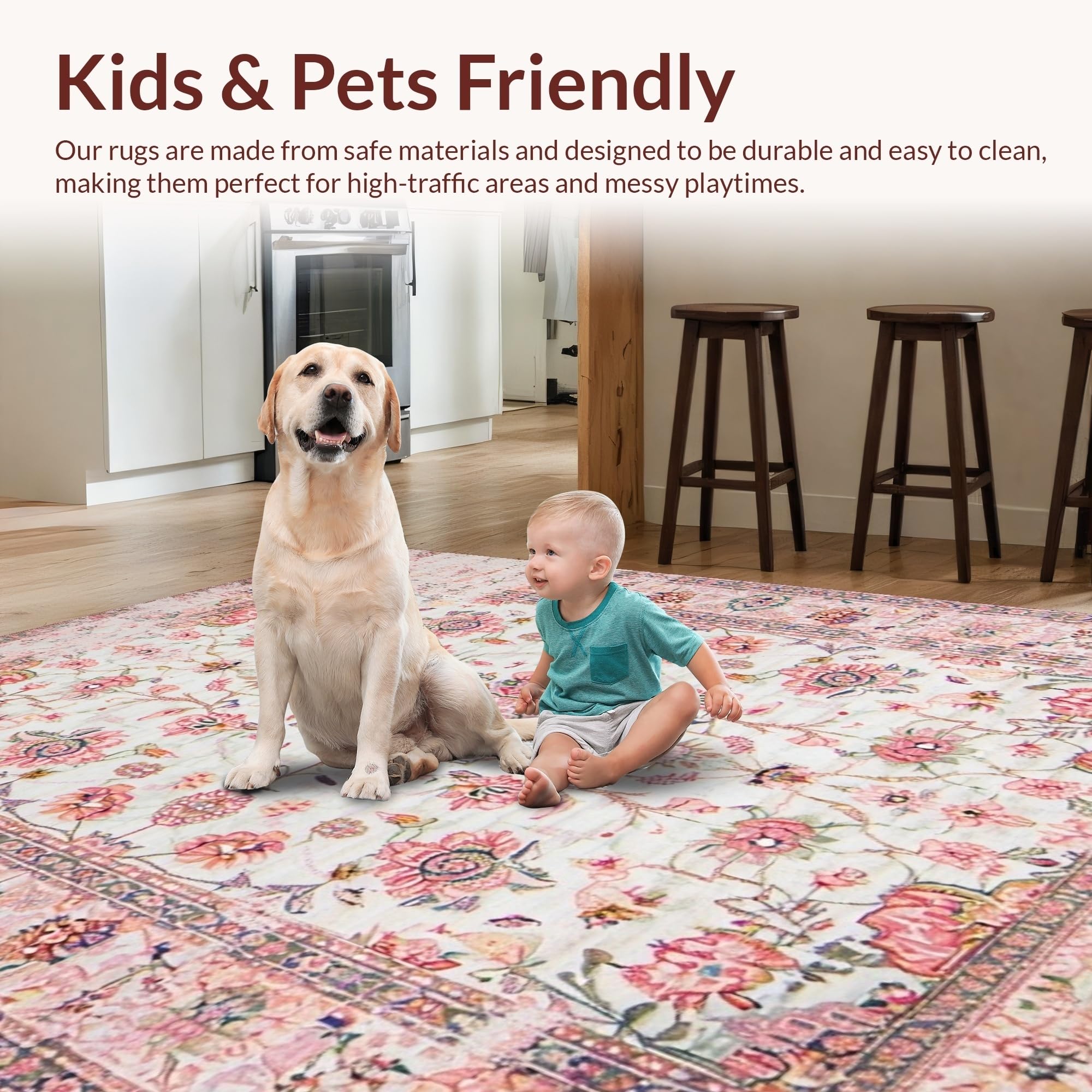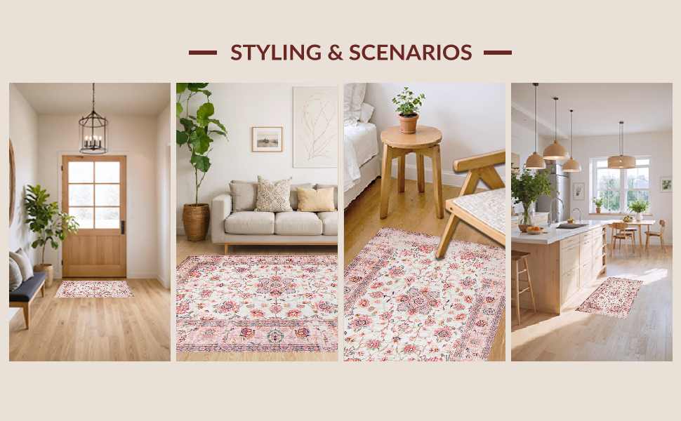 Ultra Soft Area Rug, Non Slip, Stain Resistant, Washable Area Rugs for Living Room, Bedroom, Lively Eco-Friendly Floral Palette(Pink) Overview: