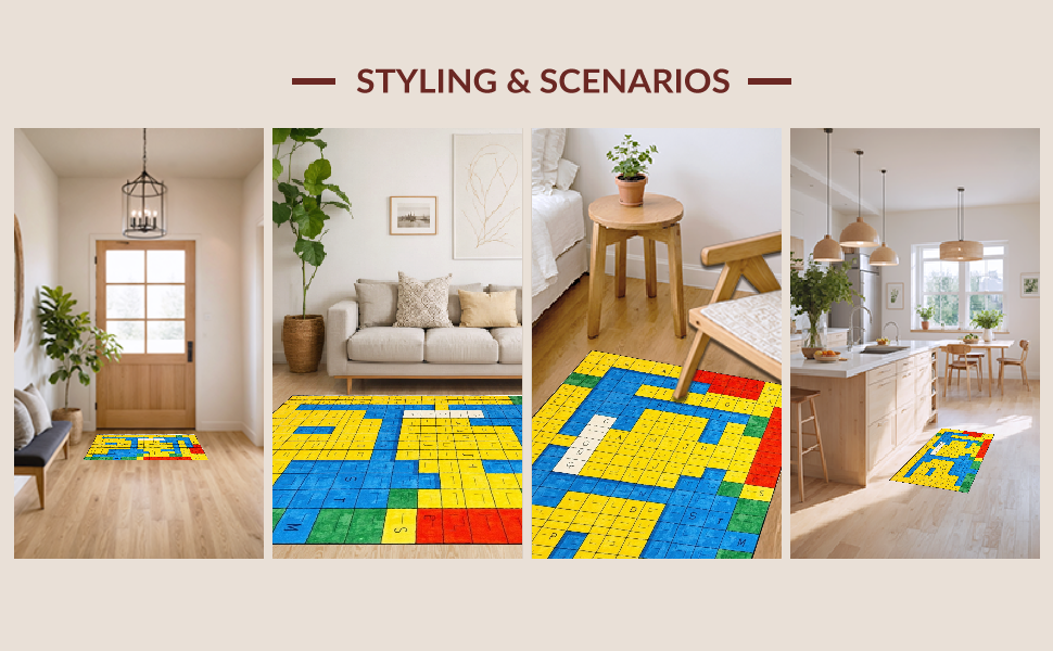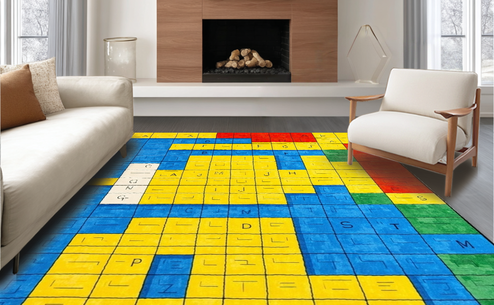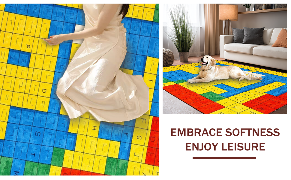 Ultra Soft Area Rug, Non Slip, Stain Resistant, Washable Area Rugs for Living Room, Bedroom, Lively Educational Elements Composition(Red) Overview: