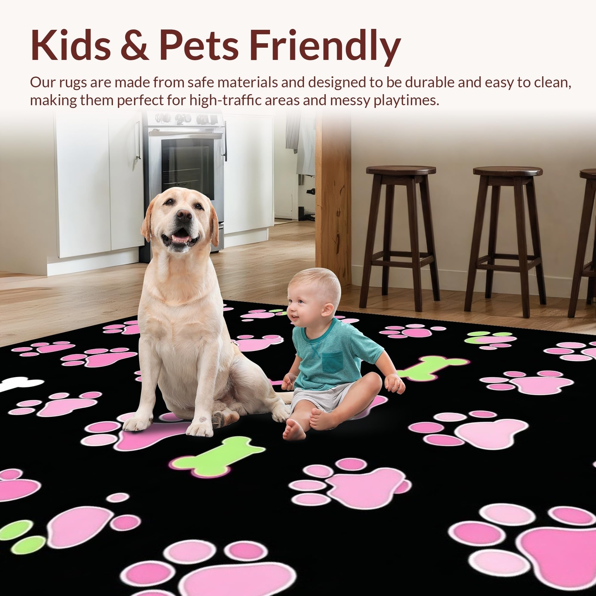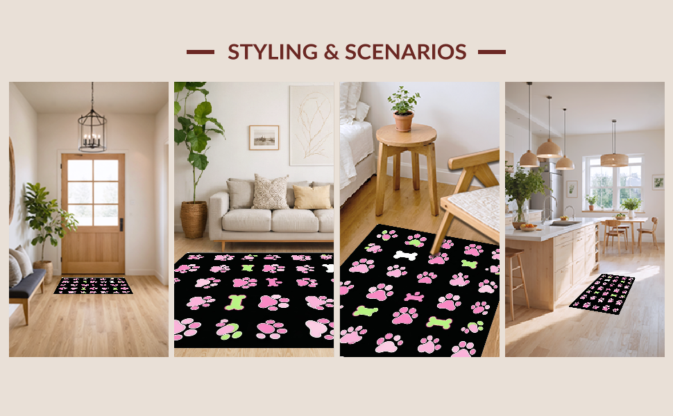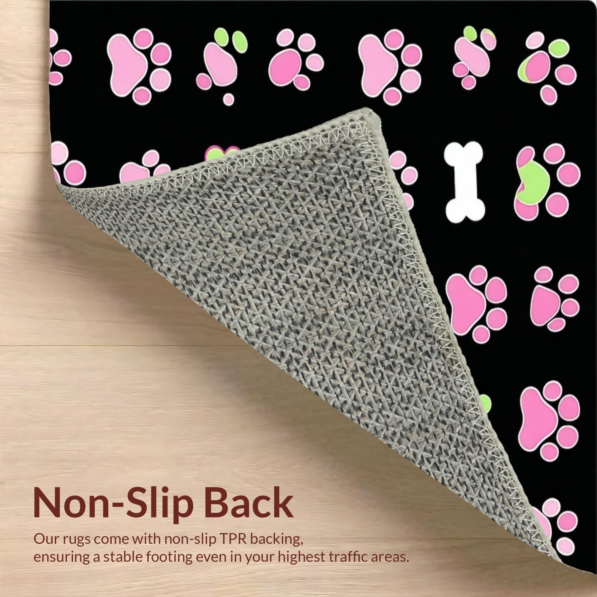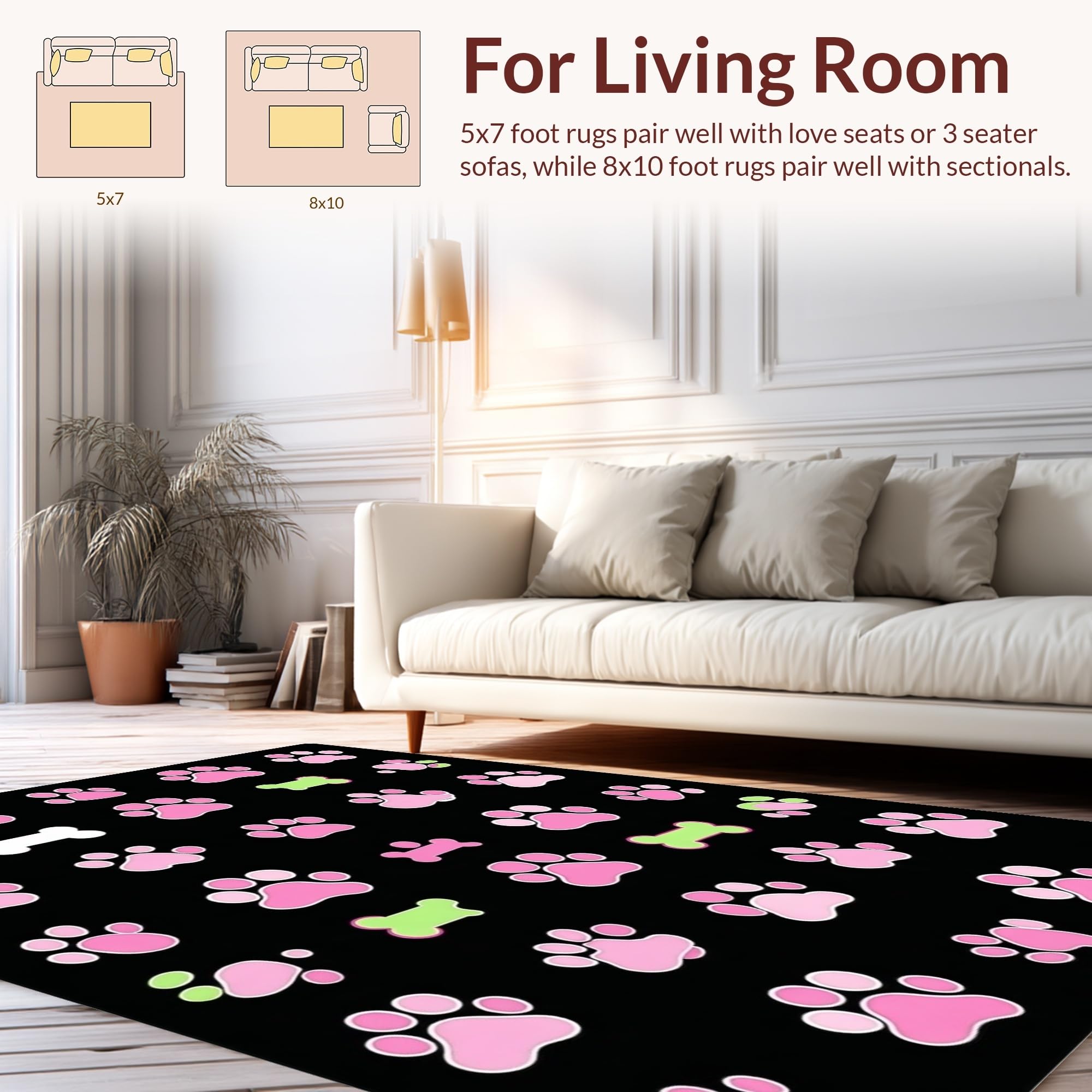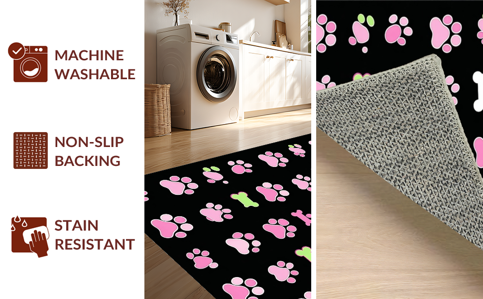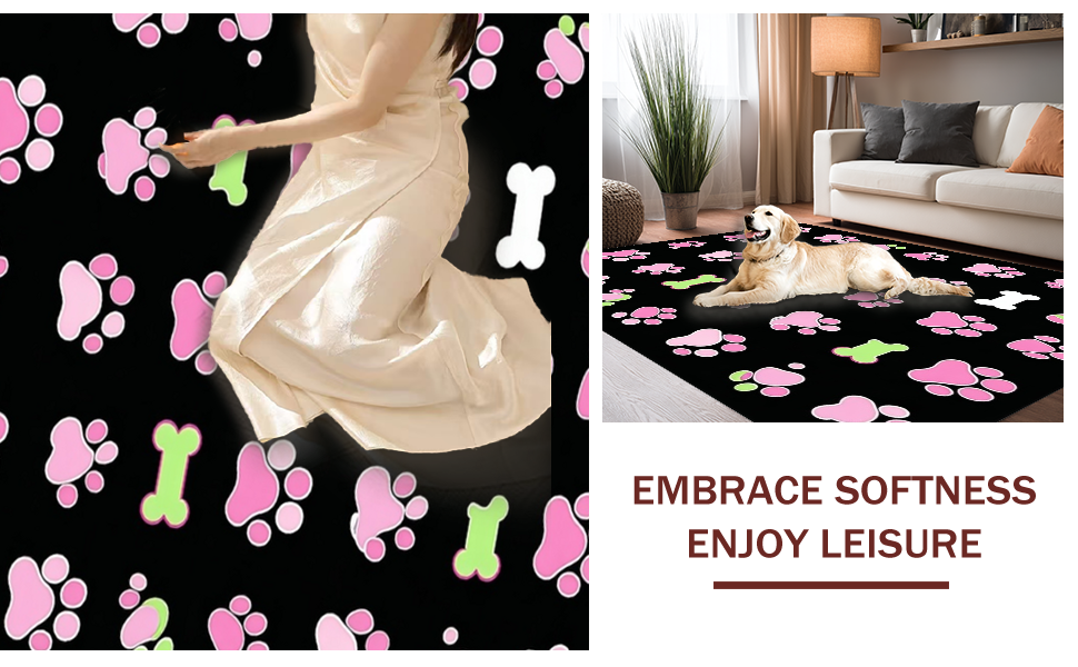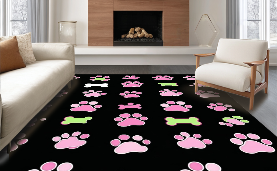 Ultra Soft Area Rug, Non Slip, Stain Resistant, Washable Area Rugs for Living Room, Bedroom, Lively Flannel Pet Print Design(Pink) Overview: