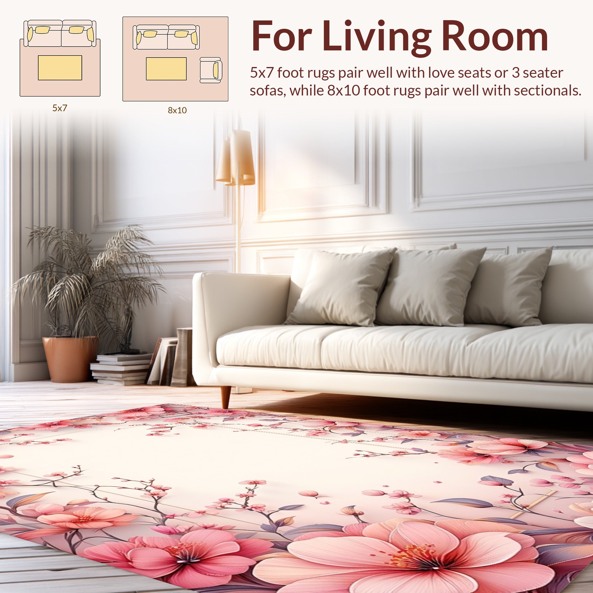 Flatwoven High Traffic Area Rug, Lively Floral Watercolor Style, Non Slip, Stain Resistant, Washable Area Rugs for Living Room, Bedroom (Pink) Overview: