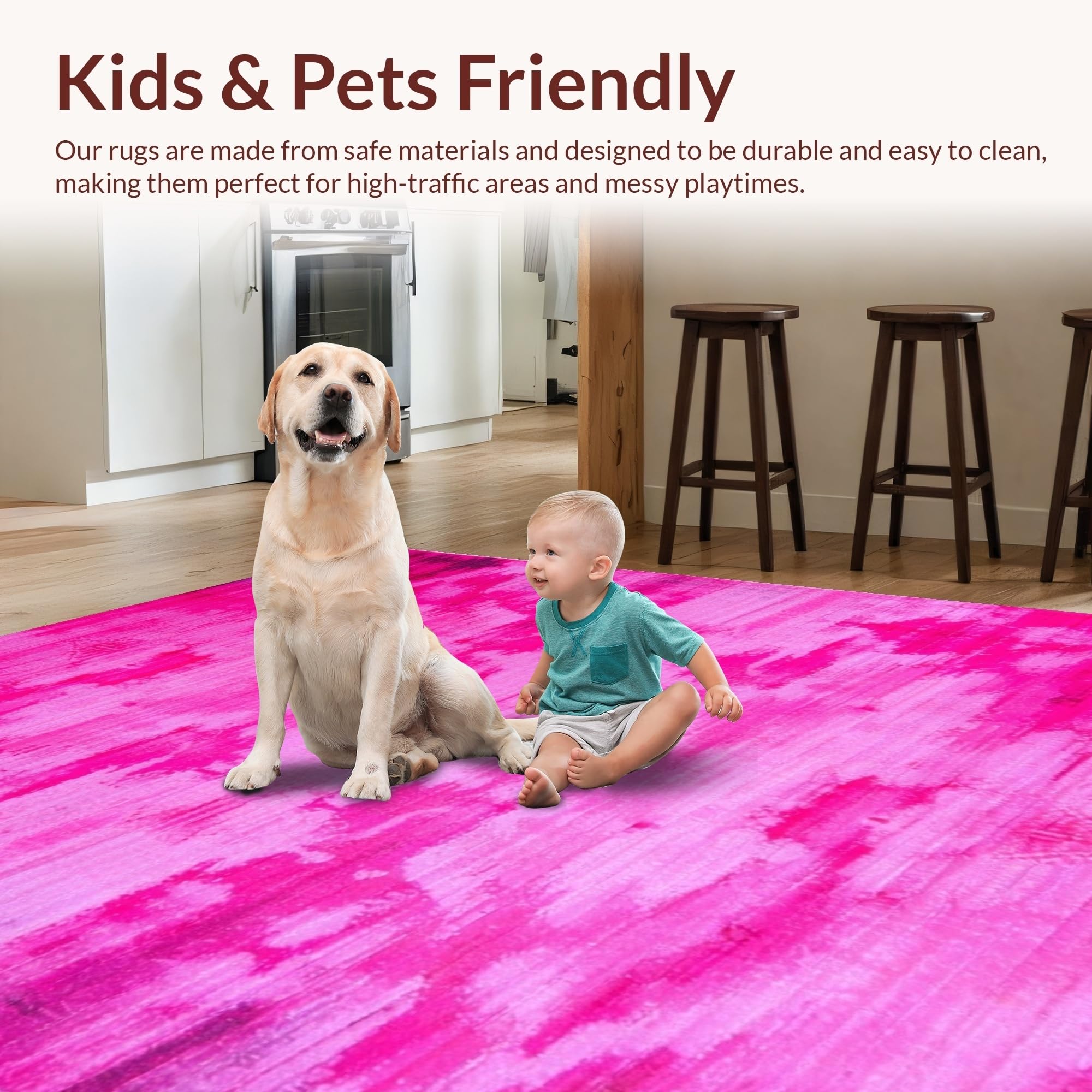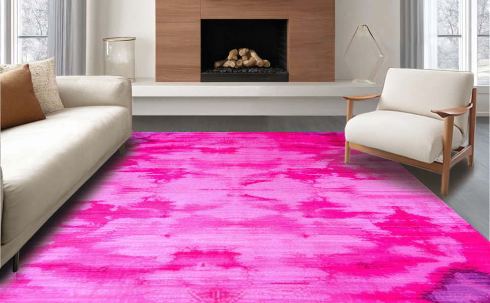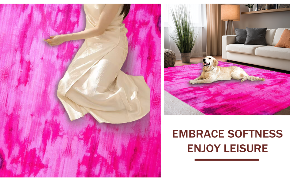 Ultra Soft Area Rug, Non Slip, Stain Resistant, Washable Area Rugs for Living Room, Bedroom, Lively Fuzzy Ombre Delight(Pink) Overview: