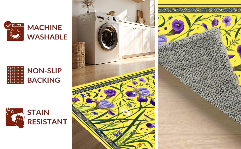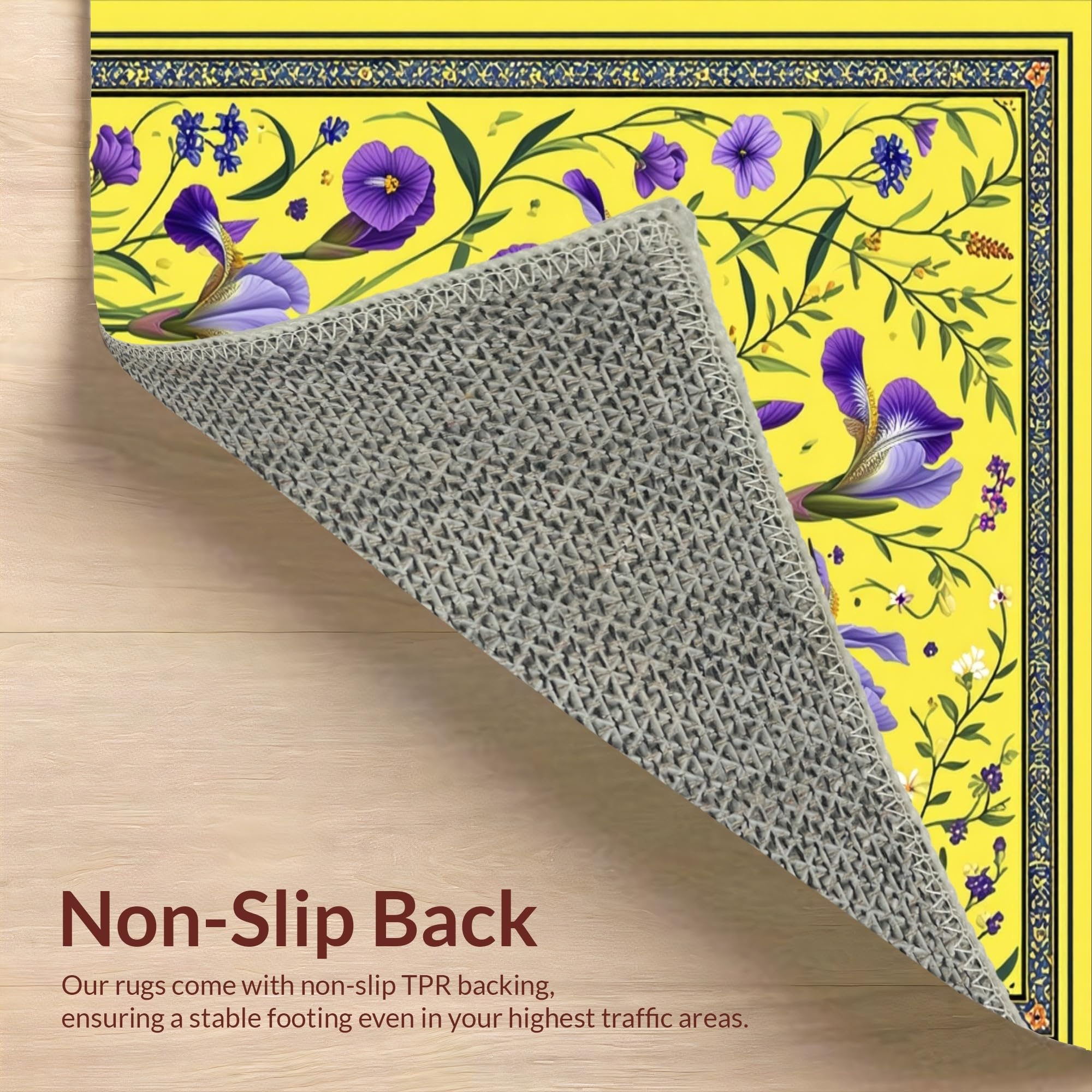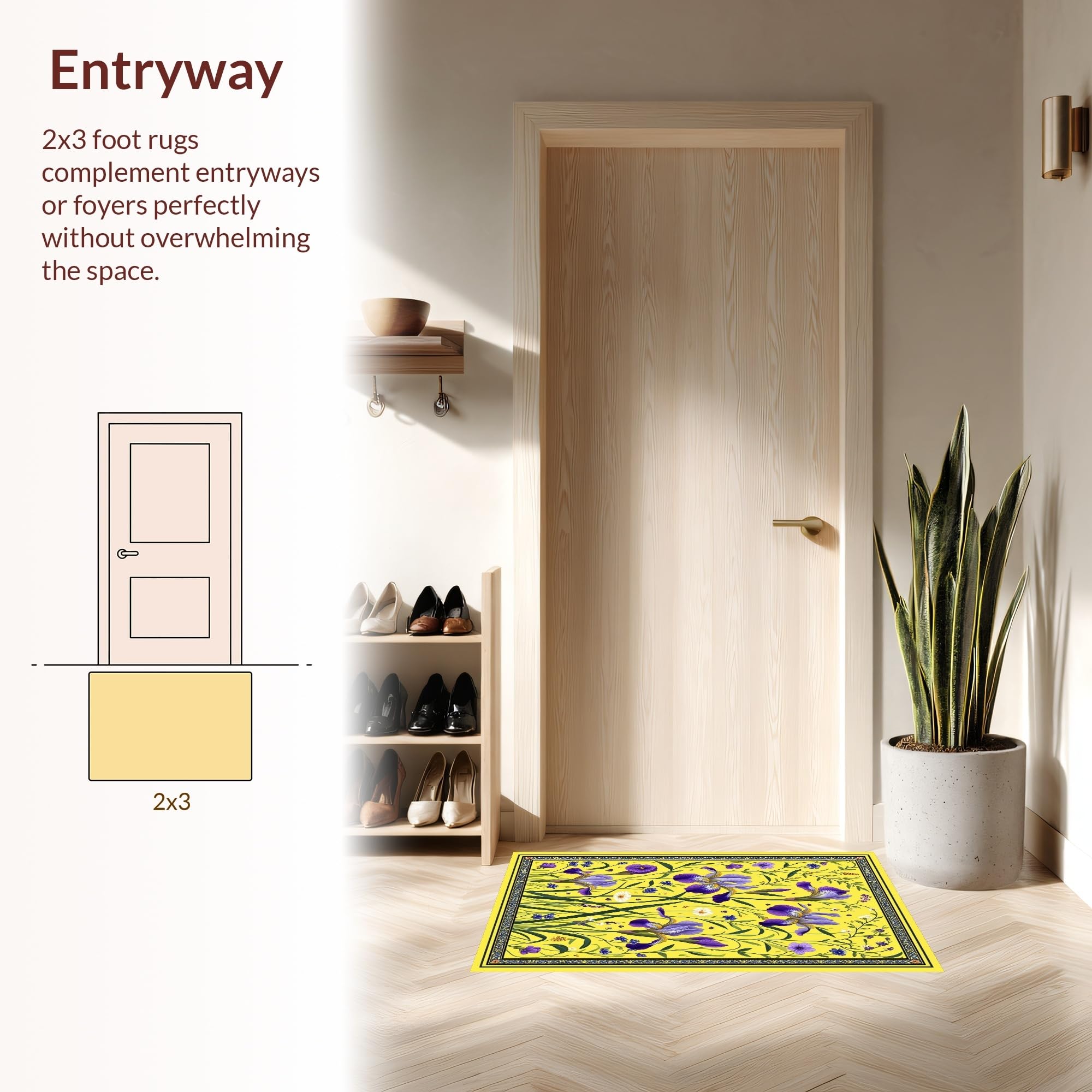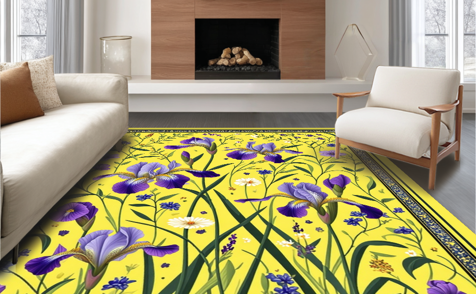 Ultra Soft Area Rug, Non Slip, Stain Resistant, Washable Area Rugs for Living Room, Bedroom, Lively Garden-Inspired Entrance Mat(Yellow) Overview: