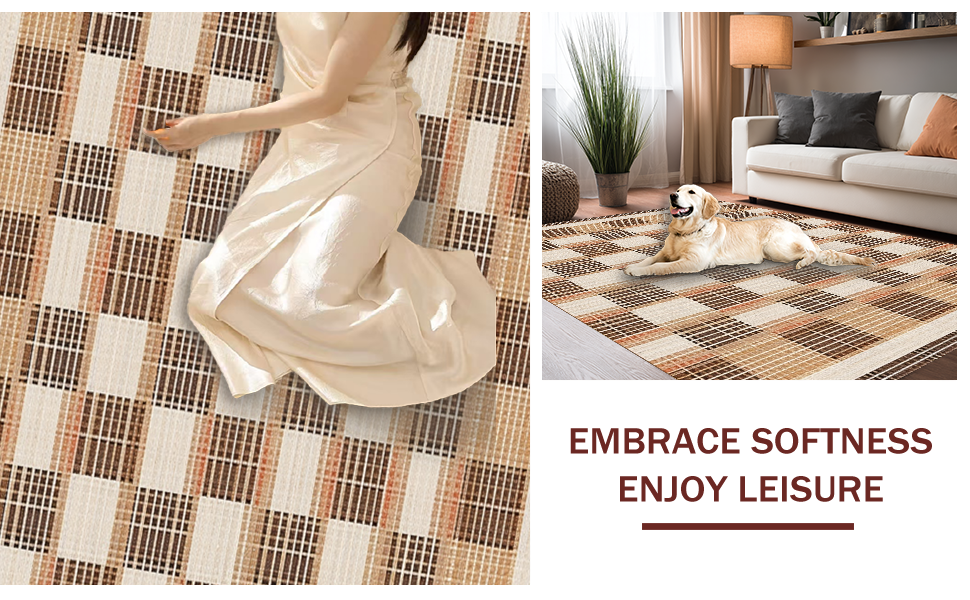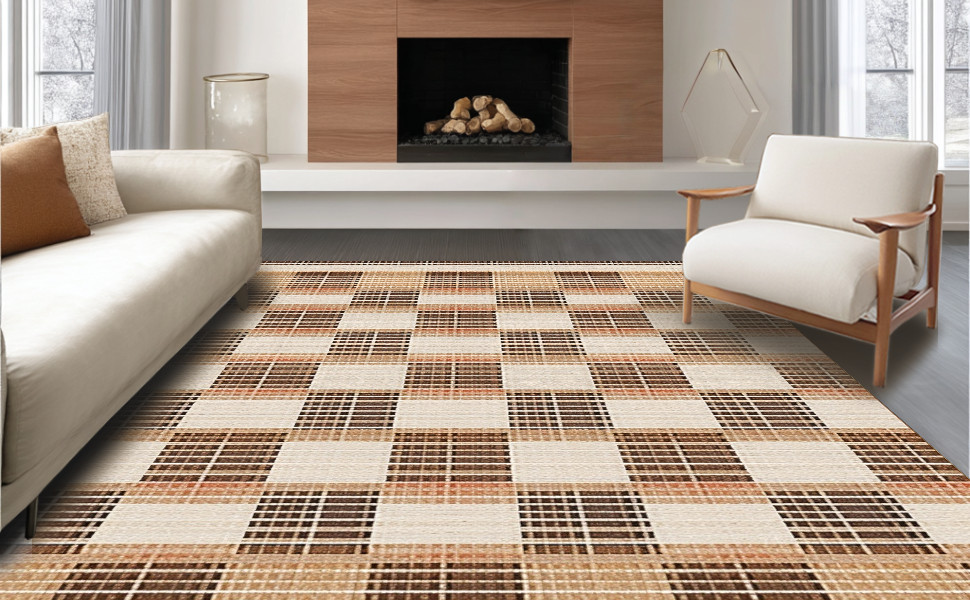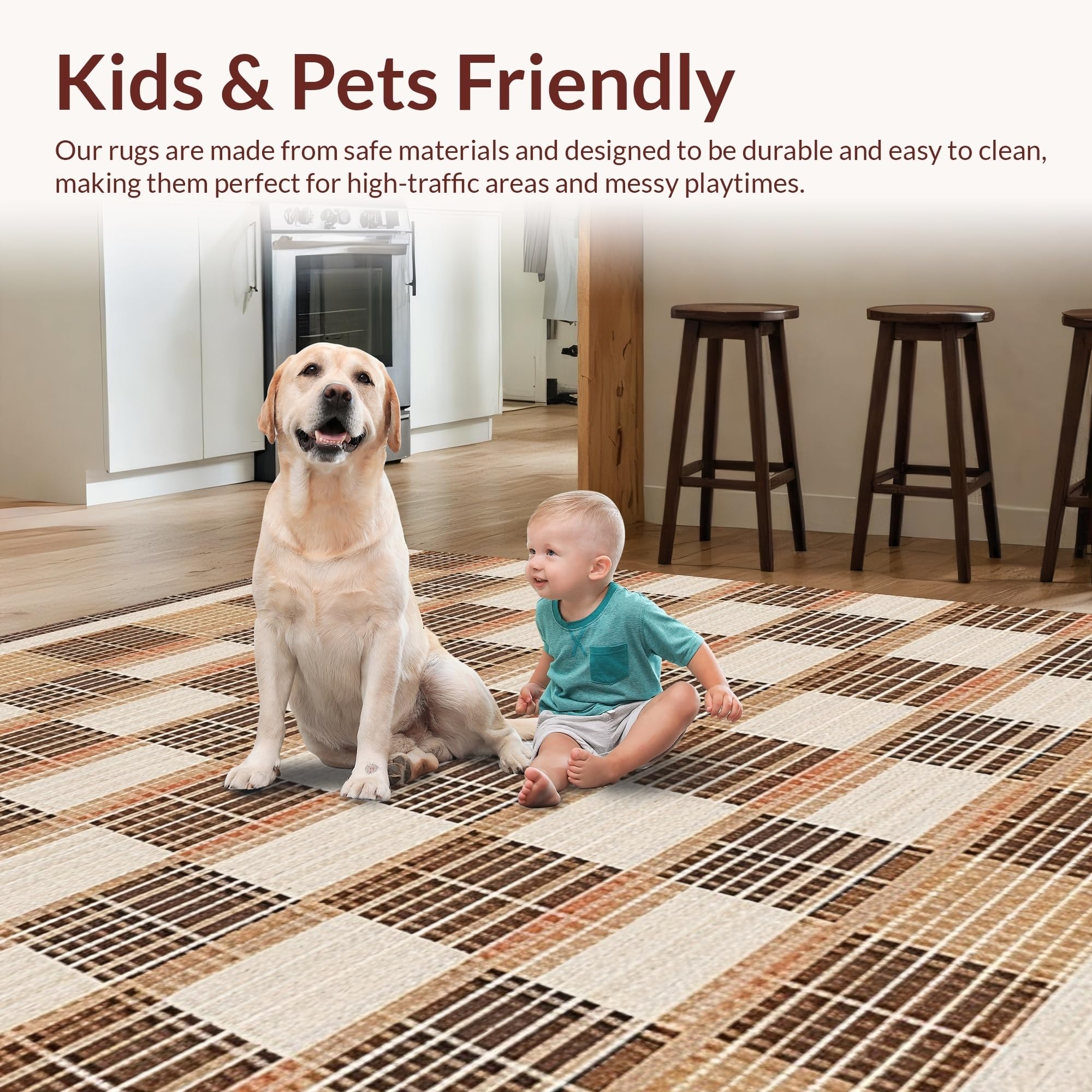 Ultra Soft Area Rug, Non Slip, Stain Resistant, Washable Area Rugs for Living Room, Bedroom, Lively Geometric Pattern in Brown(Beige) Overview: