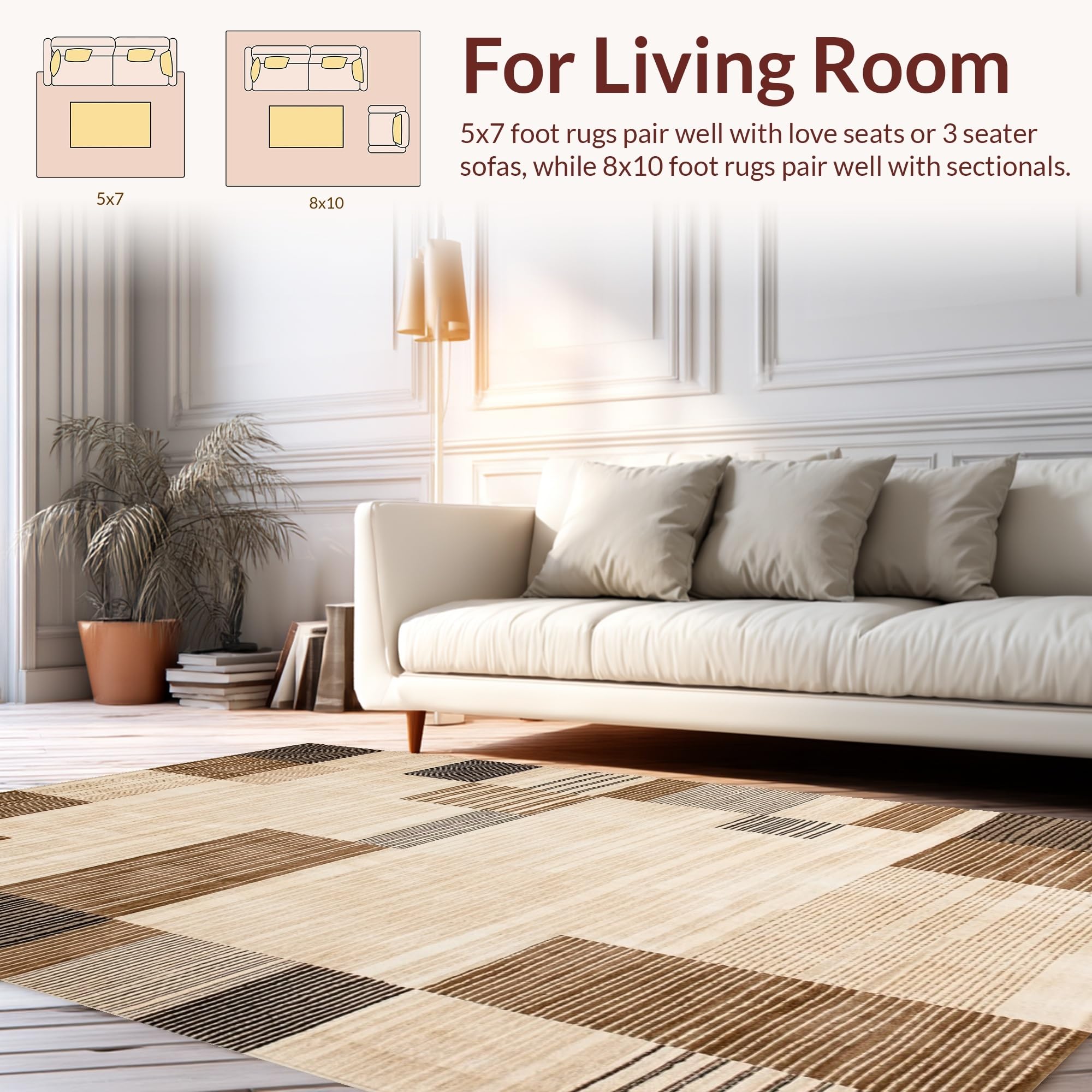 Ultra Soft Area Rug, Non Slip, Stain Resistant, Washable Area Rugs for Living Room, Bedroom, Lively Highland Cattle Aesthetic(Beige) Overview: