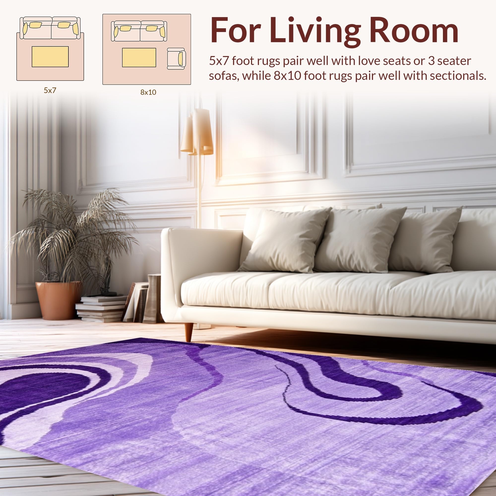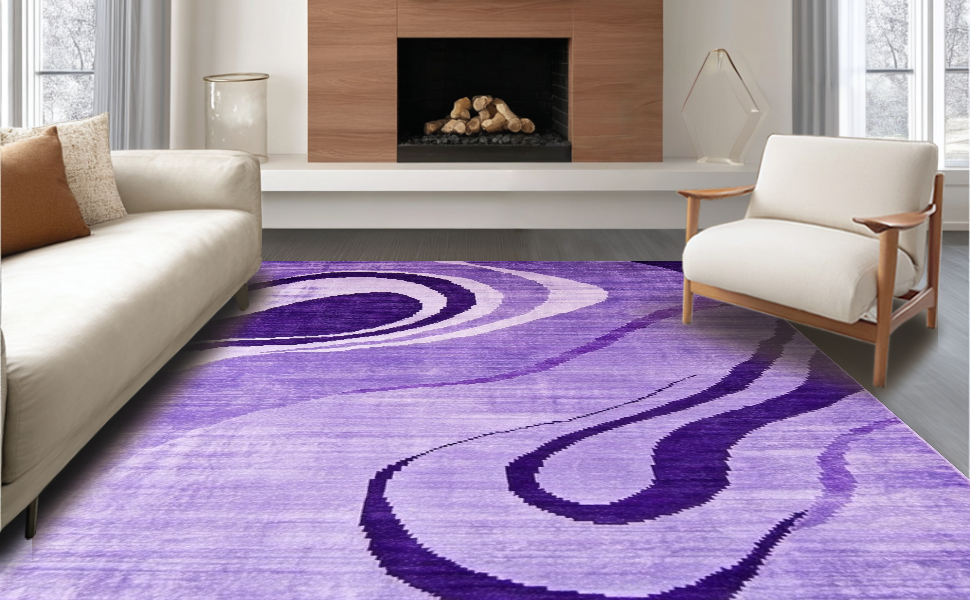 Ultra Soft Area Rug, Non Slip, Stain Resistant, Washable Area Rugs for Living Room, Bedroom, Lively Modern Swirl Pattern(Purple) Overview: