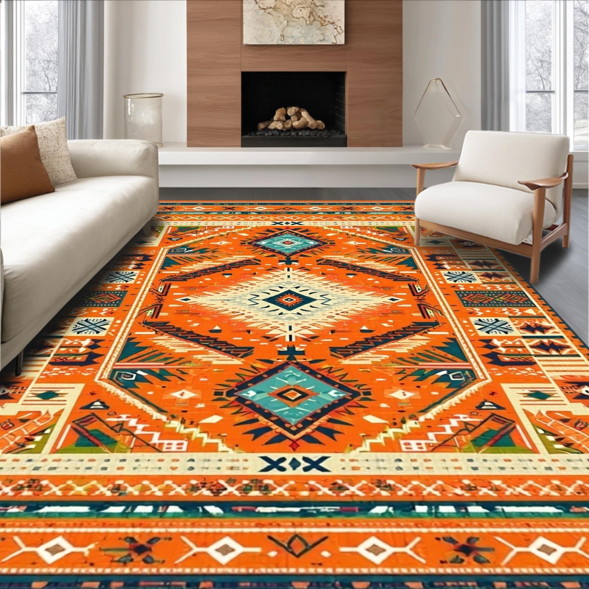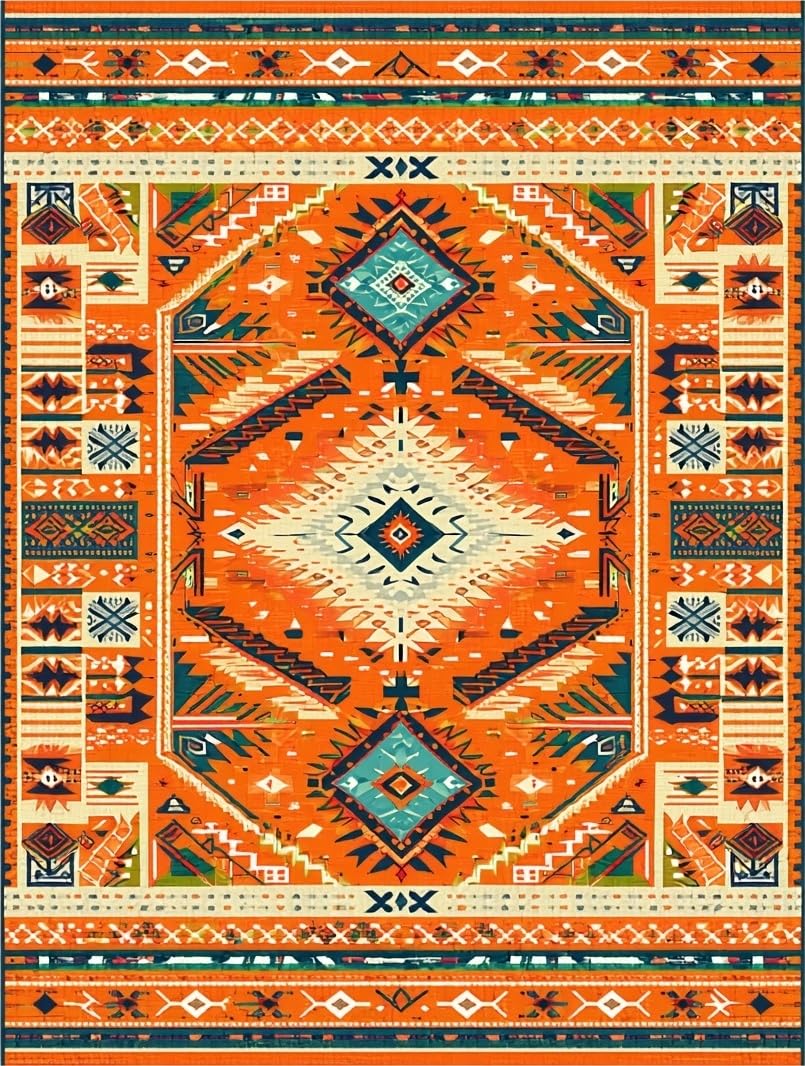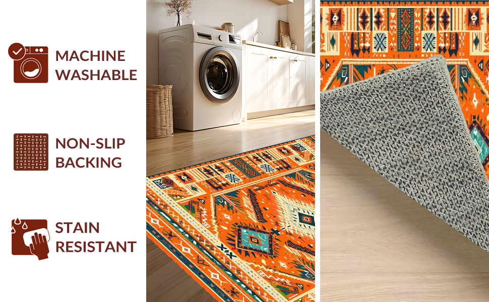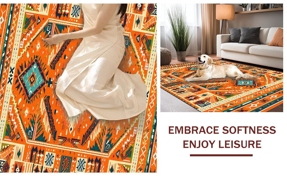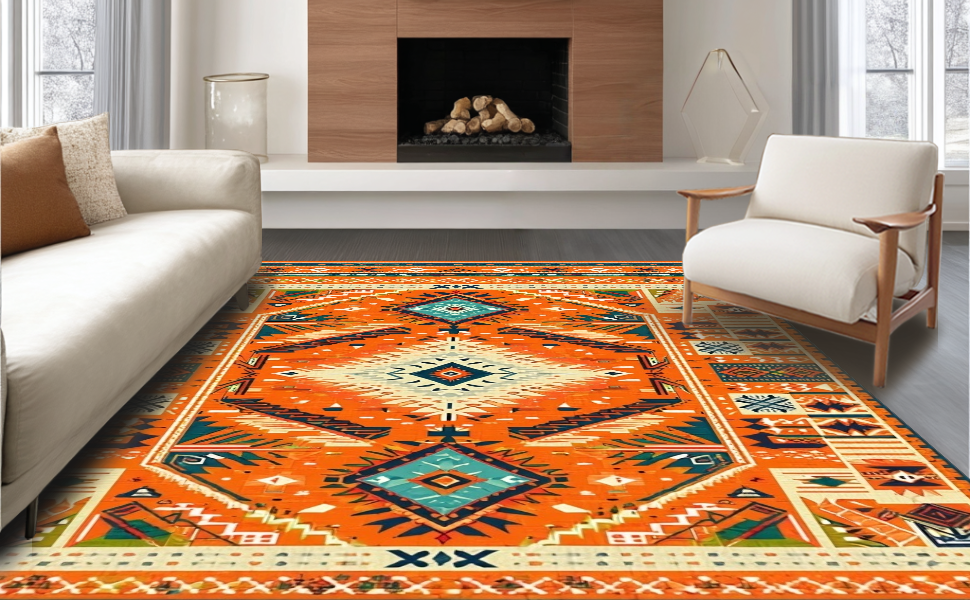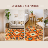 Ultra Soft Area Rug, Non Slip, Stain Resistant, Washable Area Rugs for Living Room, Bedroom, Lively Multi-Tonal Medallion Style(Orange) Overview: