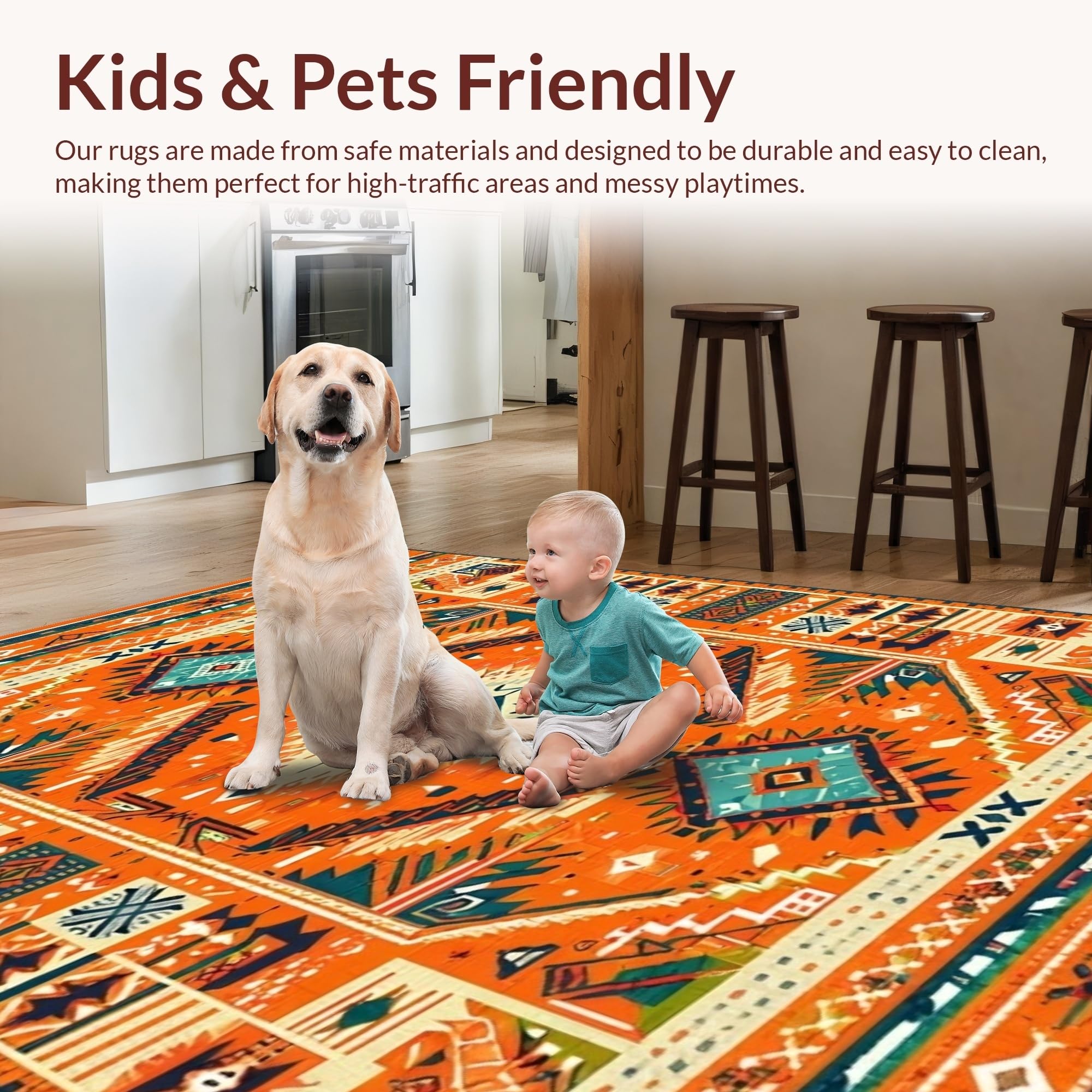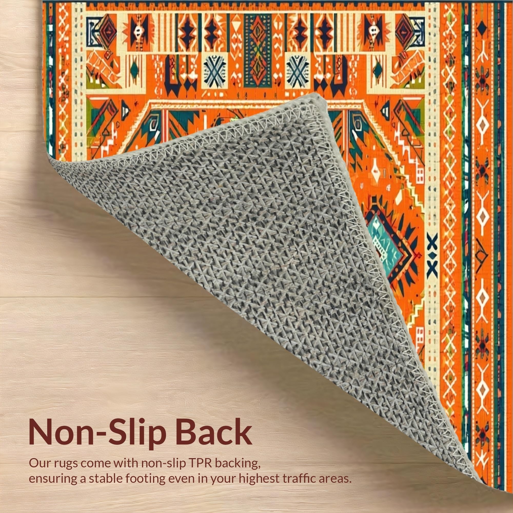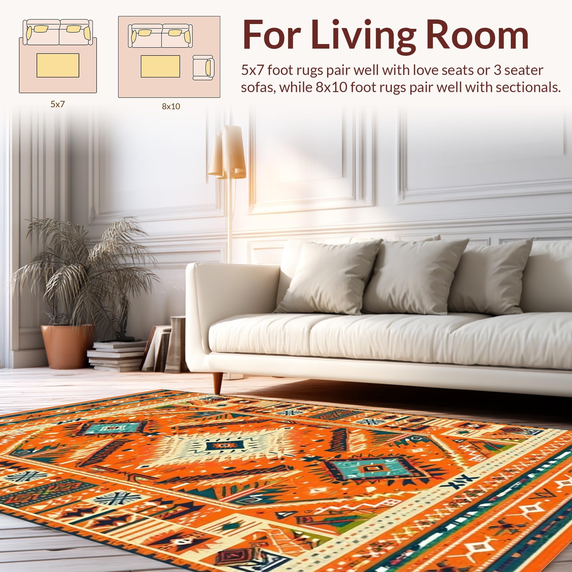 Ultra Soft Area Rug, Non Slip, Stain Resistant, Washable Area Rugs for Living Room, Bedroom, Lively Multi-Tonal Medallion Style(Orange) Overview: