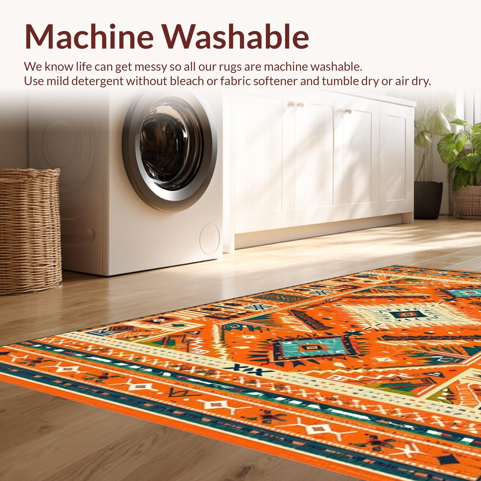 - Machine Washable: Our rugs can be easily thrown in the wash machine.