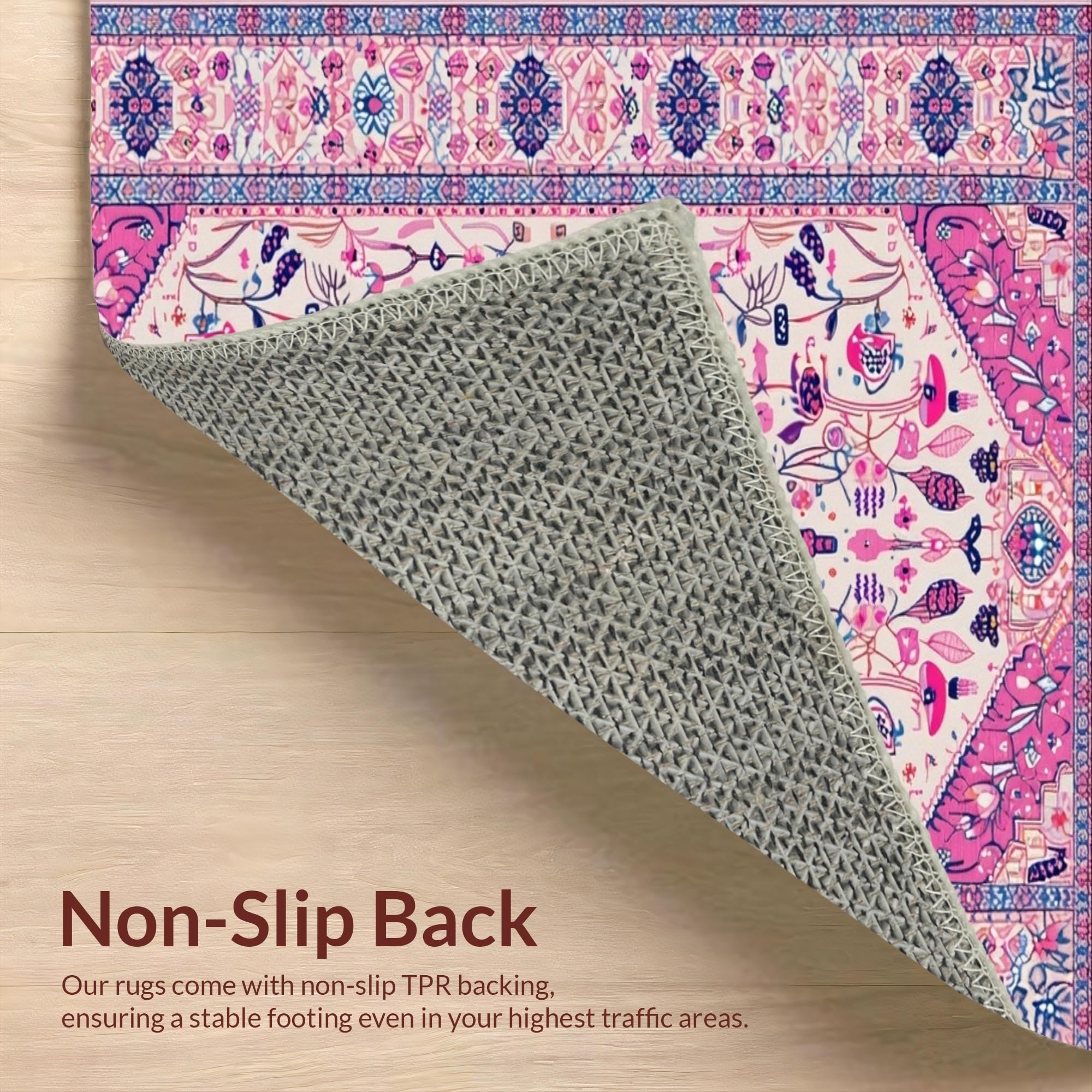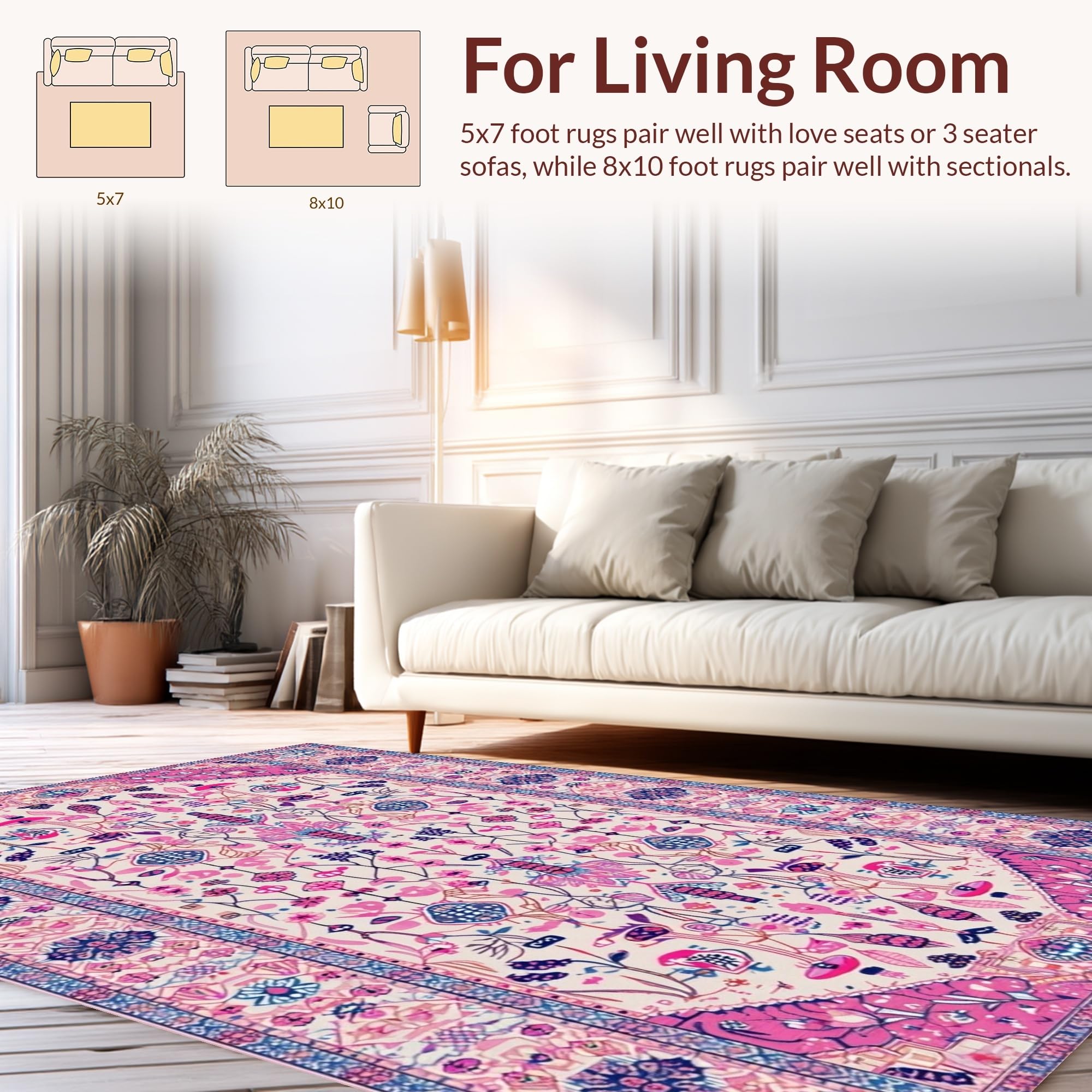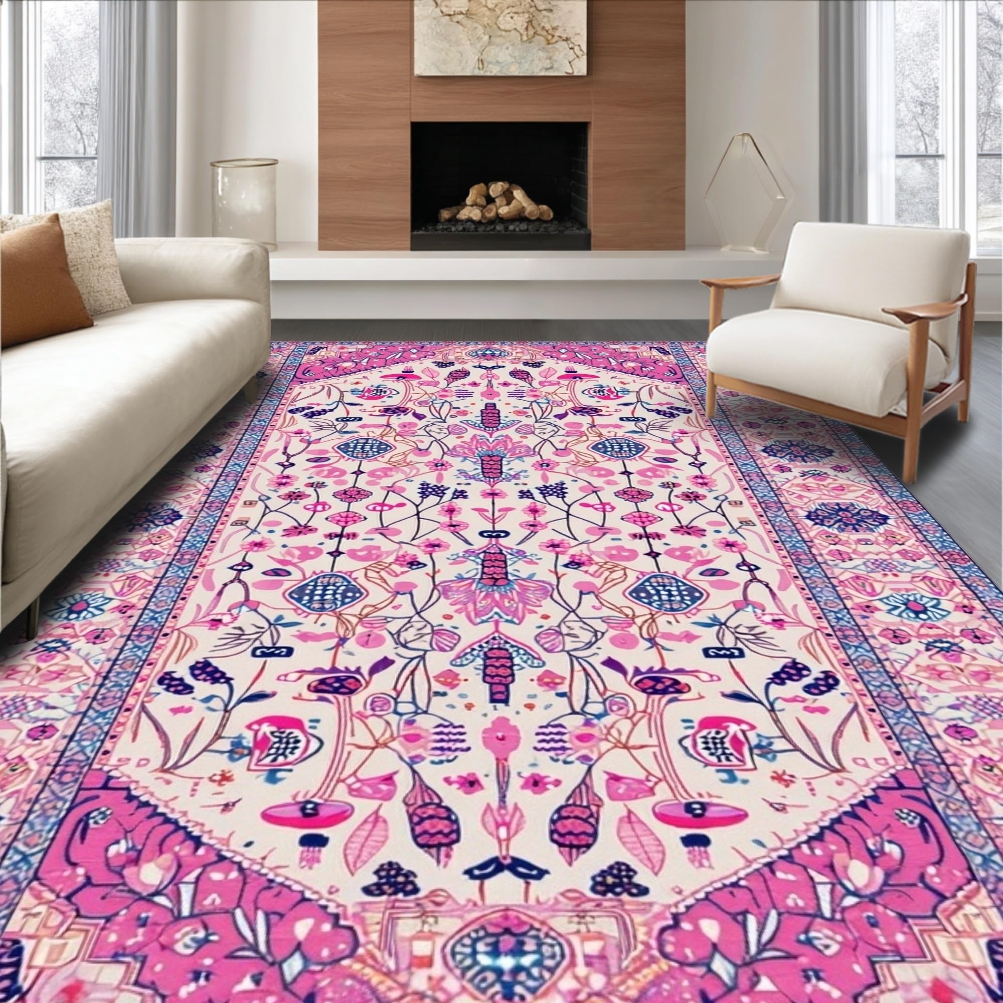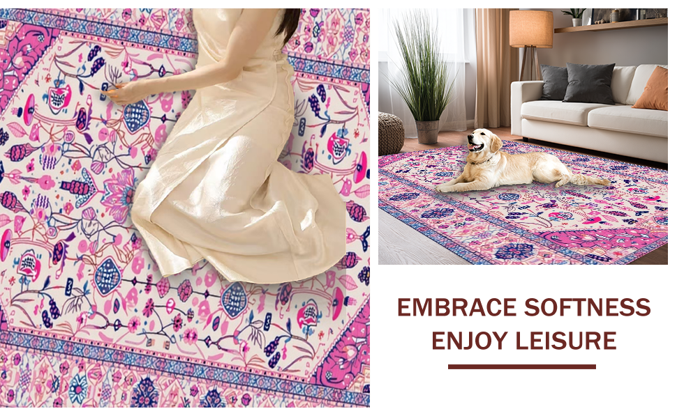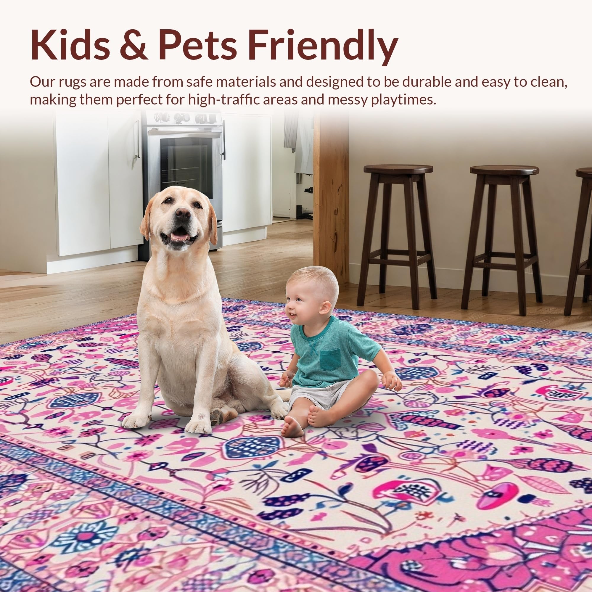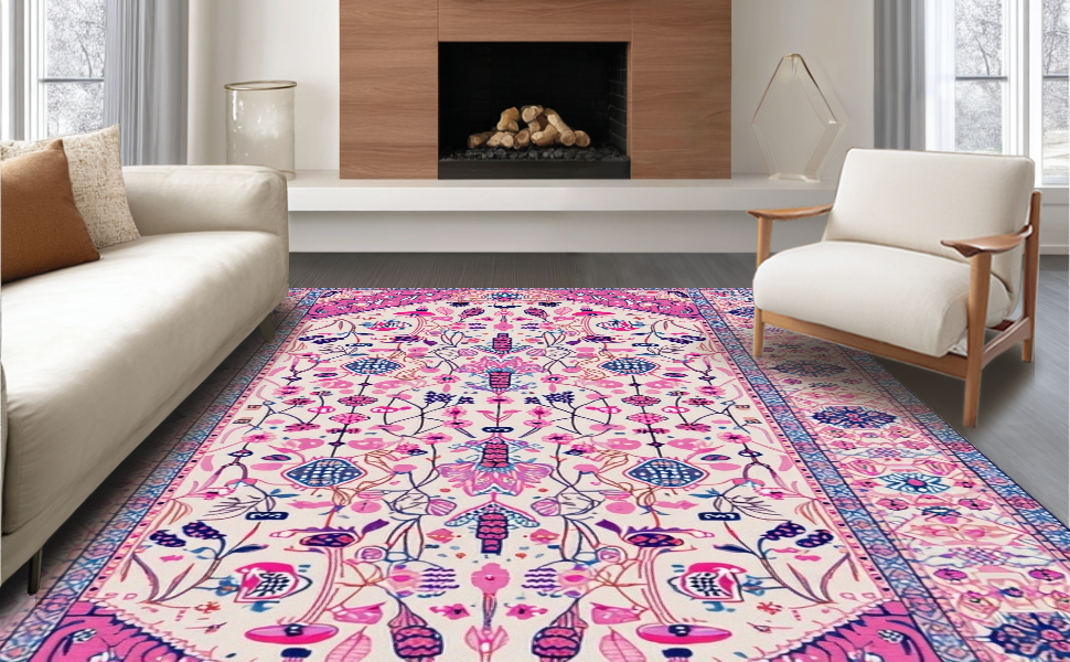 Ultra Soft Area Rug, Non Slip, Stain Resistant, Washable Area Rugs for Living Room, Bedroom, Lively Multicolor Organic Shapes(Pink) Overview:
