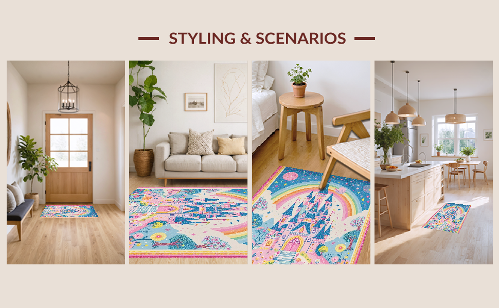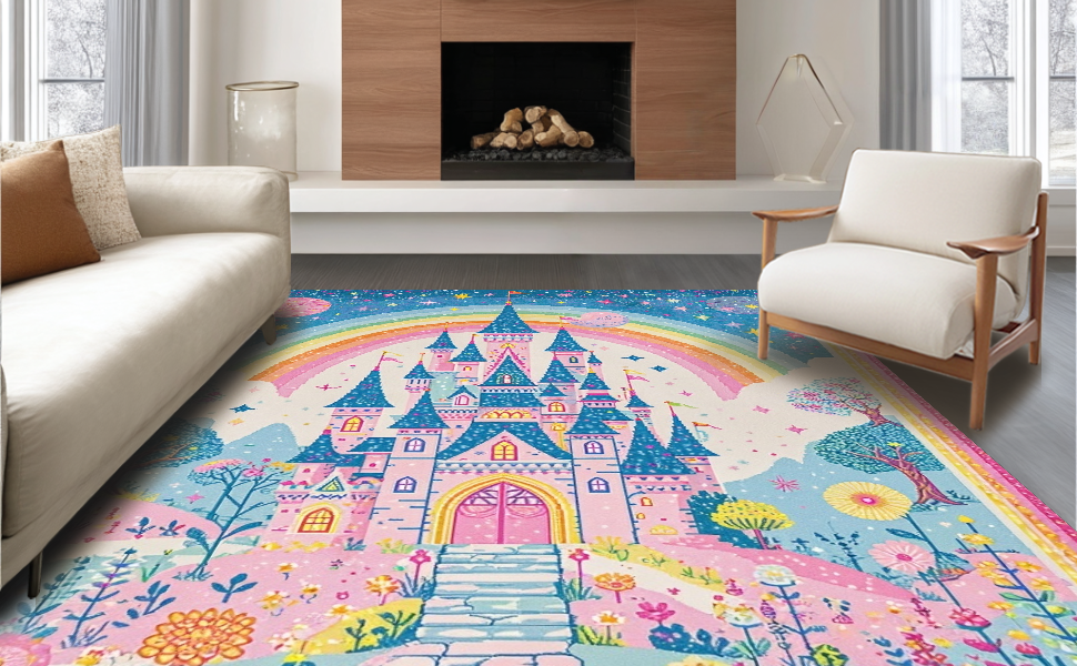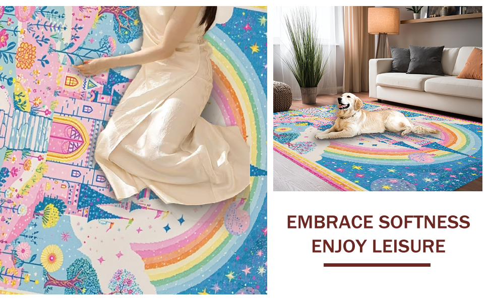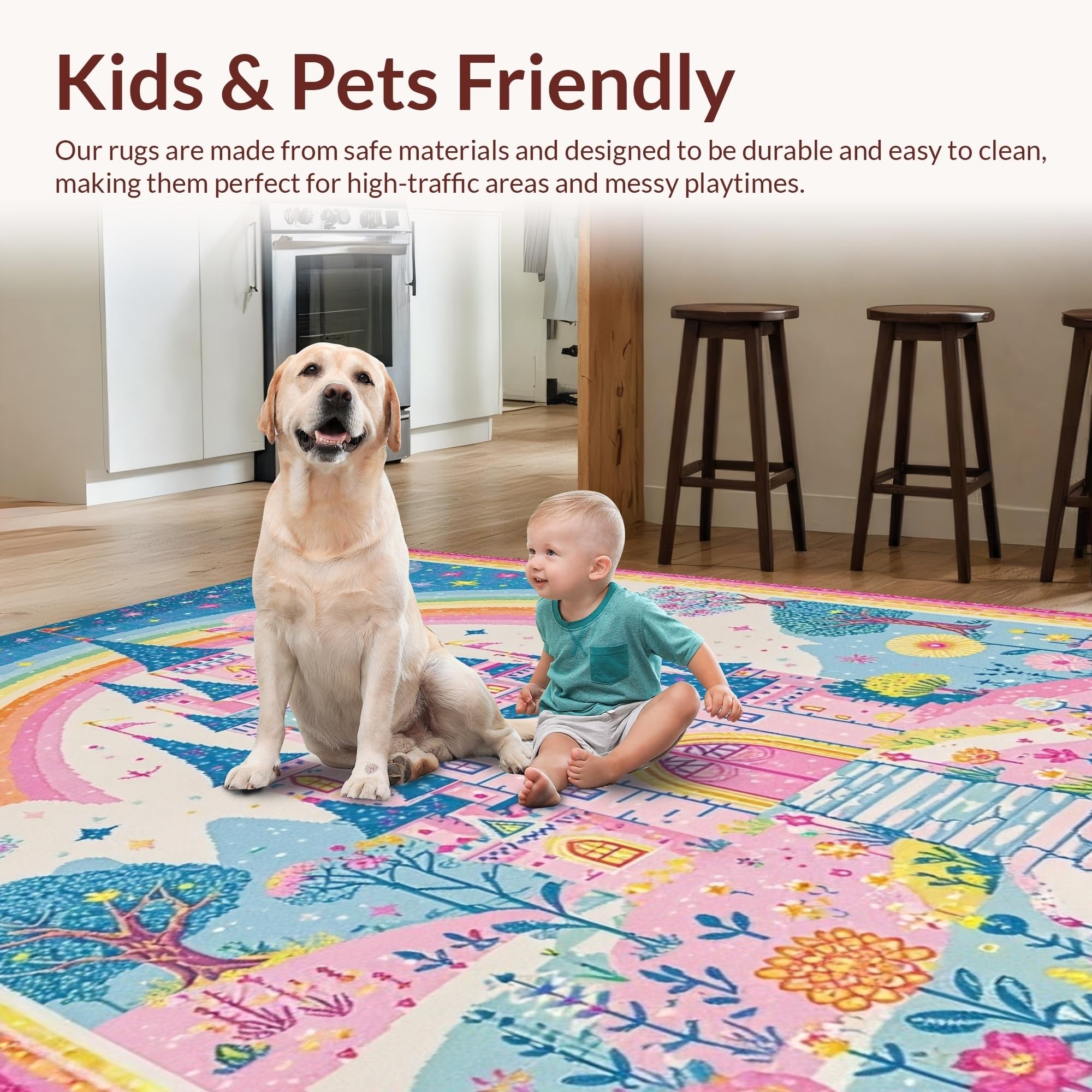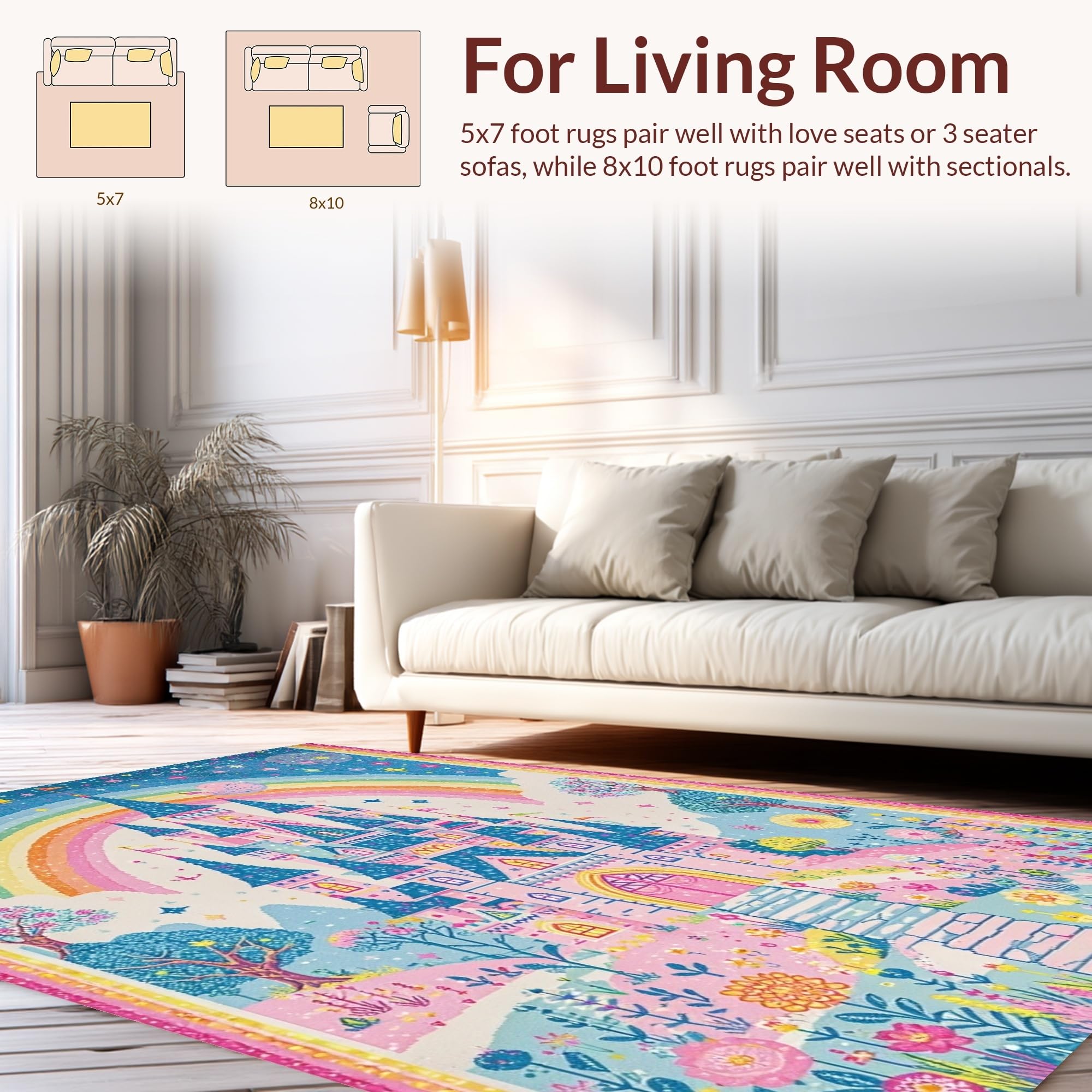 Ultra Soft Area Rug, Non Slip, Stain Resistant, Washable Area Rugs for Living Room, Bedroom, Lively Mythical Adventure Pattern(Blue) Overview: