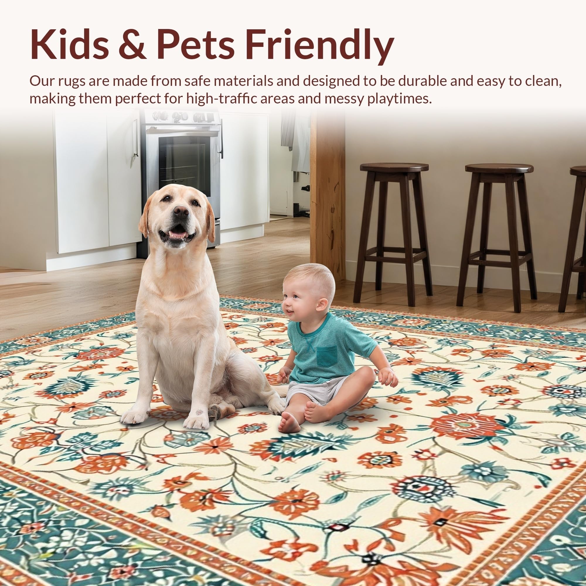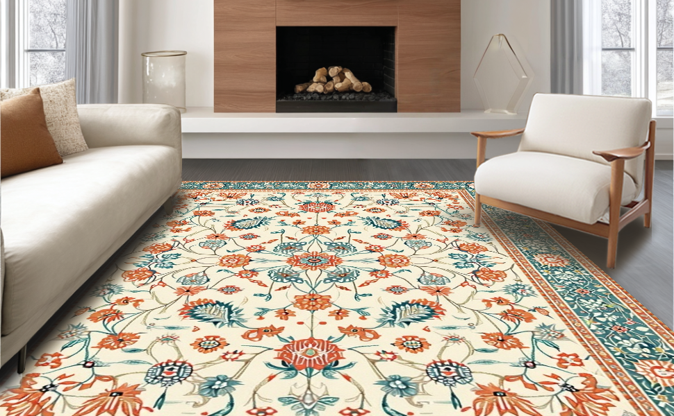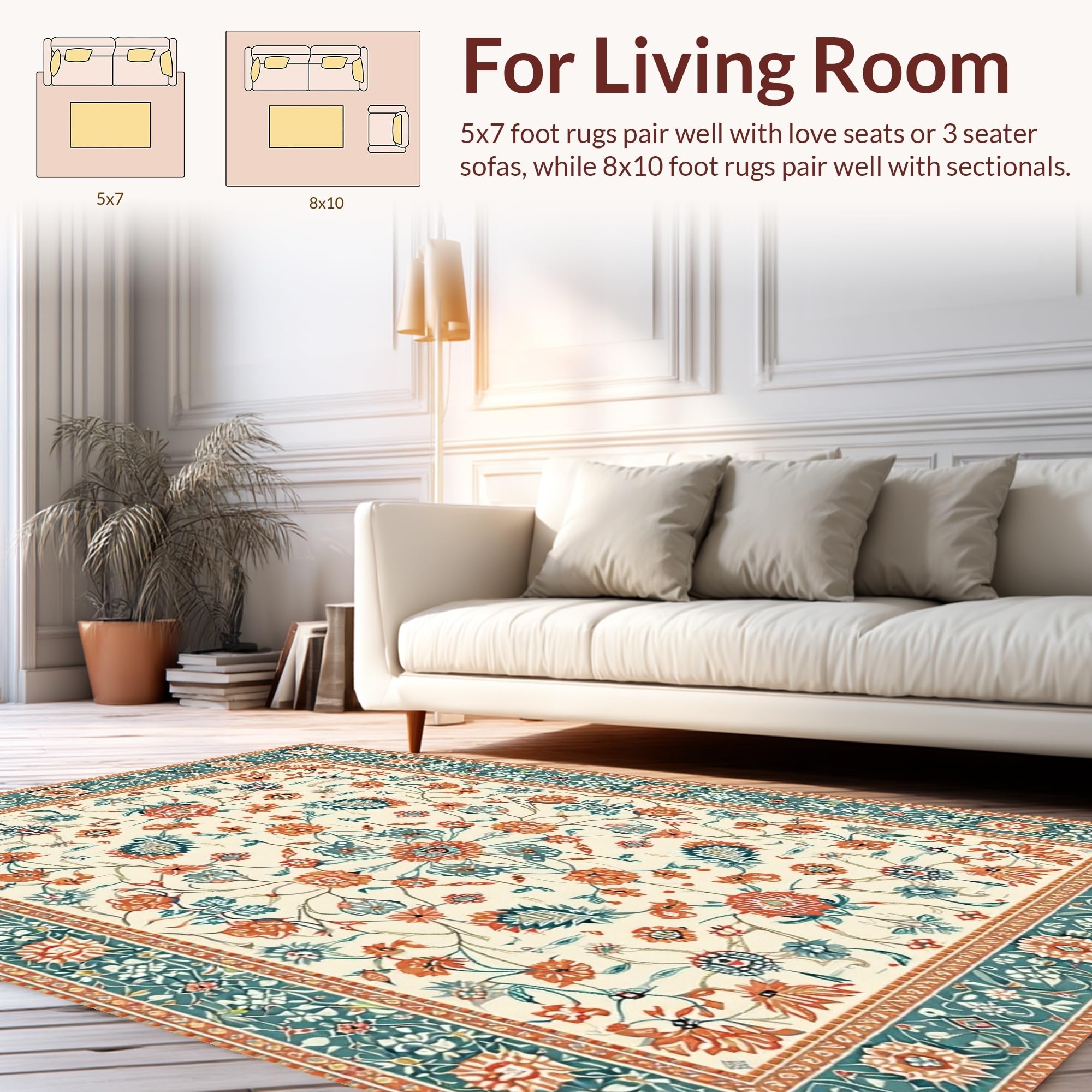 Ultra Soft Area Rug, Non Slip, Stain Resistant, Washable Area Rugs for Living Room, Bedroom, Lively Nature-Themed Aesthetic(Ivory) Overview: