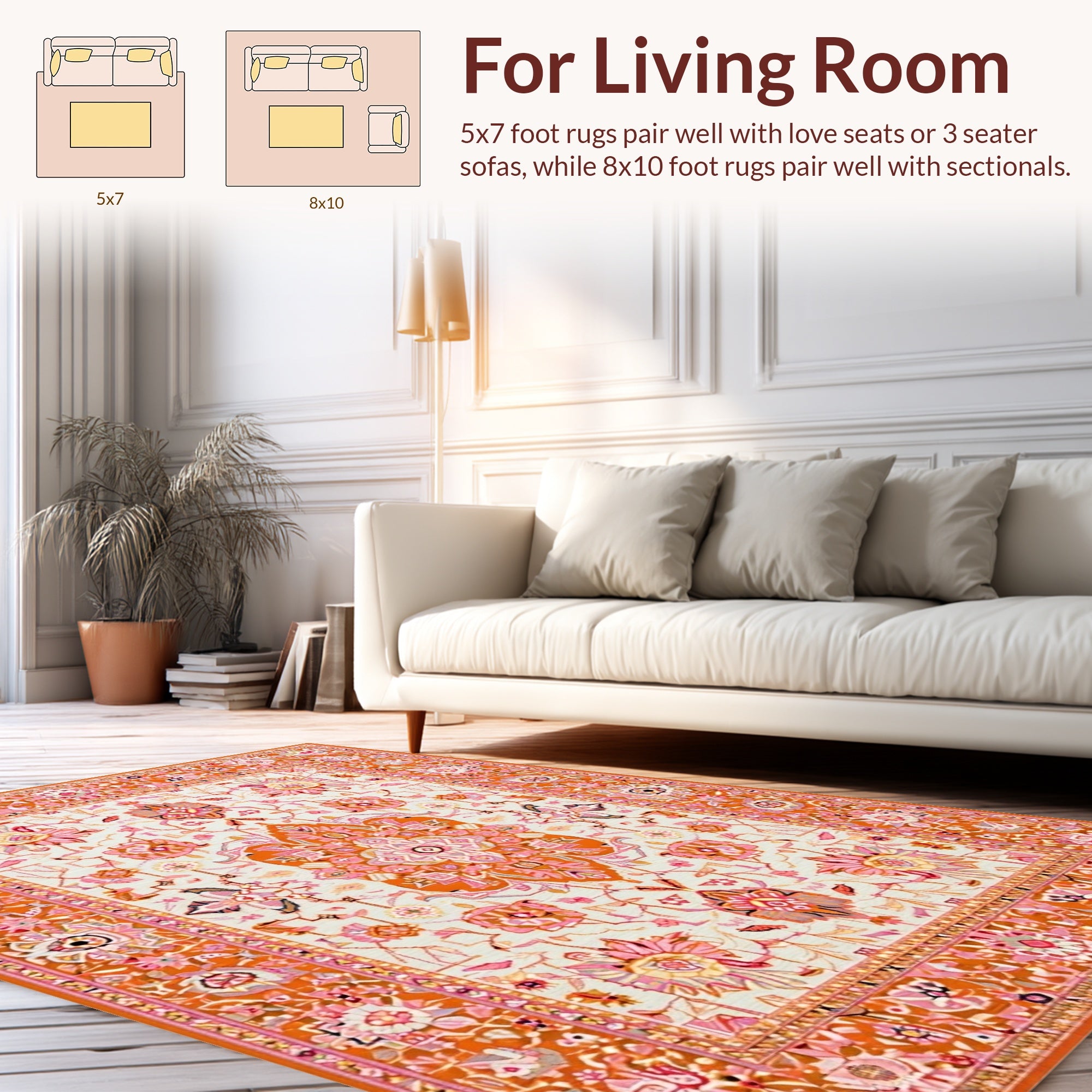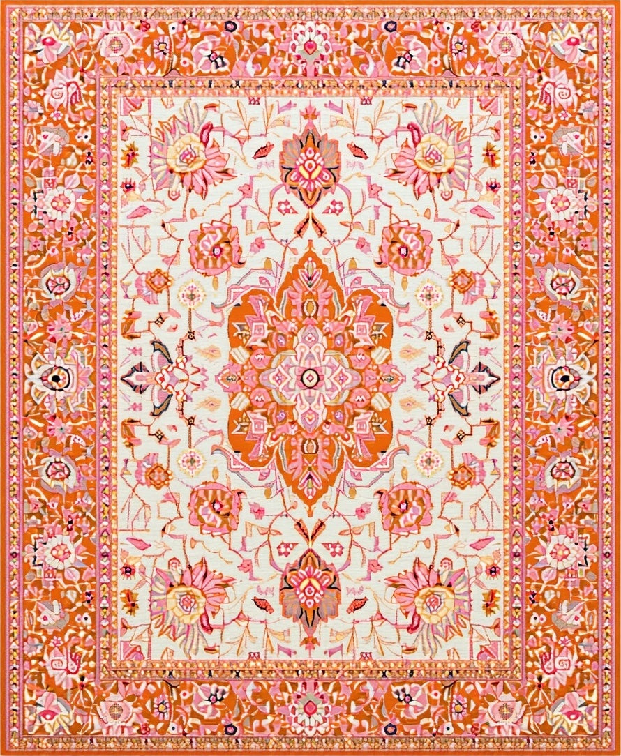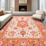 Flatwoven High Traffic Area Rug, Lively Orange Garden Inspired, Non Slip, Stain Resistant, Washable Area Rugs for Living Room, Bedroom (Orange) Overview: