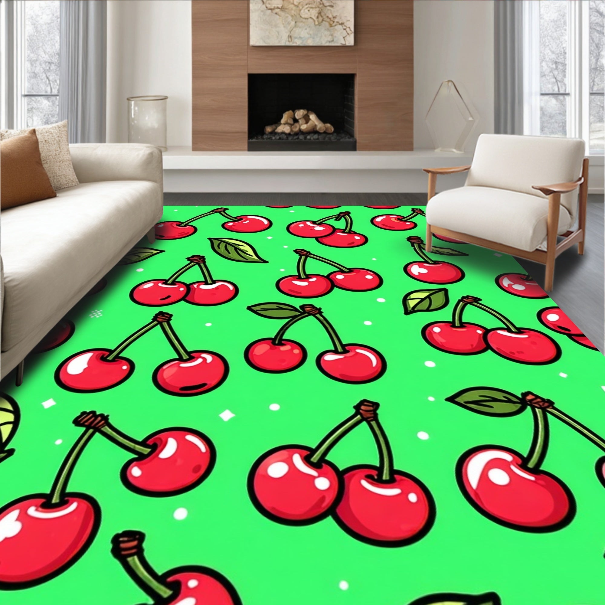 Flatwoven High Traffic Area Rug, Lively Pastel Fruit Imagery, Non Slip, Stain Resistant, Washable Area Rugs for Living Room, Bedroom (Green) Overview: