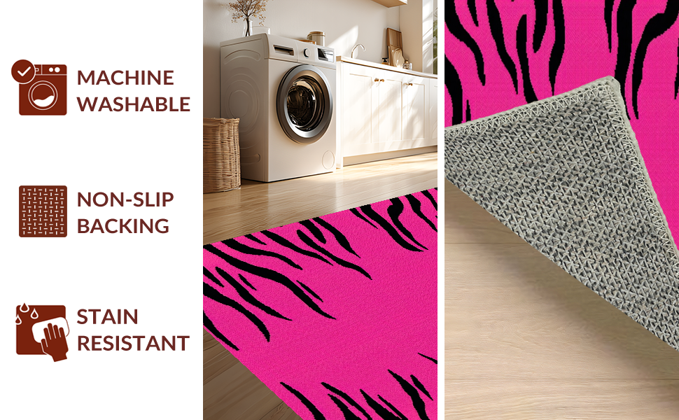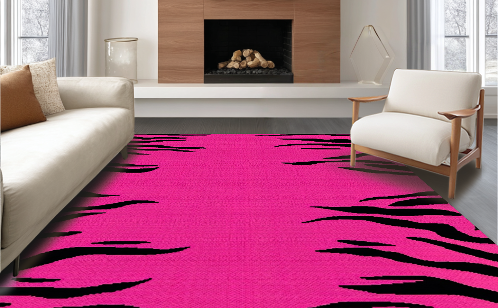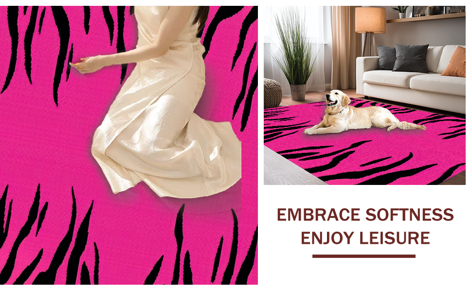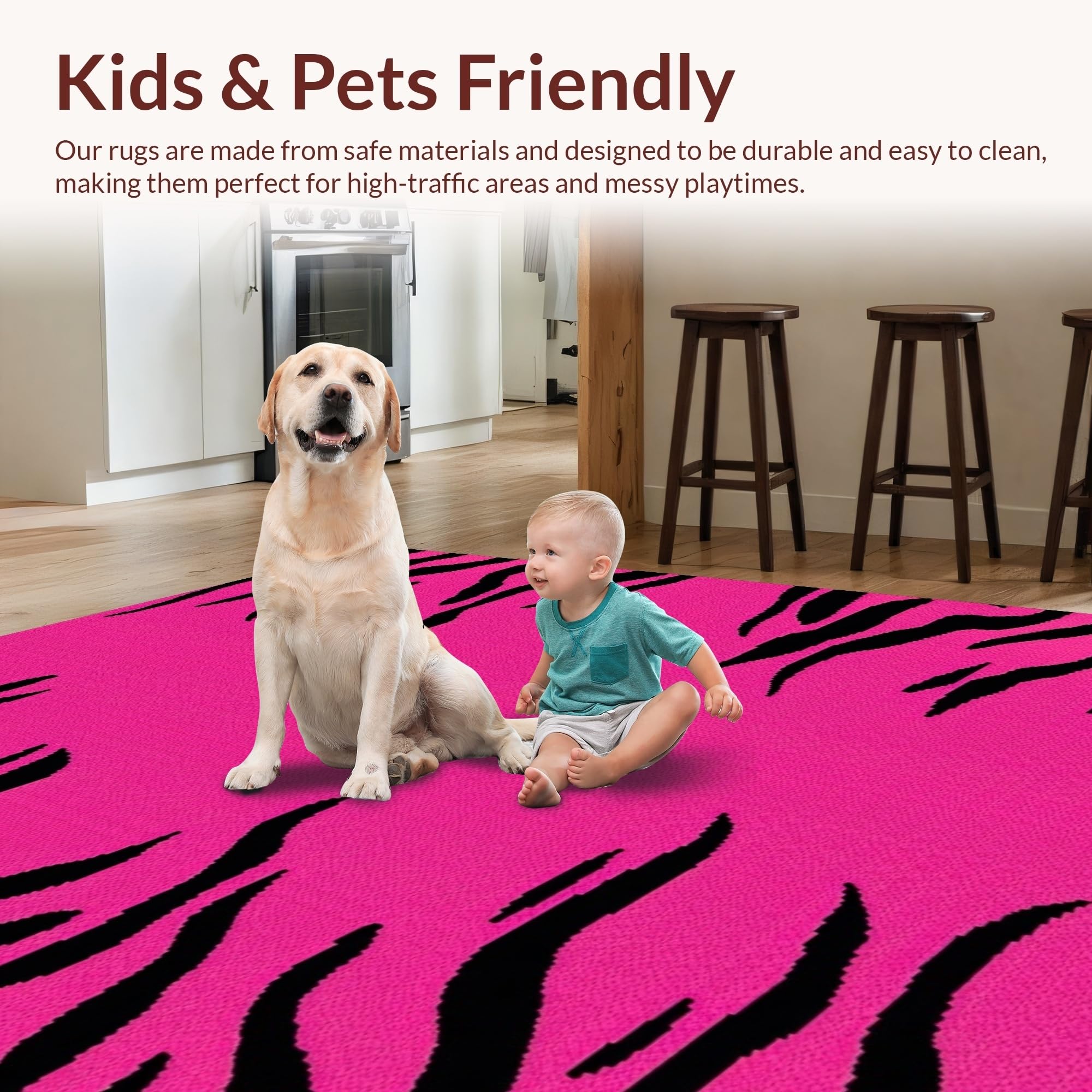Ultra Soft Area Rug, Non Slip, Stain Resistant, Washable Area Rugs for Living Room, Bedroom, Lively Pink and Black Contrast(Pink) Overview: