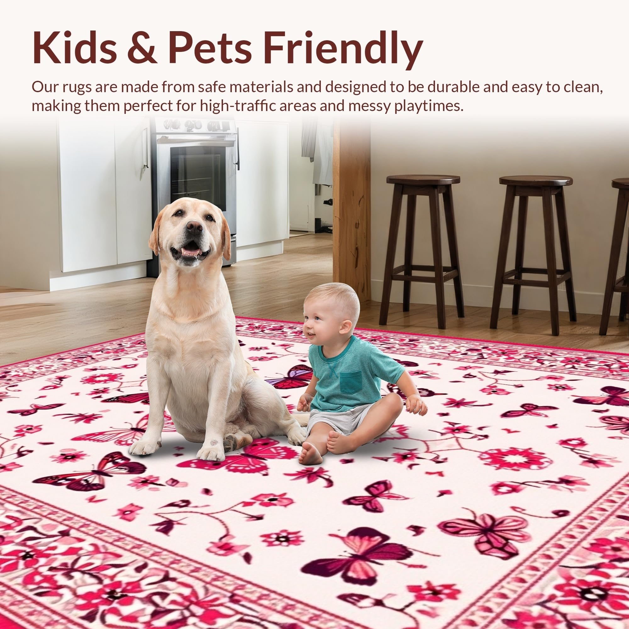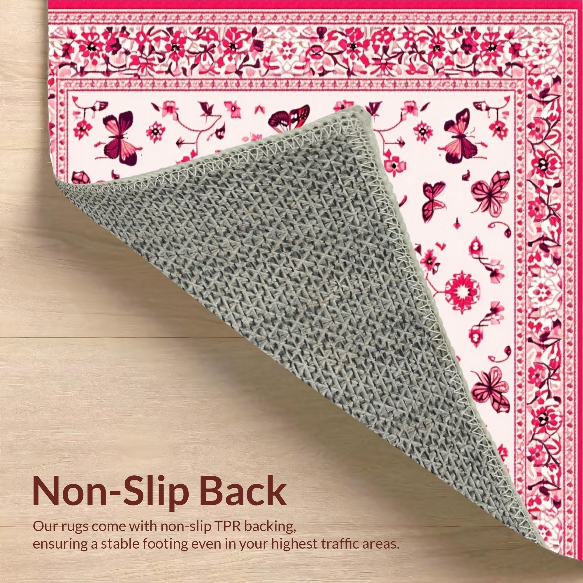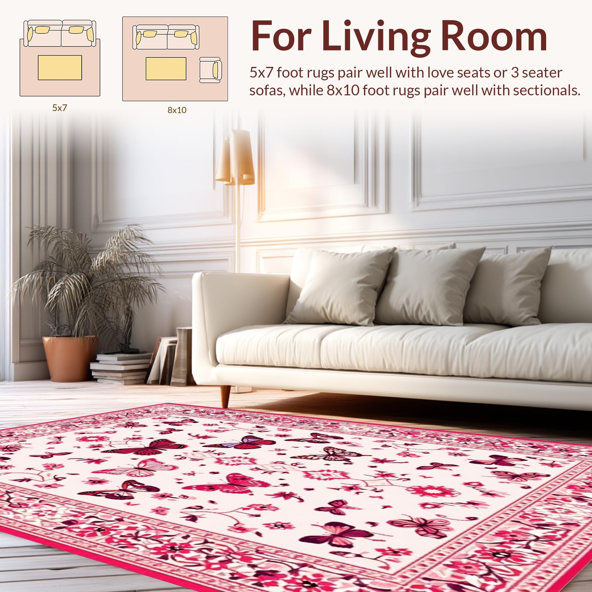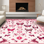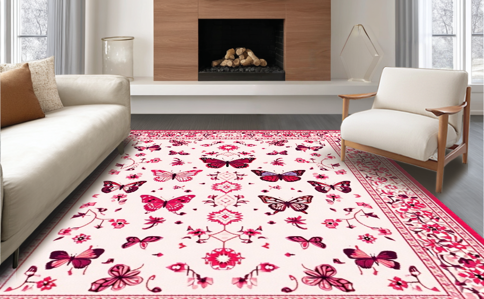 Ultra Soft Area Rug, Non Slip, Stain Resistant, Washable Area Rugs for Living Room, Bedroom, Lively Pink Botanical Artistry(White) Overview: