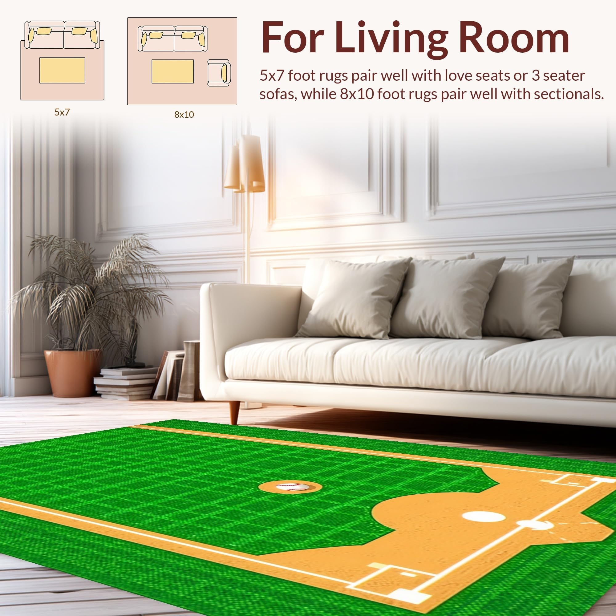 Ultra Soft Area Rug, Non Slip, Stain Resistant, Washable Area Rugs for Living Room, Bedroom, Lively Playful Stripe Arrangement(Green) Overview: