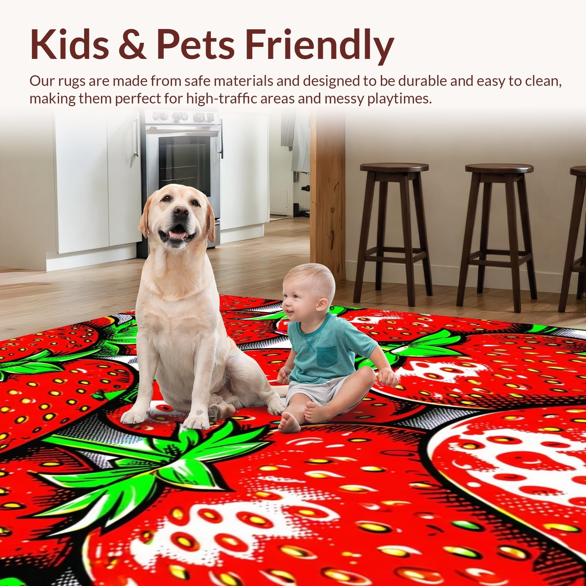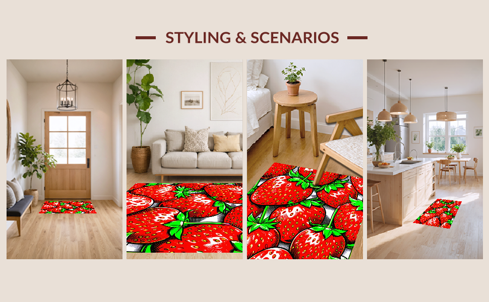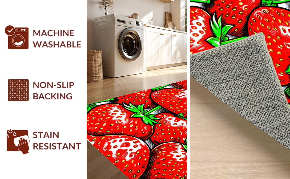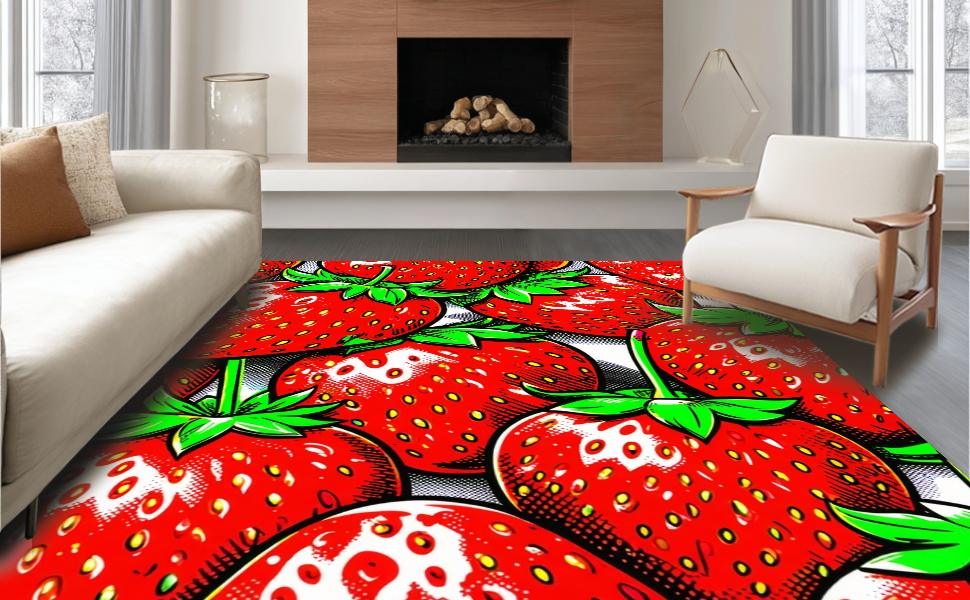 Ultra Soft Area Rug, Non Slip, Stain Resistant, Washable Area Rugs for Living Room, Bedroom, Lively Red and Green Palette(Red) Overview: